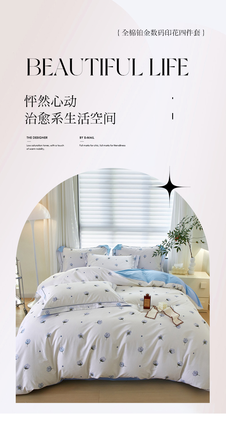 启航家居 2025春夏全棉铂金棉数码印花四件套 知否兰