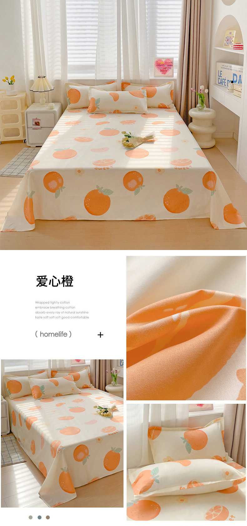• 91家纺网 家纺一手货源 找家纺 楠沐家纺  2025年新款亲肤水洗棉芦荟棉印花床单系列 爱心橙