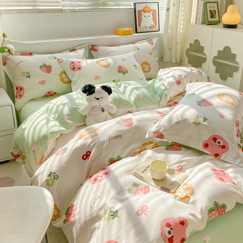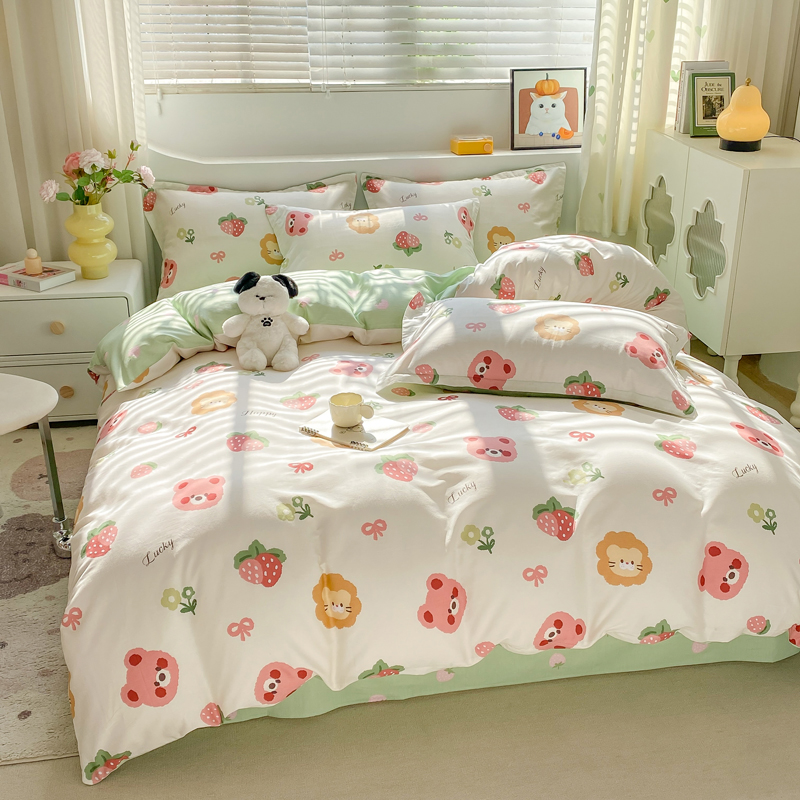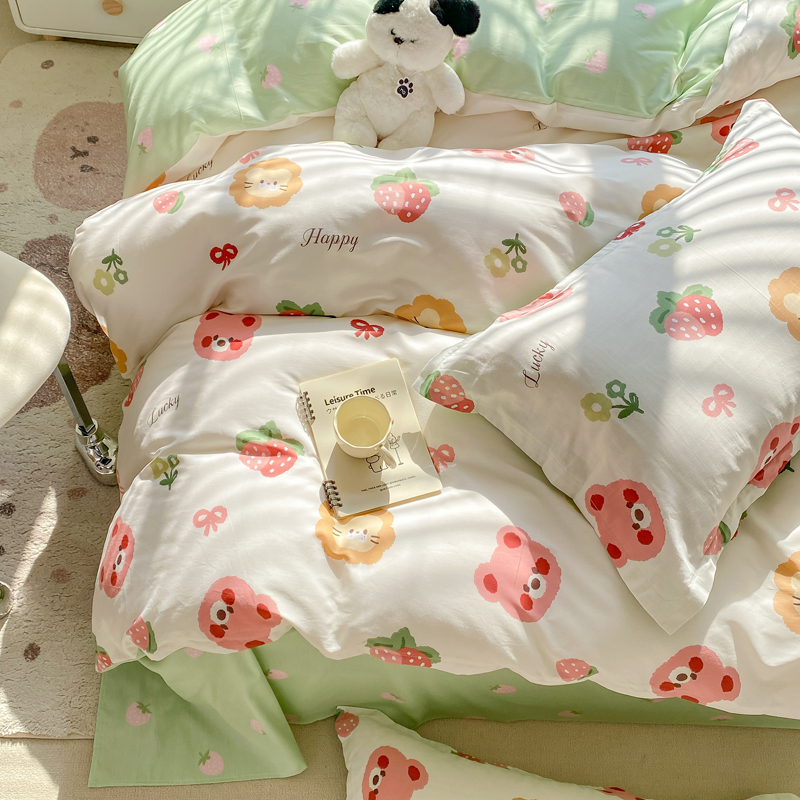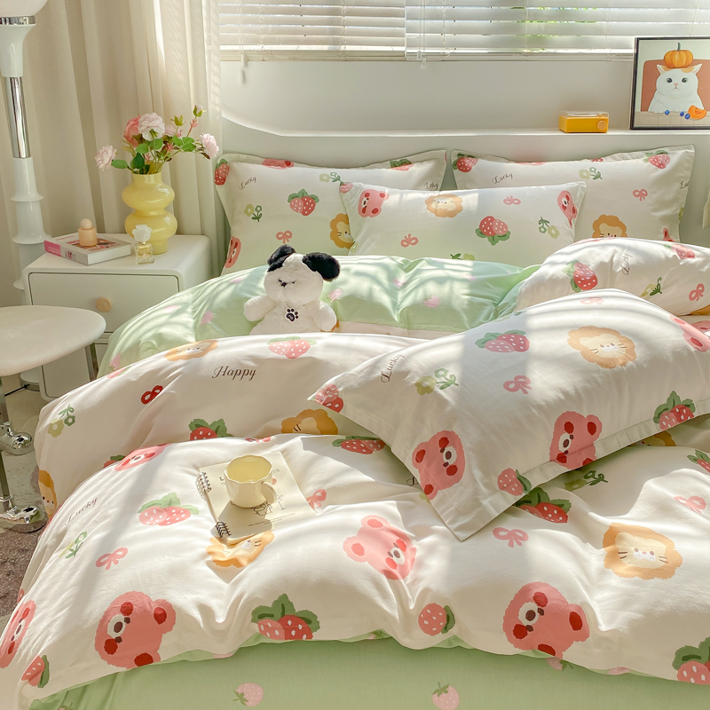 当前位置: 91家纺网 > 商品网购 > 床品套件 > 四件套 > 全棉活性四件套 > 朵安家纺 2024新款12868全棉四件套系列-四件套 草莓熊