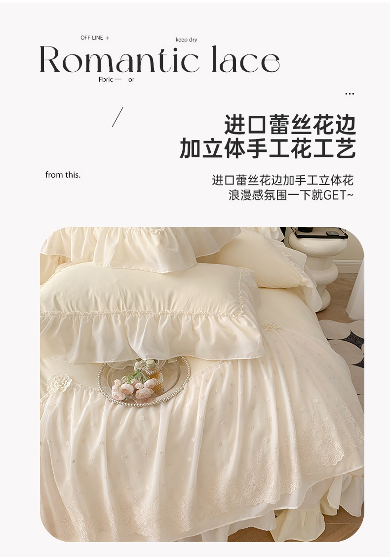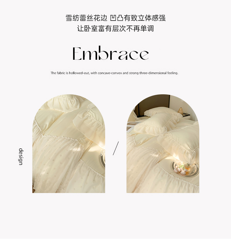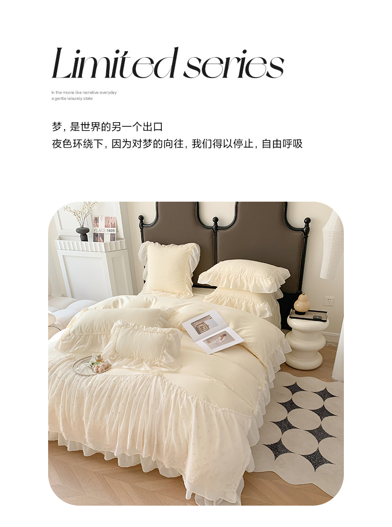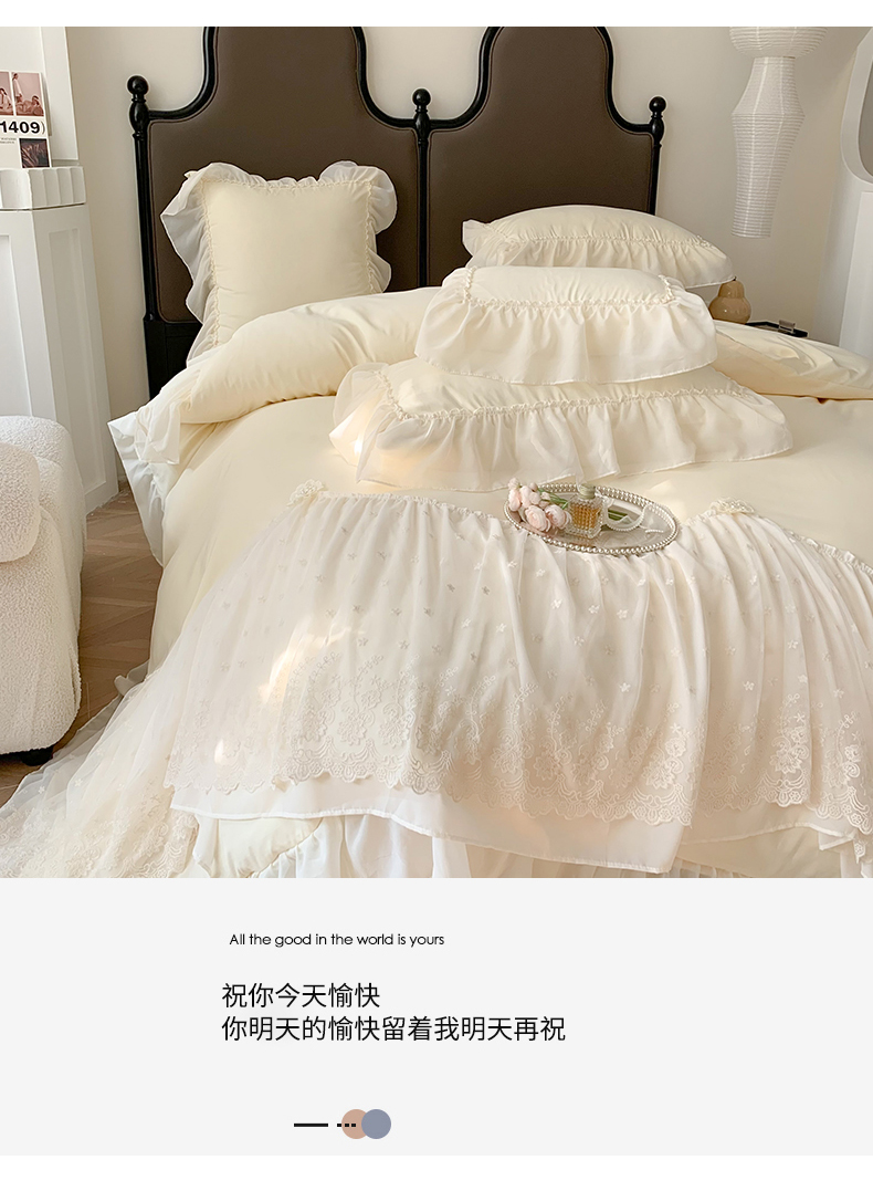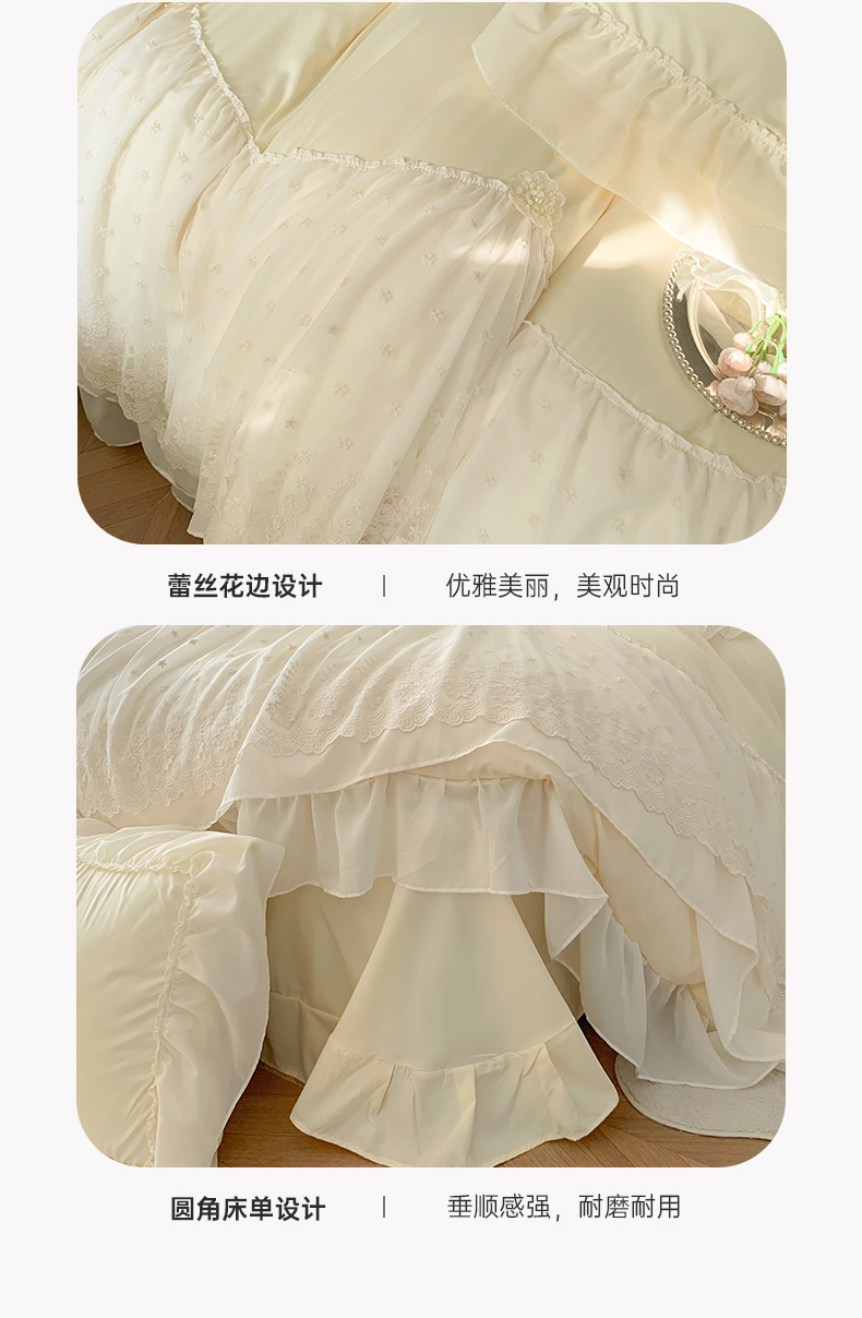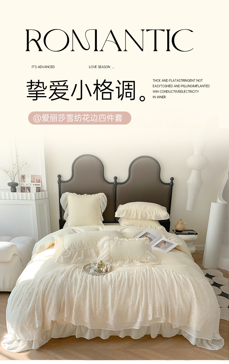 当前位置: 91家纺网 > 商品网购 > 床品套件 > 四件套 > 化纤活性四件套 > 吾欢心 2025新款爱丽莎雪纺花边四件套 爱丽莎黄