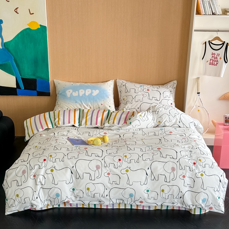 时年 2024新款全棉数码大版趣味系列四件套 动物园