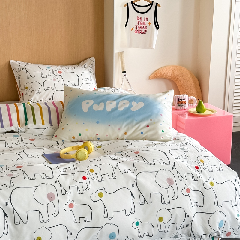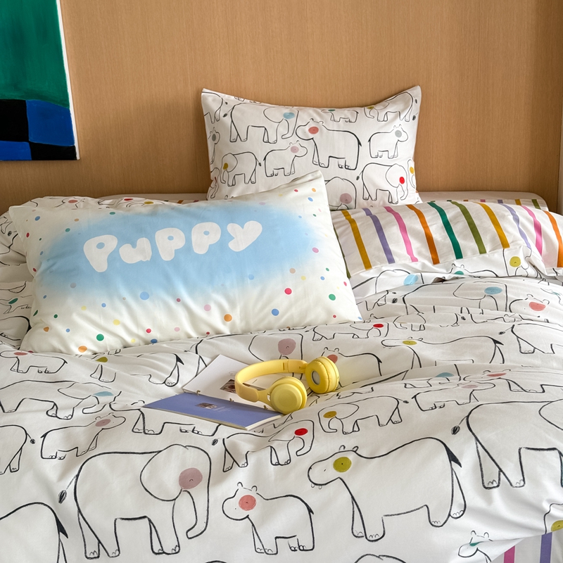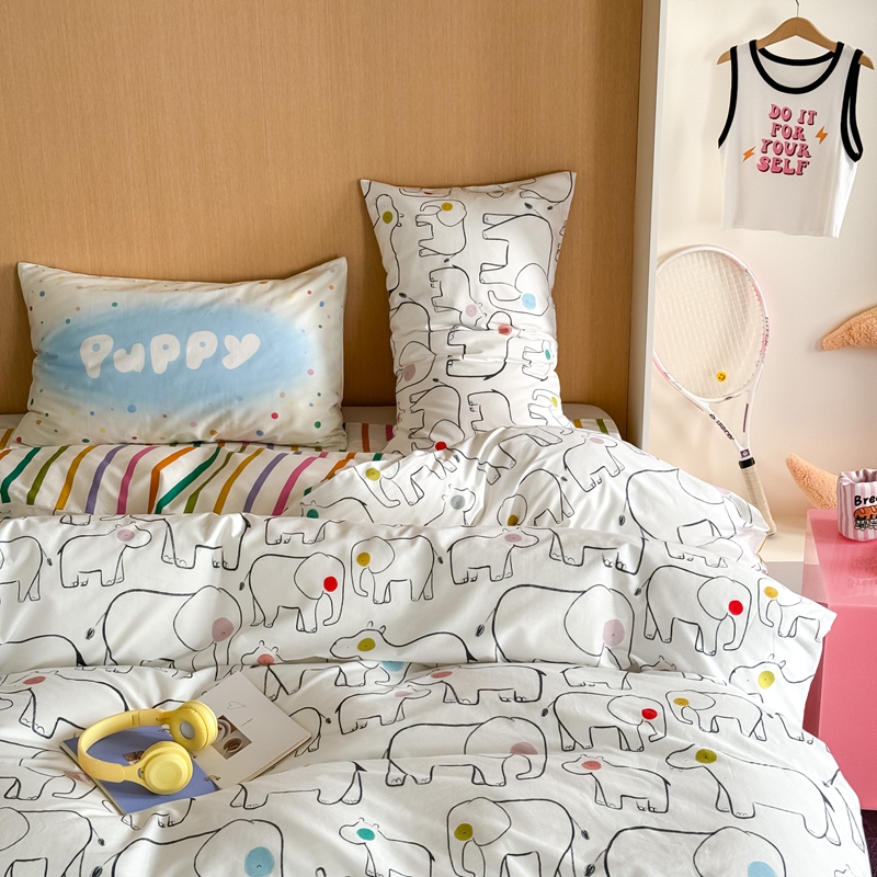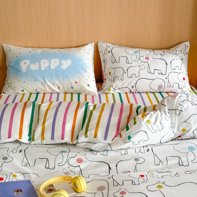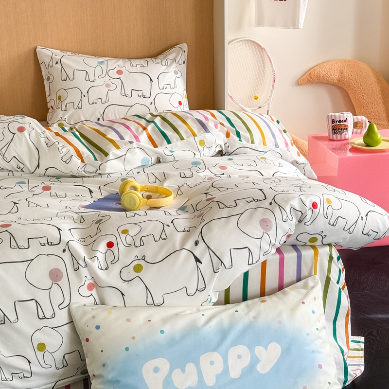 (总)时年 2021新款40S全棉印花四件套小可爱系列,贝尔先生,彩虹云朵,花西子,欢乐字母,金刚,奇思妙想,气球皮皮,树林生活