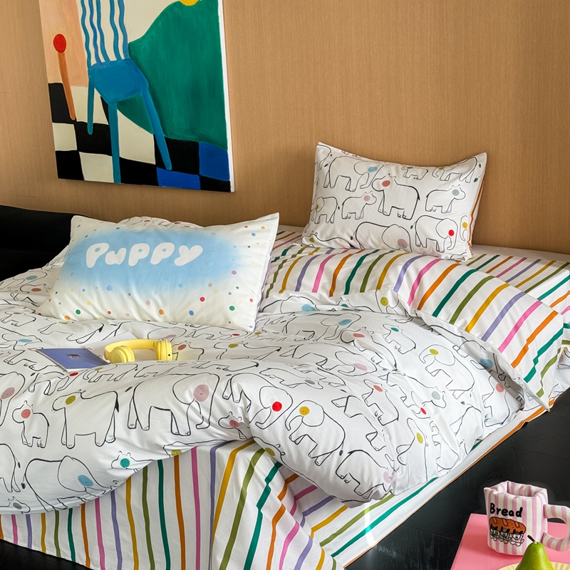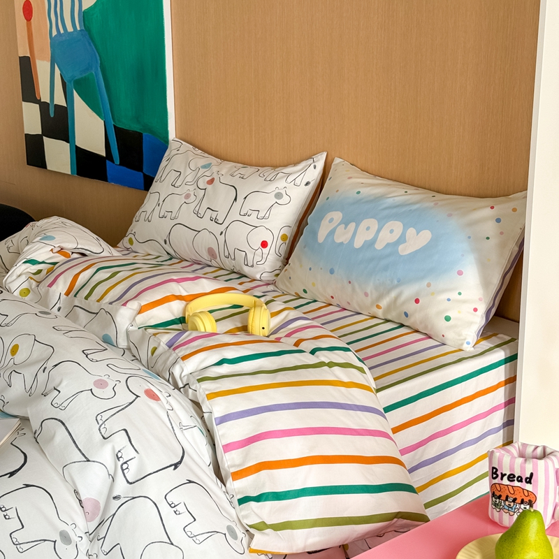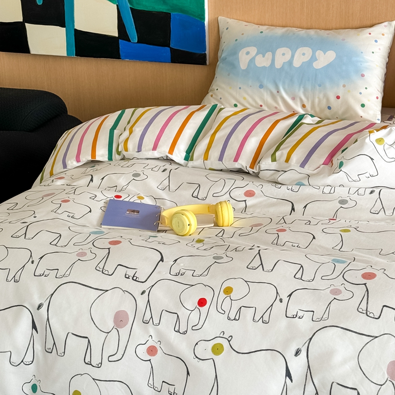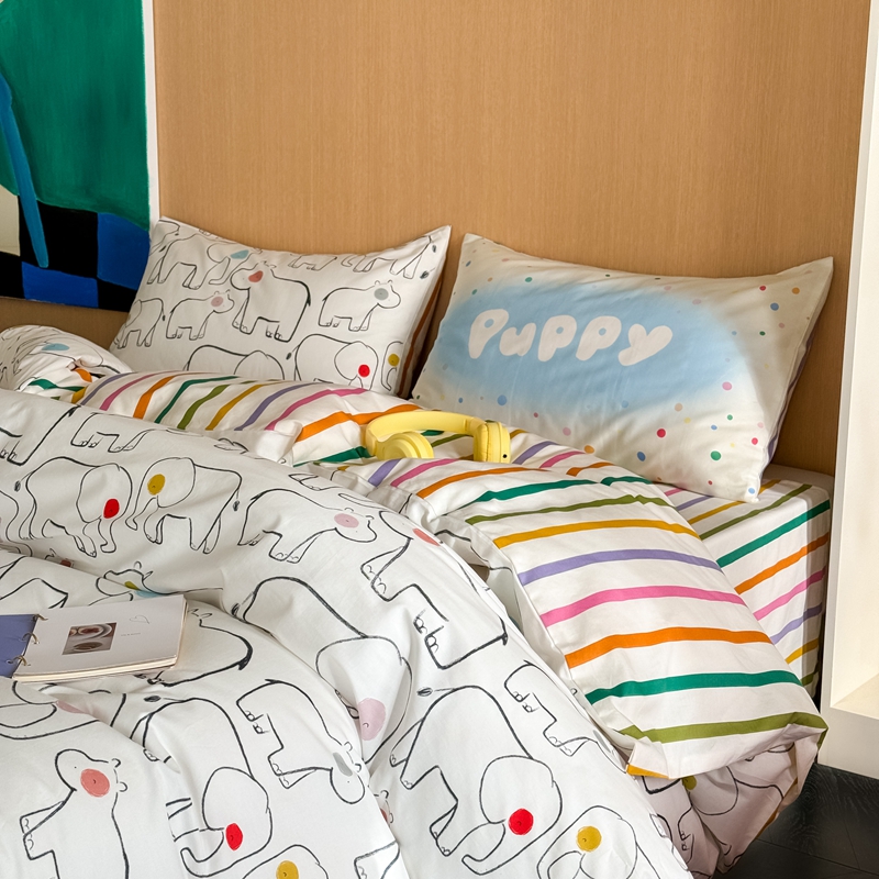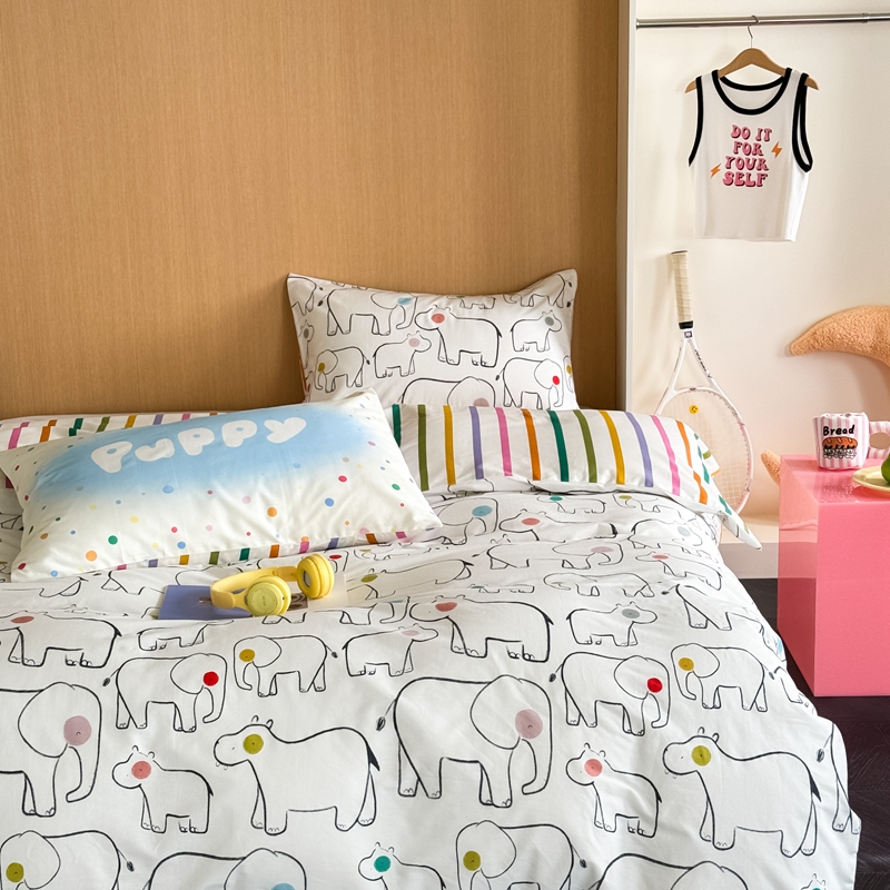 (总)时年 2021新款40S全棉印花四件套小可爱系列,贝尔先生,彩虹云朵,花西子,欢乐字母,金刚,奇思妙想,气球皮皮,树林生活