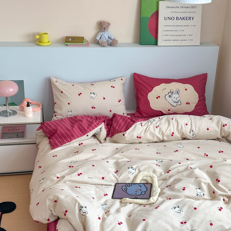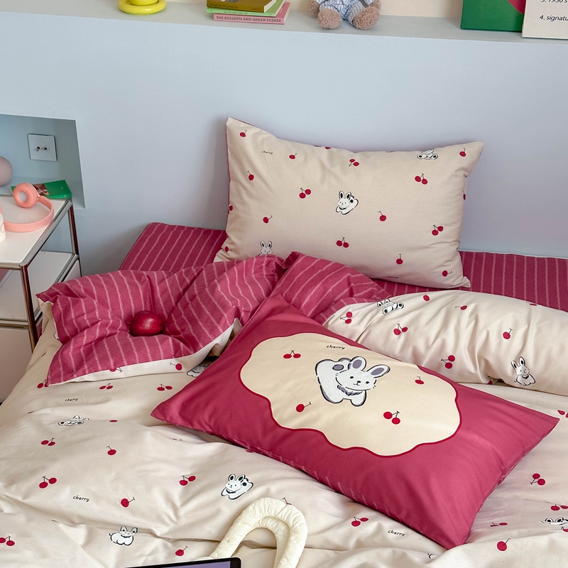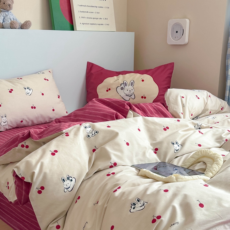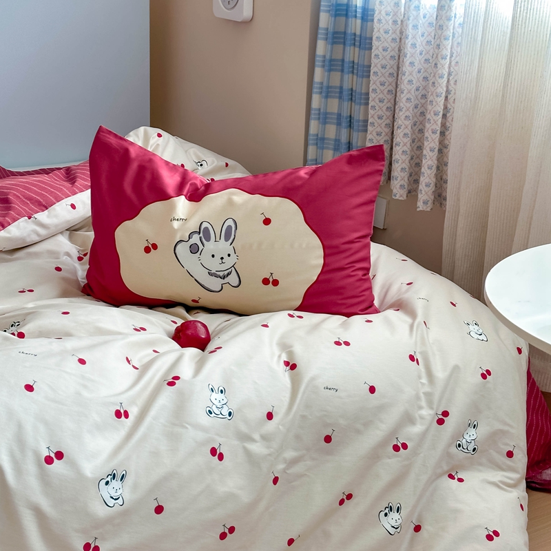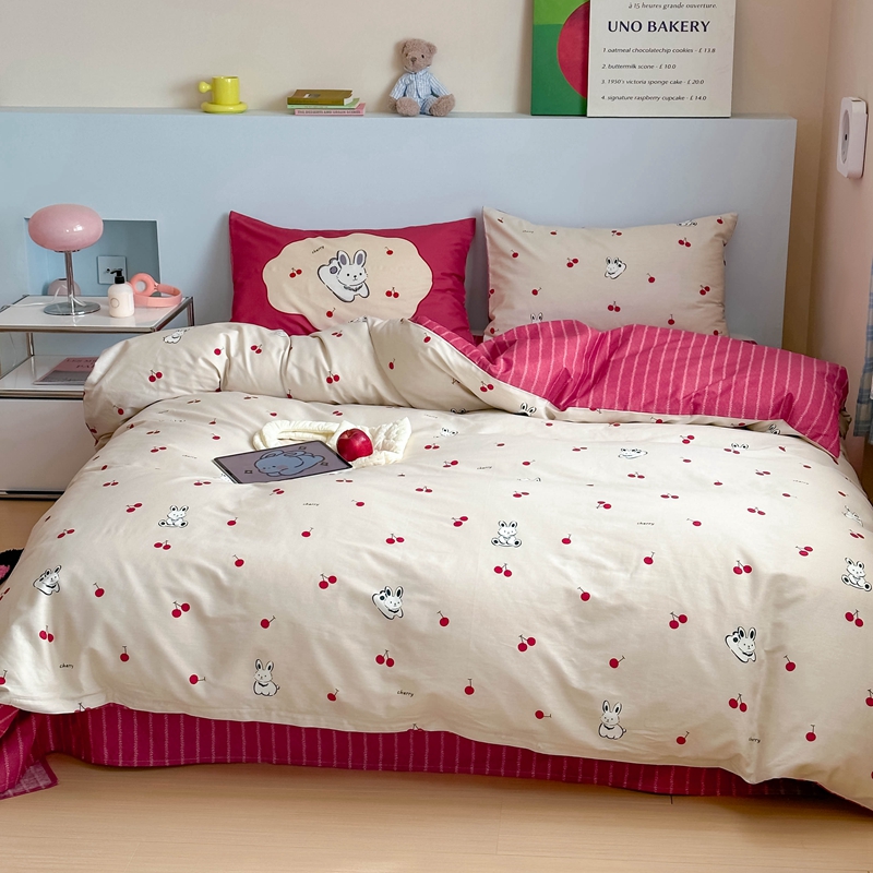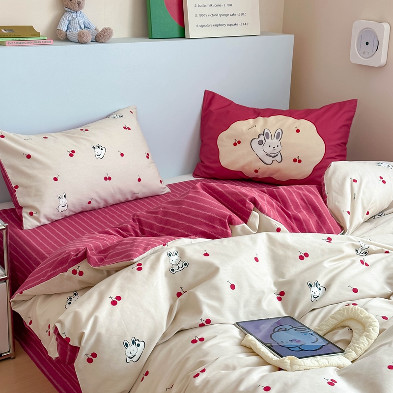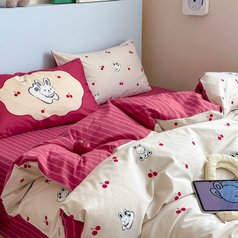 商品名称:时年 2024新款全棉数码大版趣味系列四件套 樱桃兔