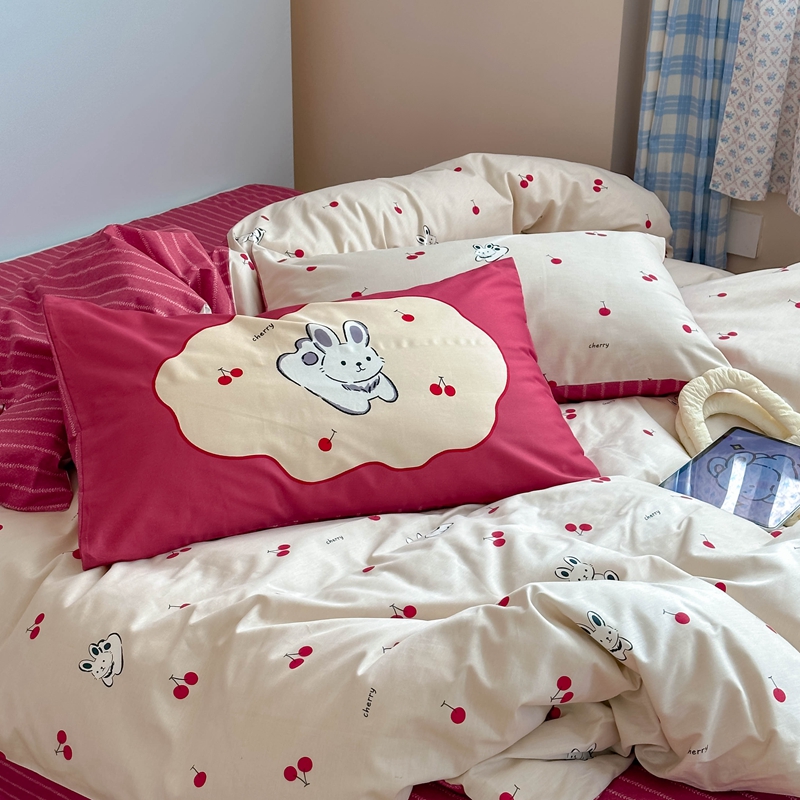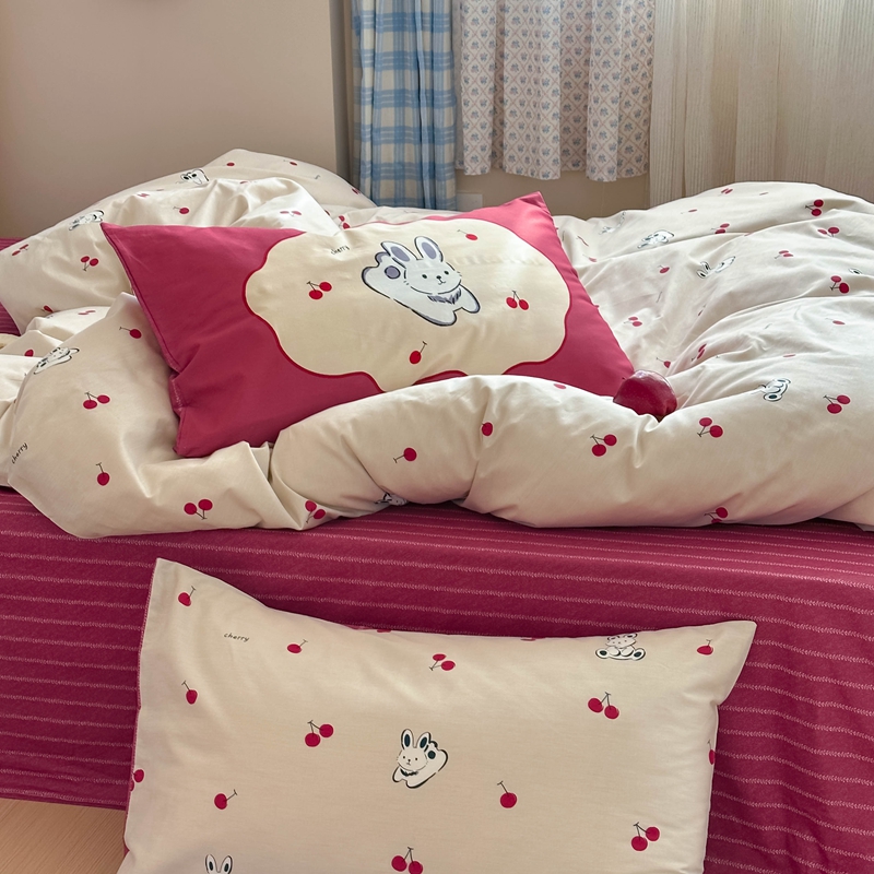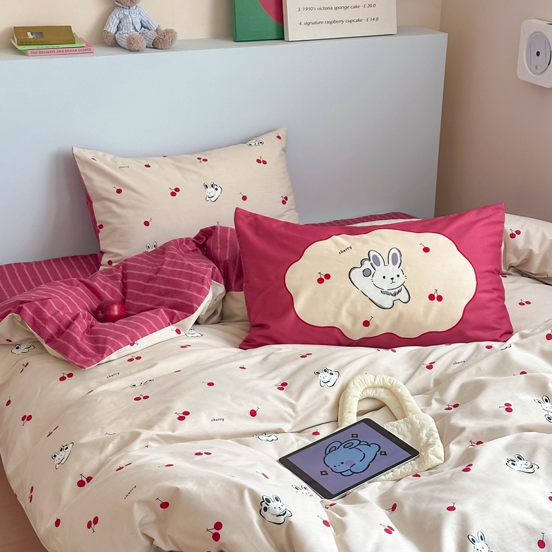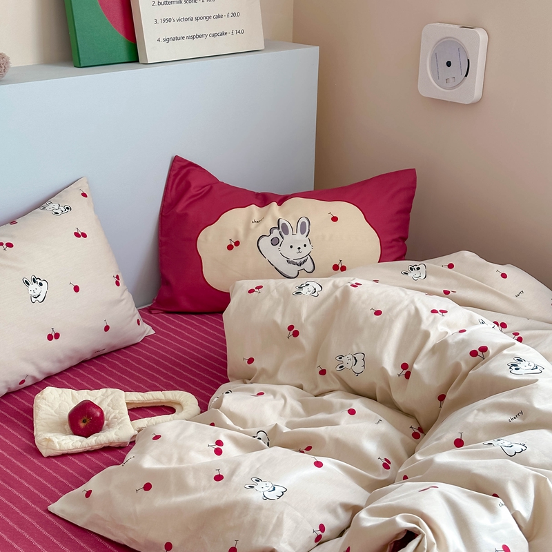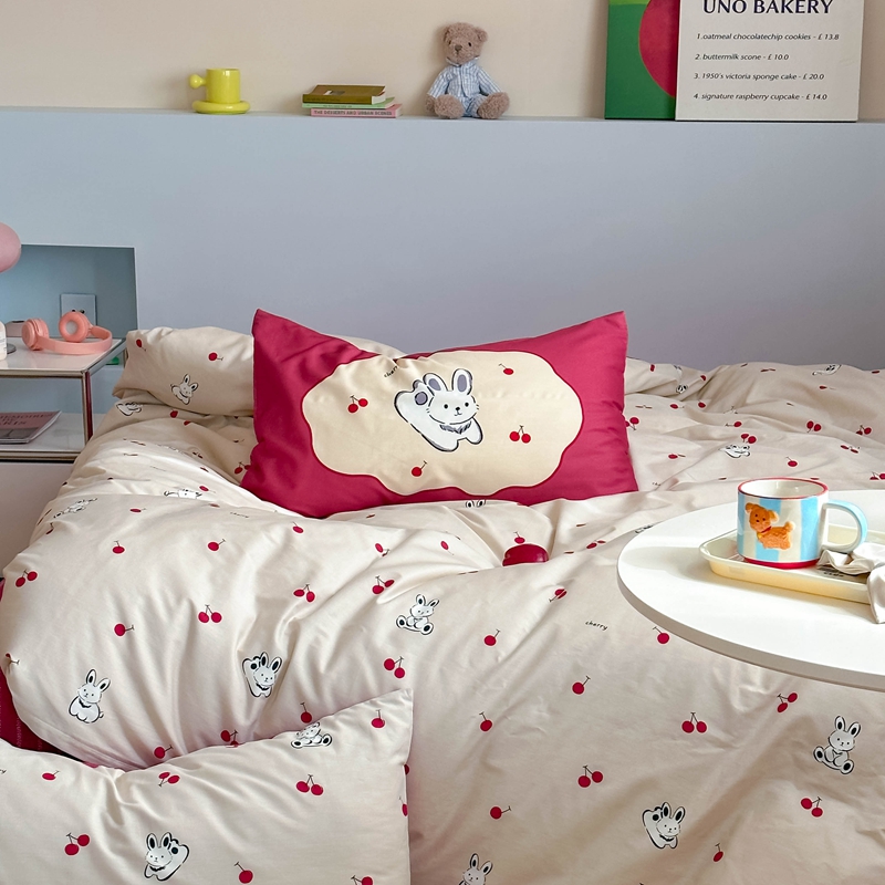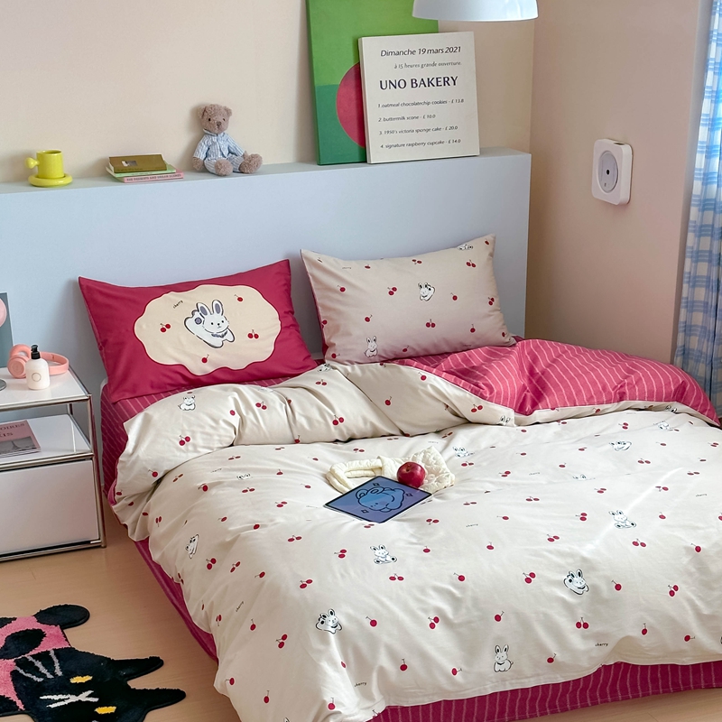 商品名称:时年 2024新款全棉数码大版趣味系列四件套 樱桃兔