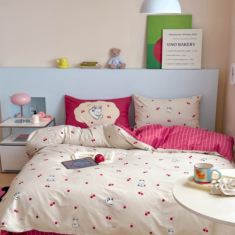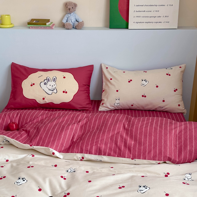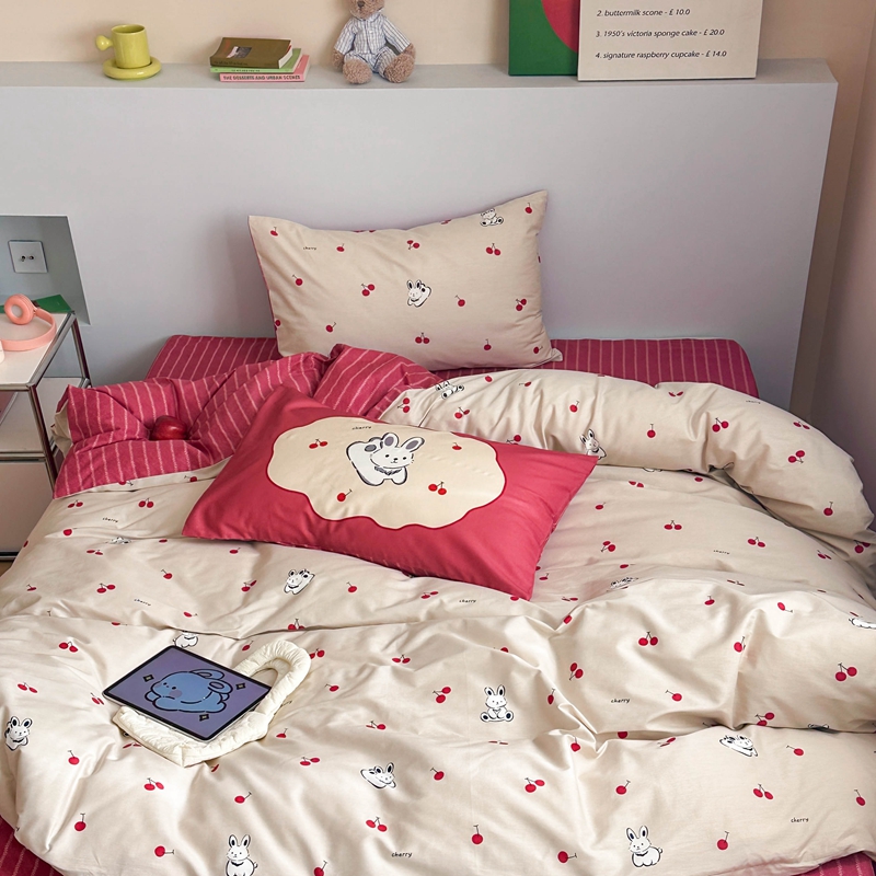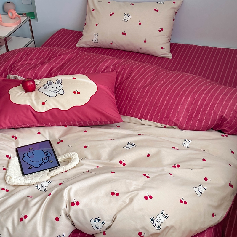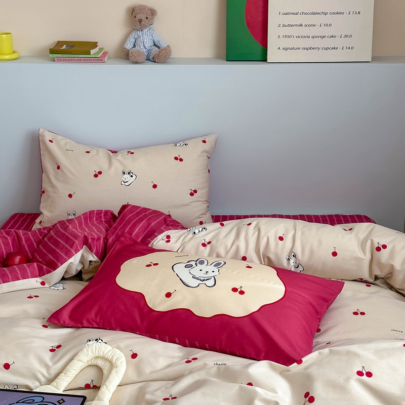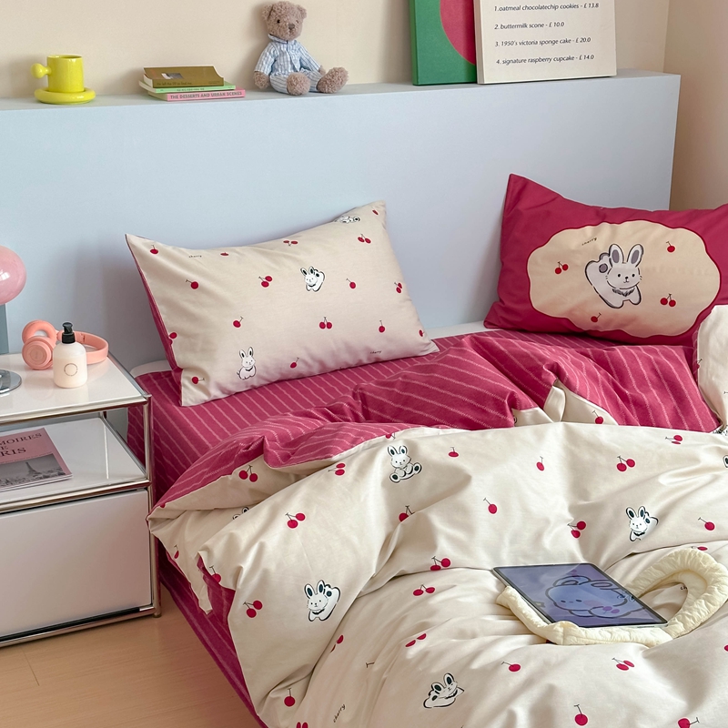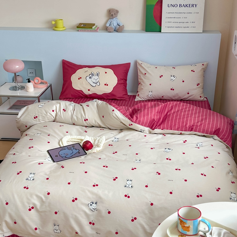 商品名称:时年 2024新款全棉数码大版趣味系列四件套 樱桃兔