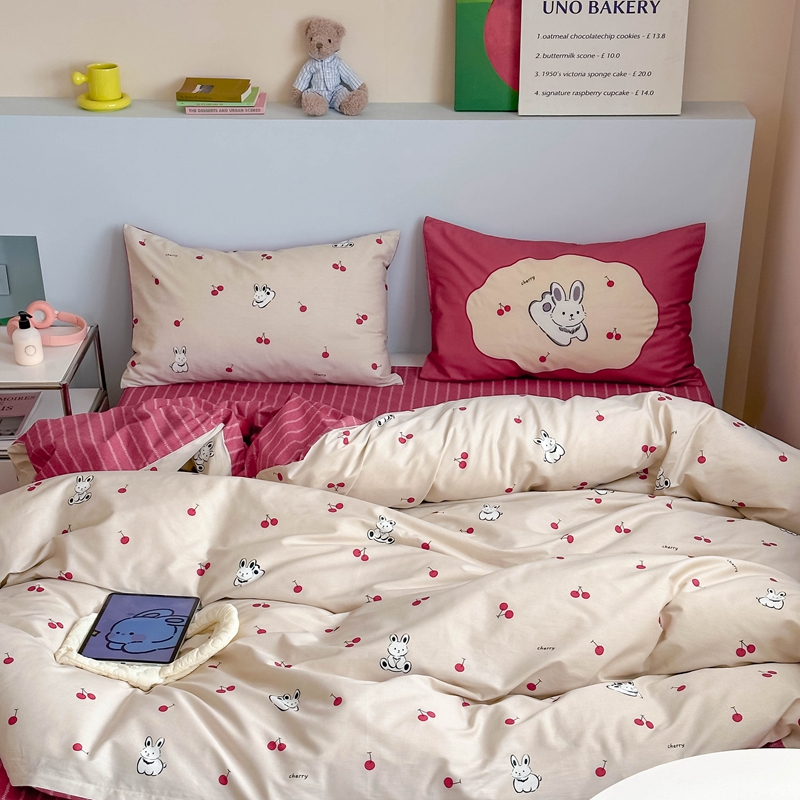 时年 2024新款全棉数码大版趣味系列四件套 樱桃兔