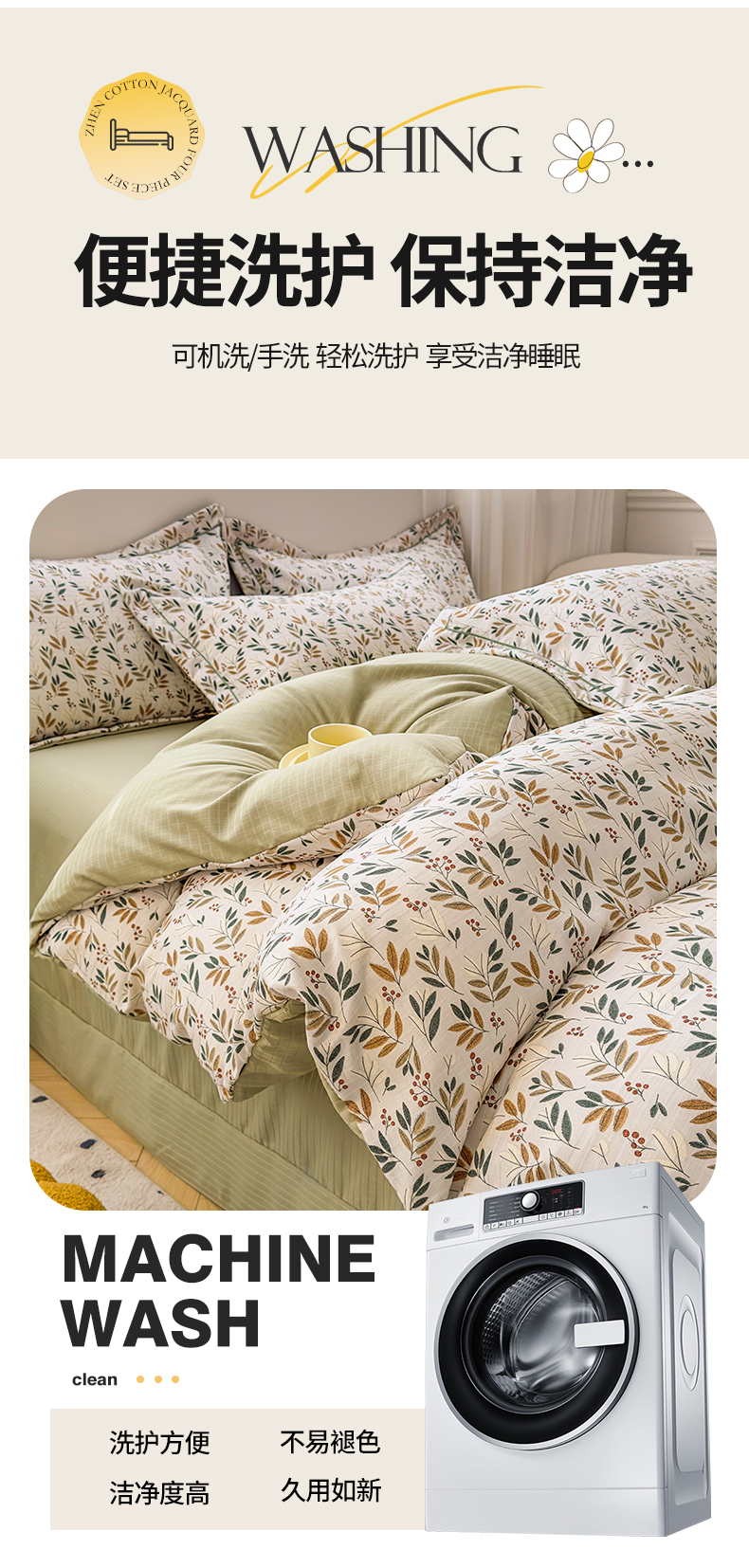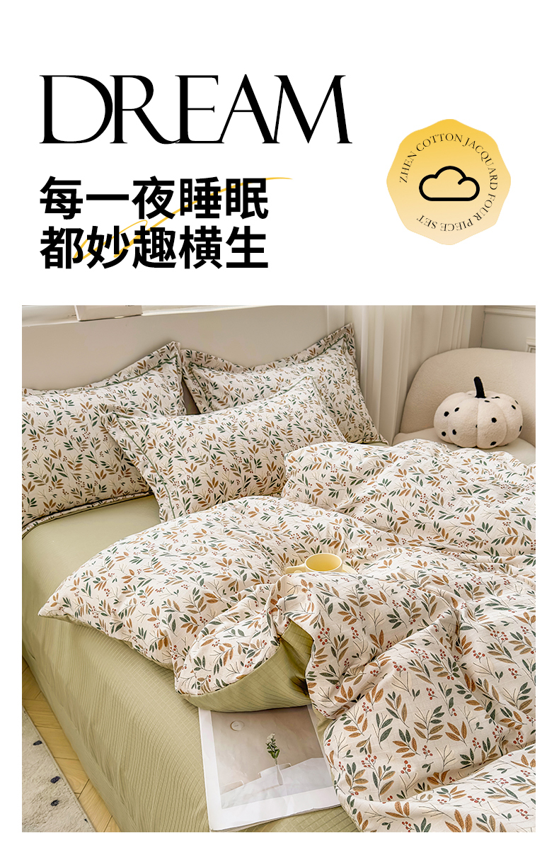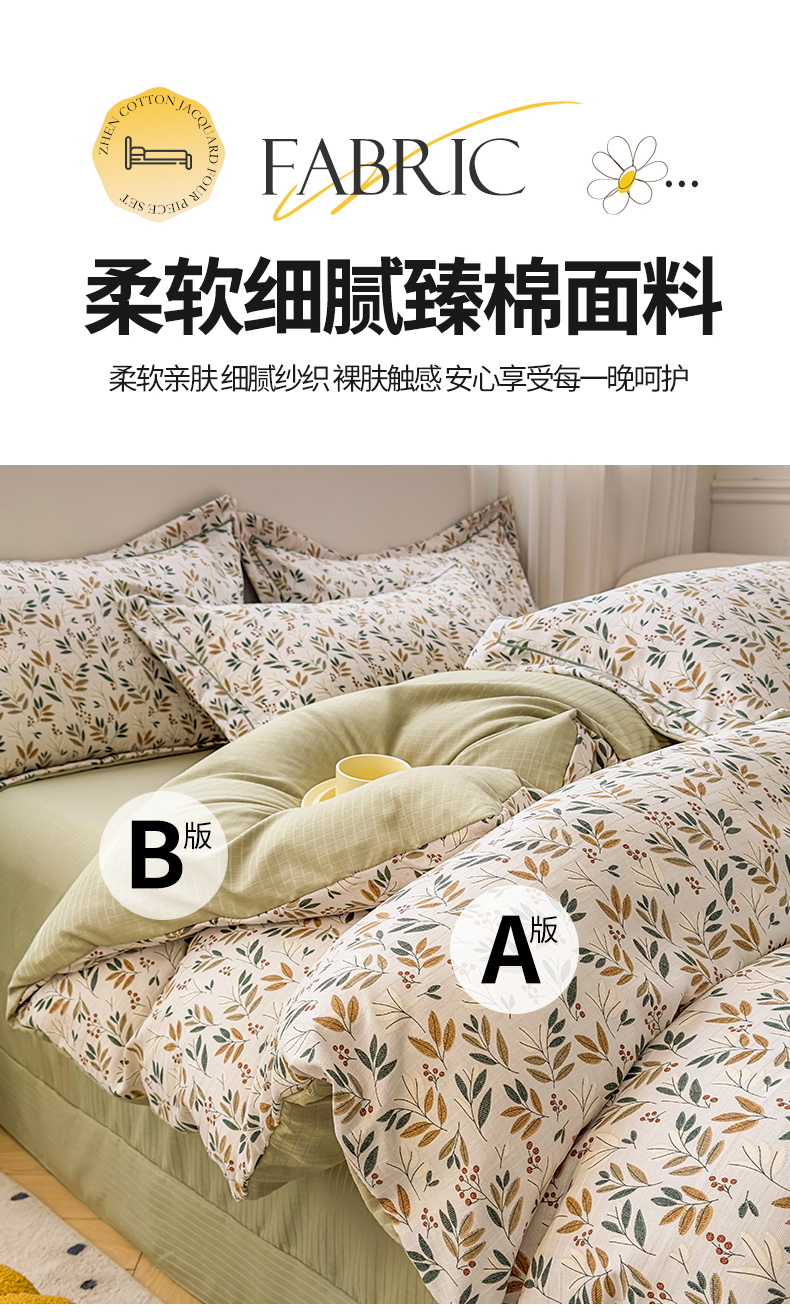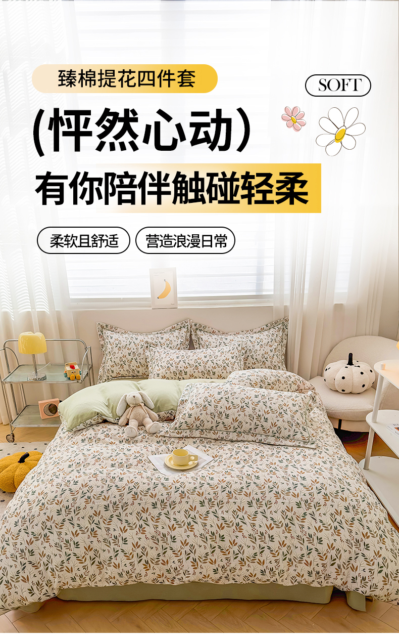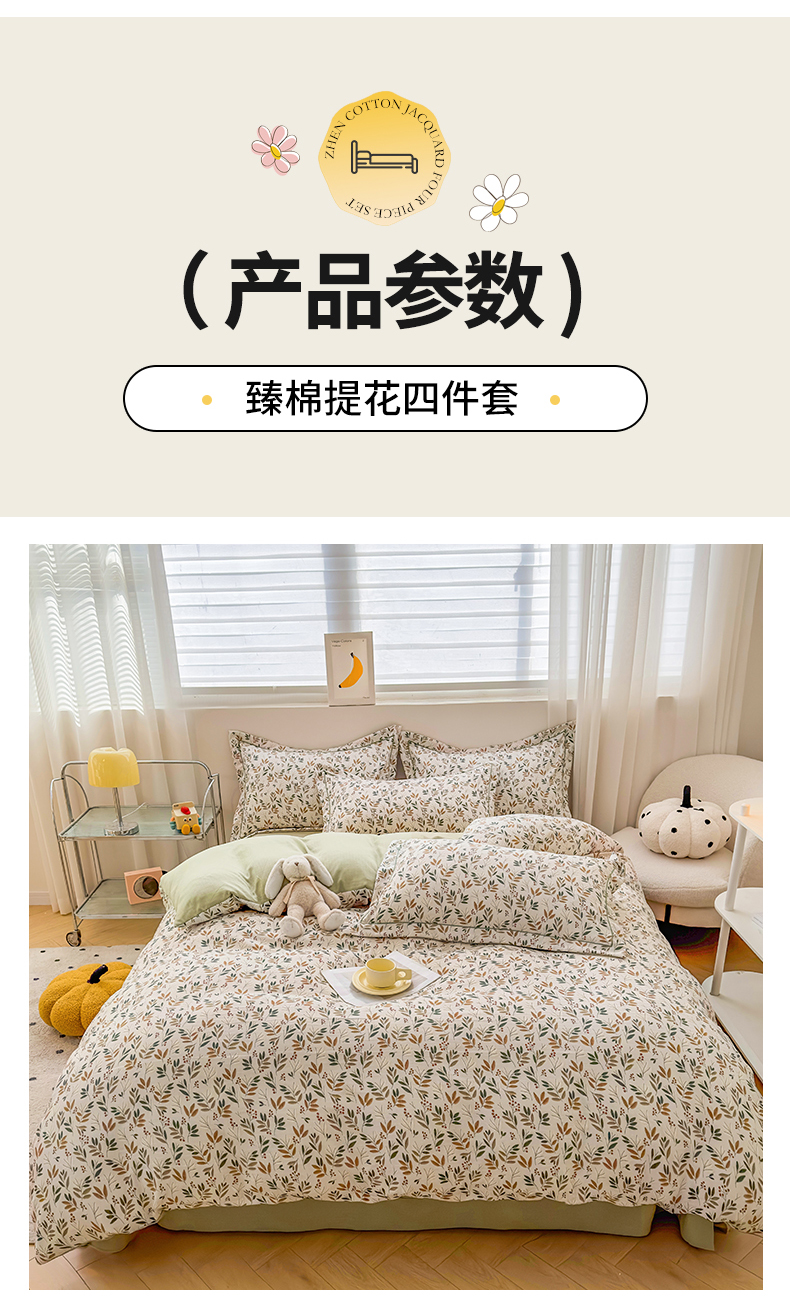 商品名称:雅慕家居 2024新款A类臻棉提花清新风四件套柔软亲肤 幸运草