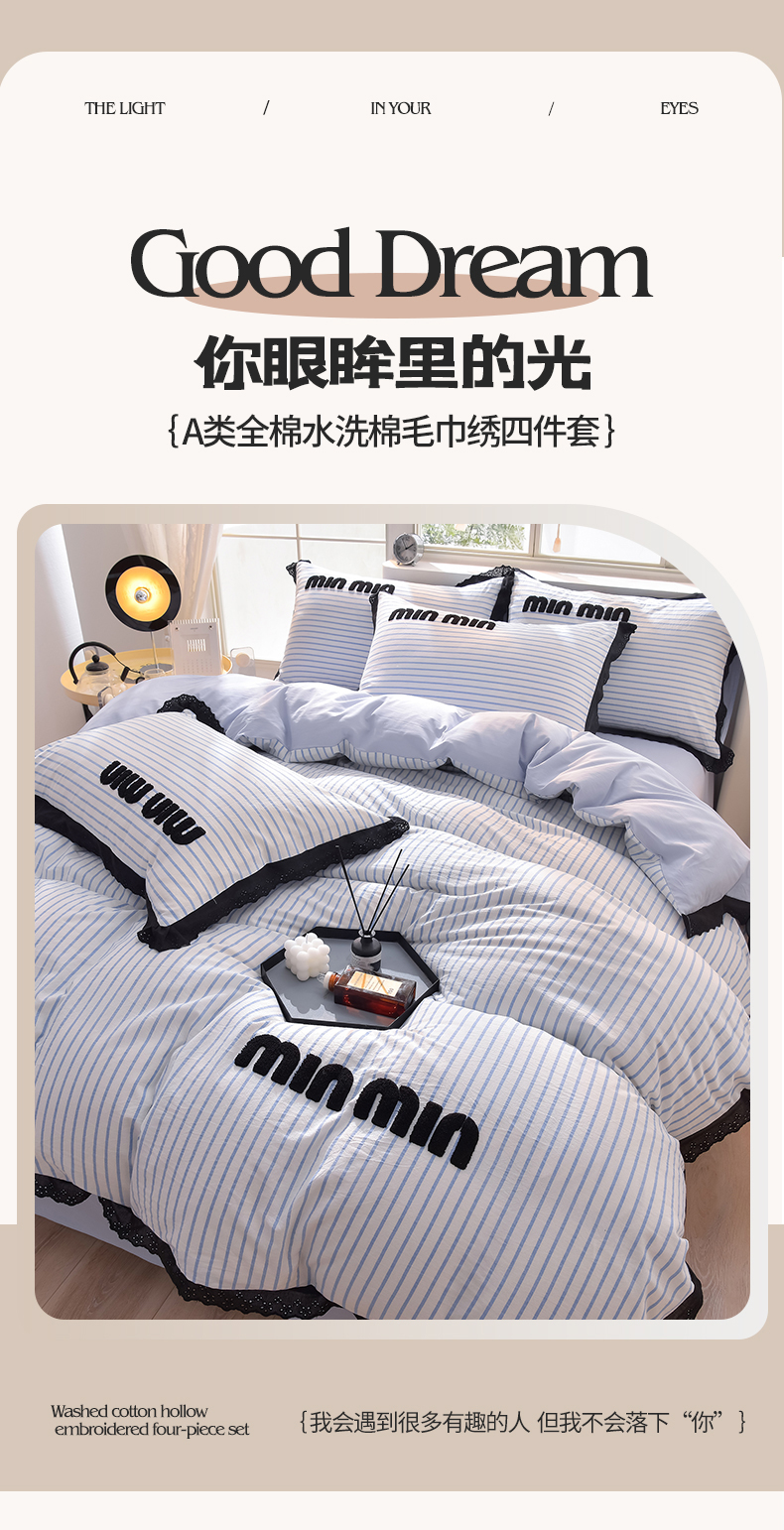 (总)炫拼家纺 2025新款全棉磨毛ins风毛巾绣纯棉四件套-hello系列,hello-月光恋人,hello-云漫,hello-知意,hello-弥野,hello-悠然,hello-可颜