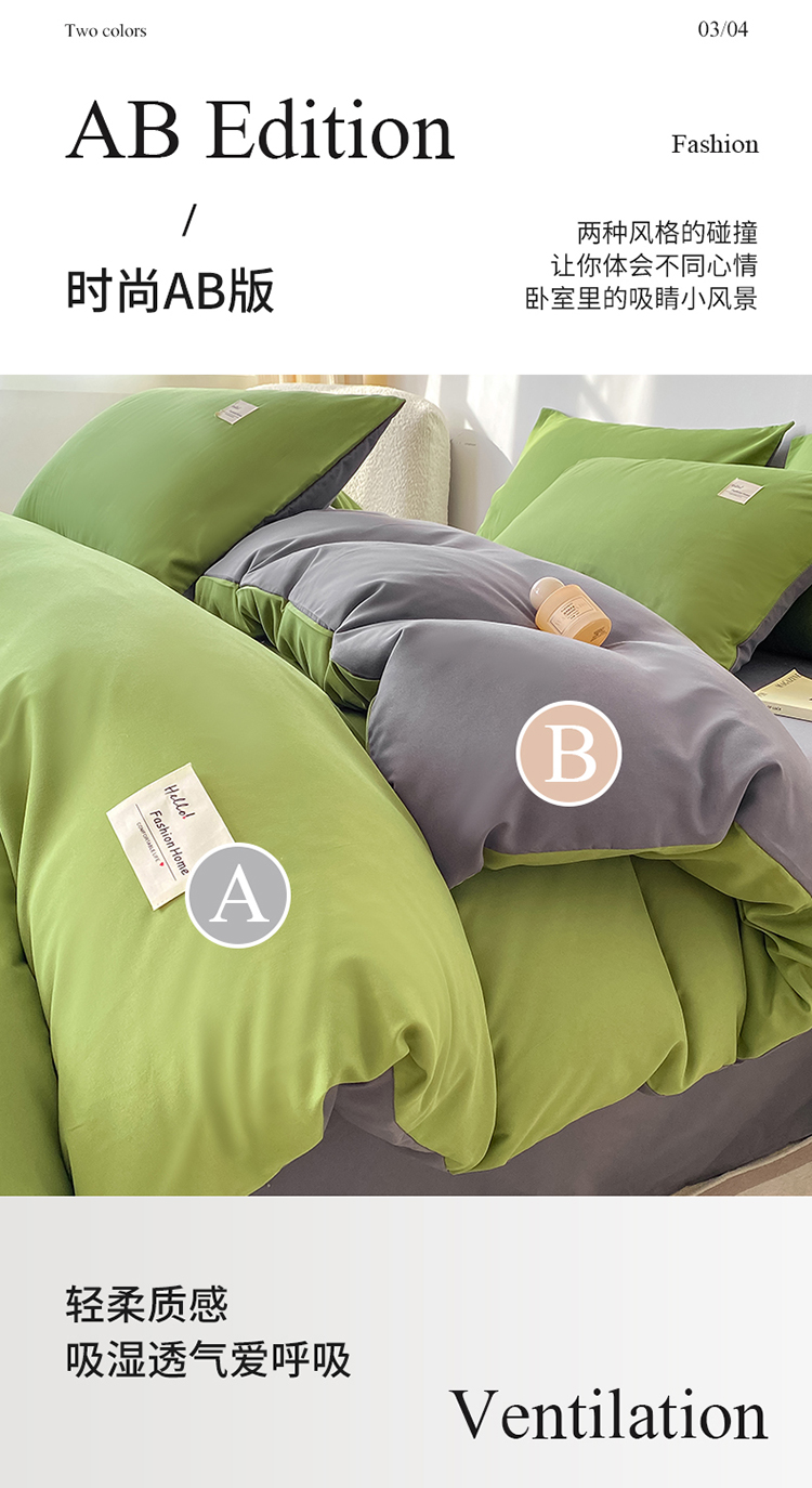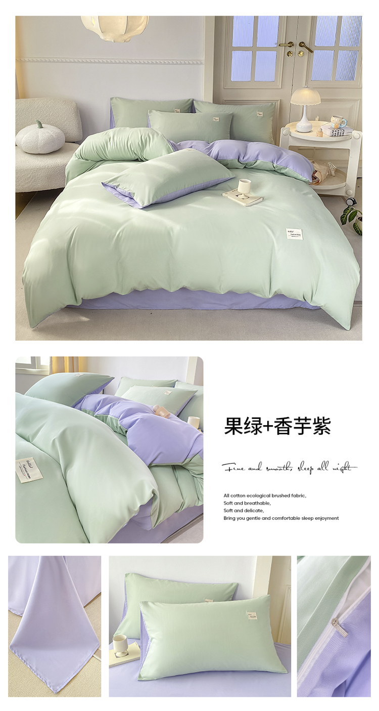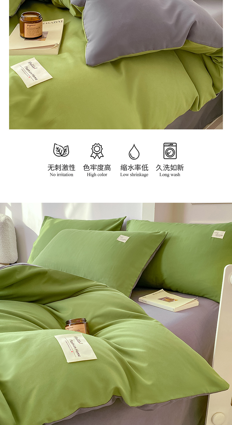 红日子2024新款纯色雅棉四件套,灌木绿+高级灰,果绿+香芋紫,藕荷粉+月光蓝,胭脂粉+绅士灰,玉粉+奶咖,玉粉+珍珠白,月光蓝+香丁紫,珍珠白+绅士灰,珍珠白+天空蓝,芝士黄+湖蓝,天蓝+幽紫,幽紫+浅黄,玉粉+天蓝