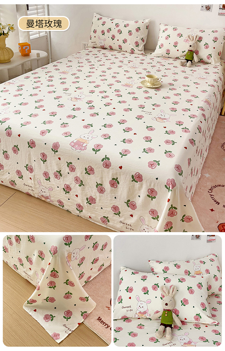 纽缦家纺 2024水洗双层纱床单 曼塔玫瑰