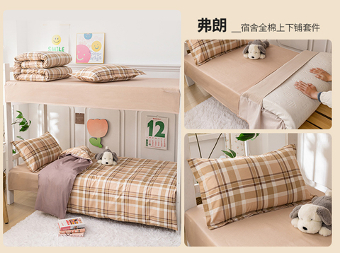 纯棉印花13070学生三件套寝室全棉宿舍床套件上下铺床品 弗朗