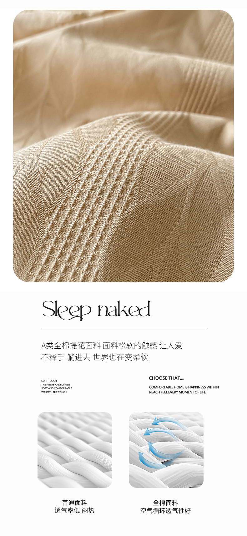 商品名称:启程家纺 2024新款全棉华夫格提花四件套 小豆芽-奶咖