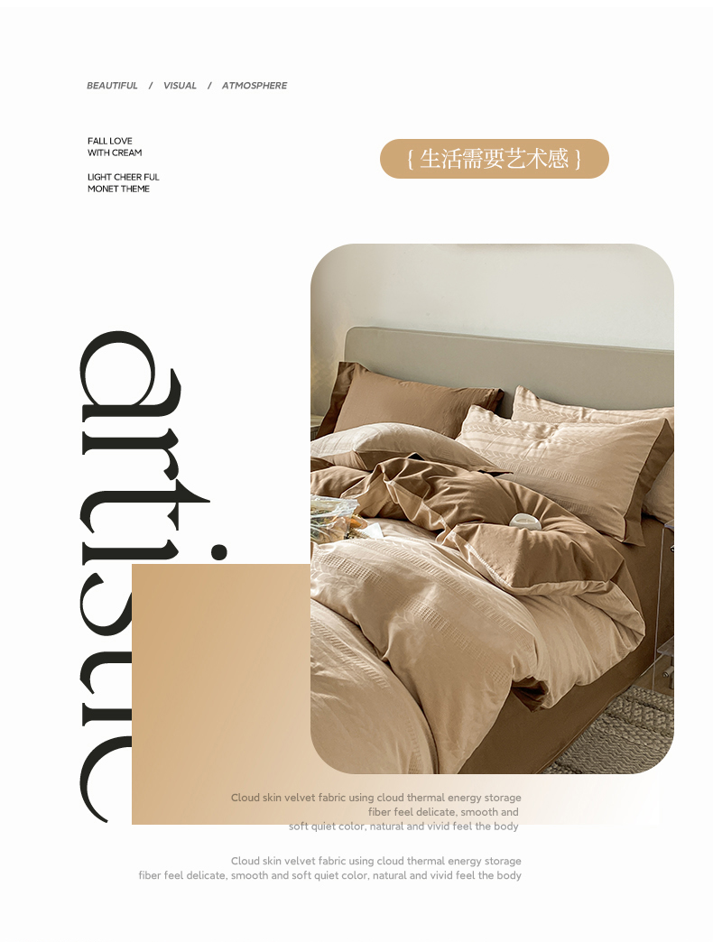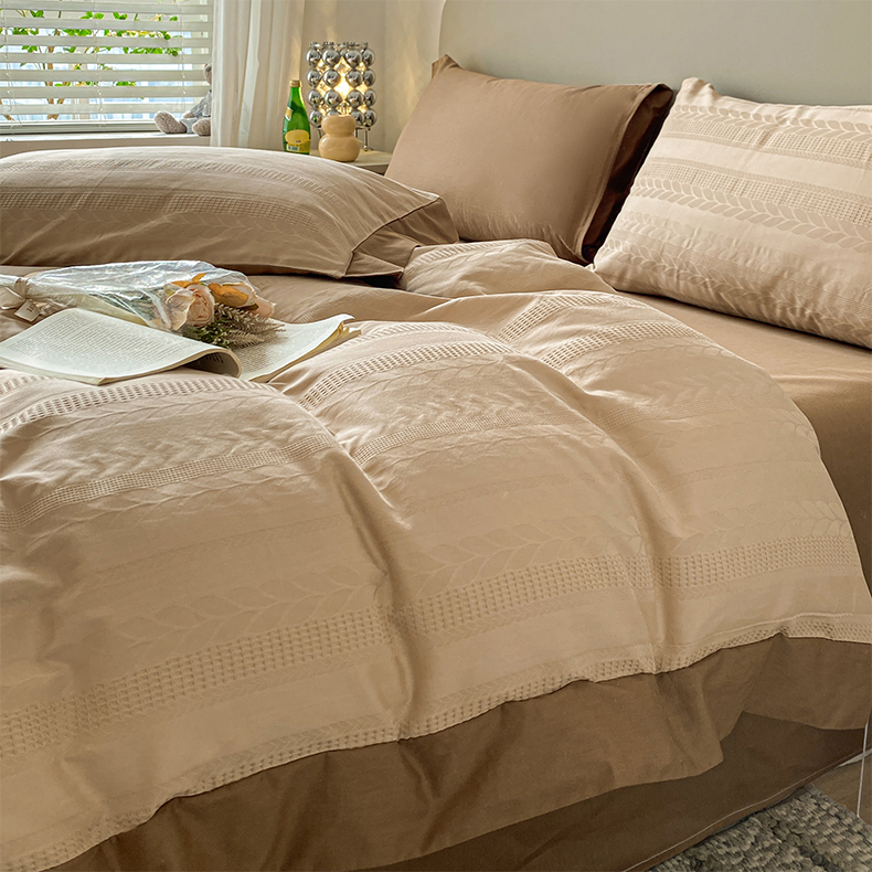 启程家纺 2024新款全棉华夫格提花四件套 小豆芽-奶咖