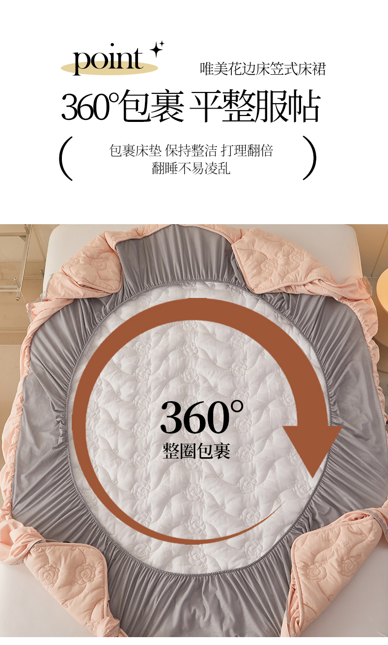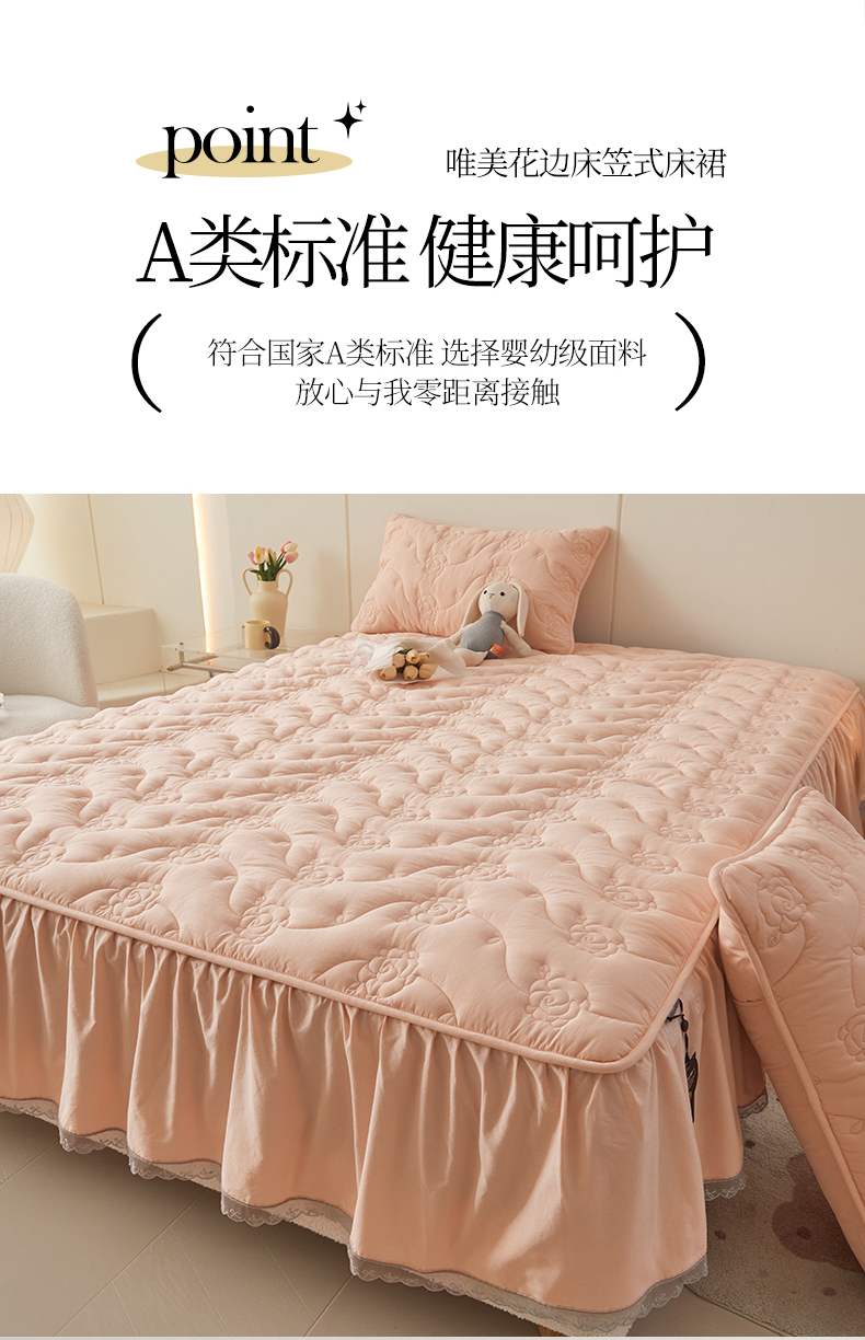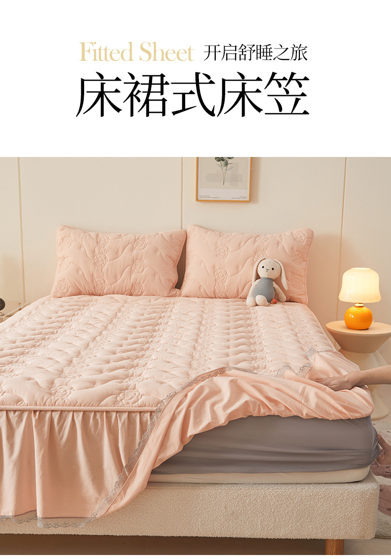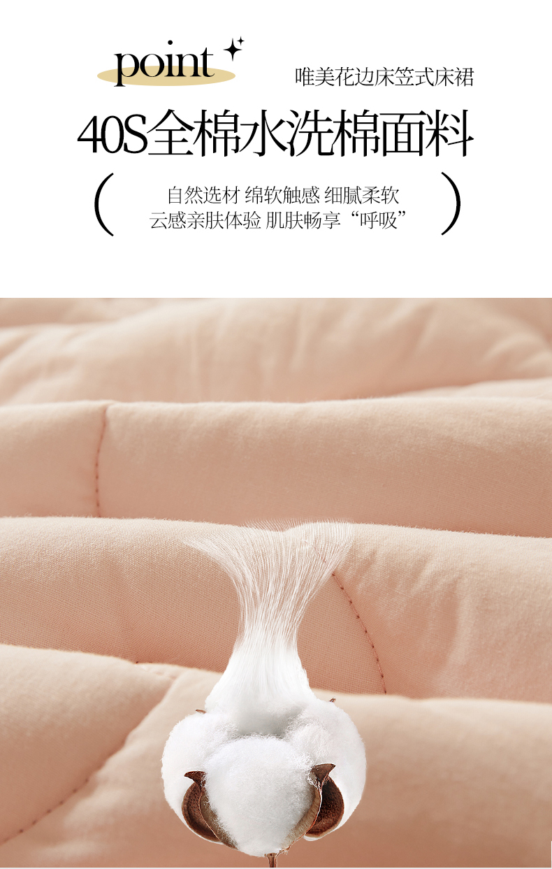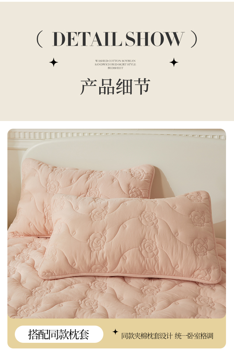 商品名称:3C 2024新款全棉水洗棉大豆夹棉床裙式床笠 典雅玉