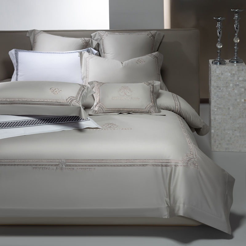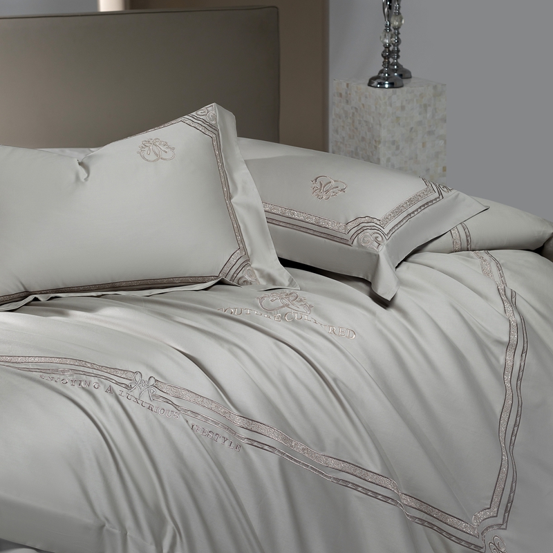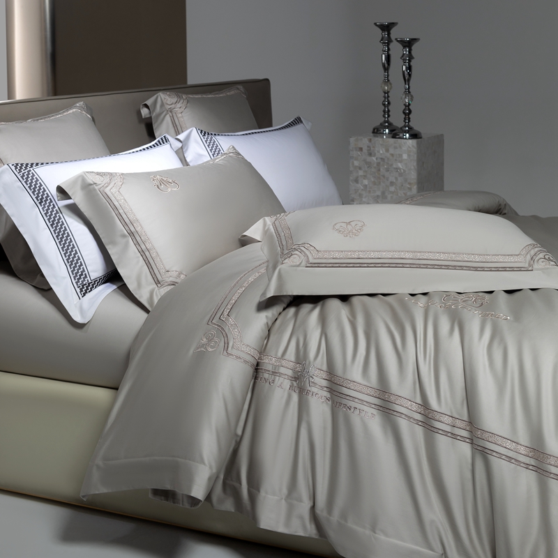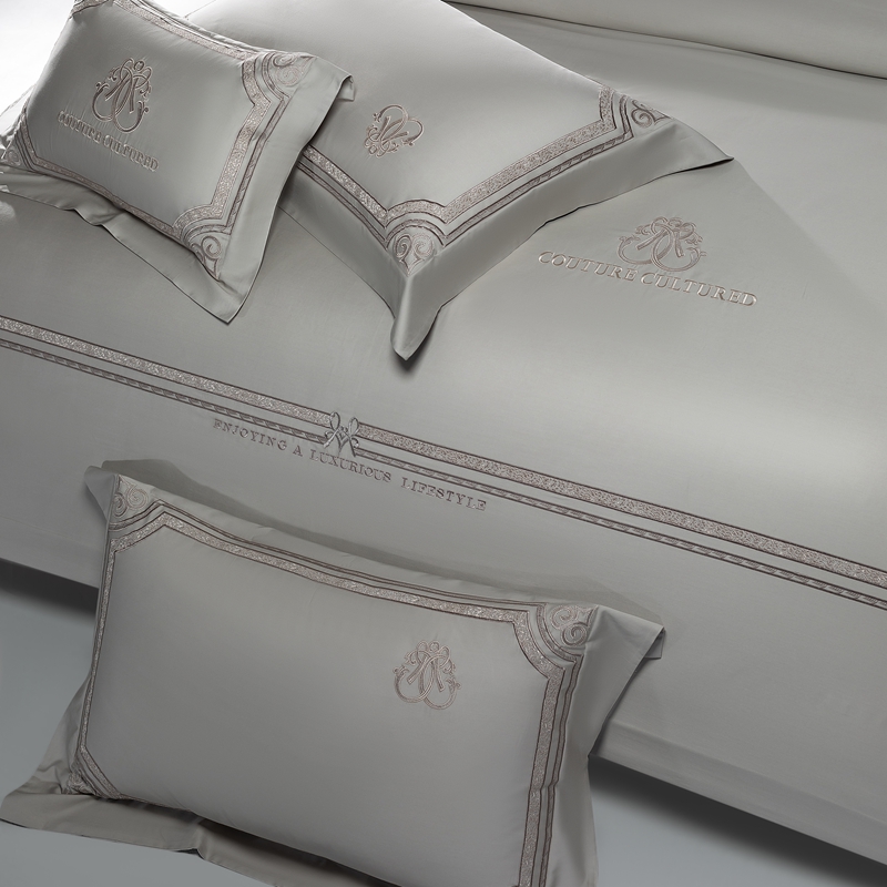 商品名称:高大尚2025春夏新品长绒棉高端绣花四件套-法尔曼 法尔曼 绅士灰