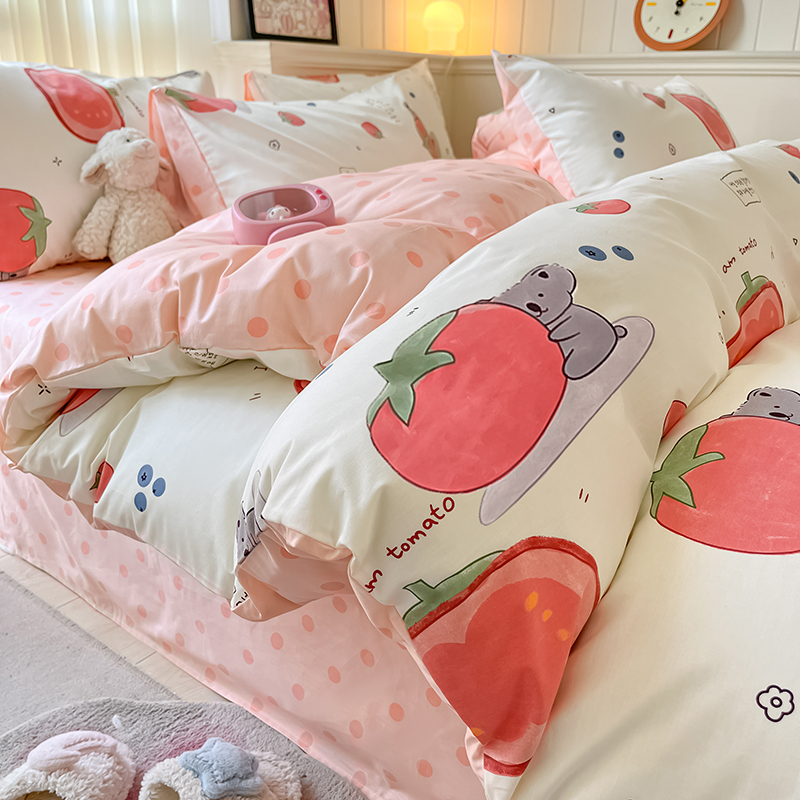 顾里2024新款40支13372全棉四件套-韩风系列 番茄小熊