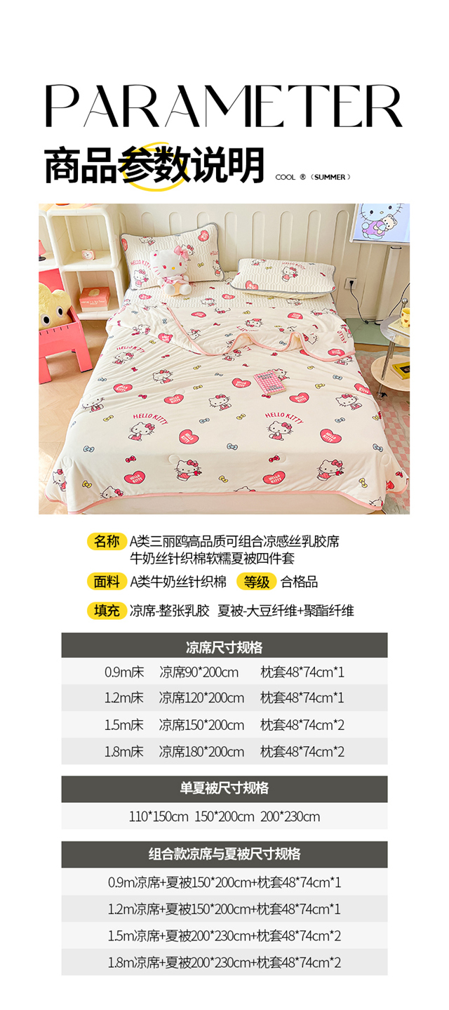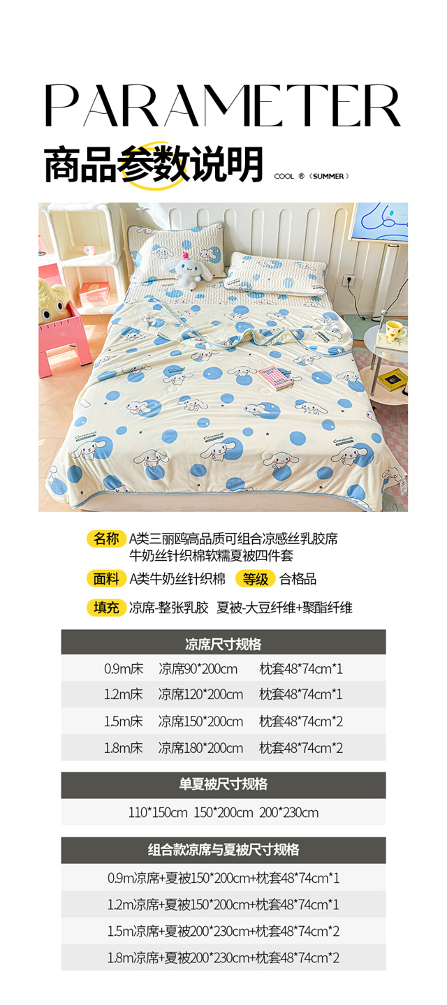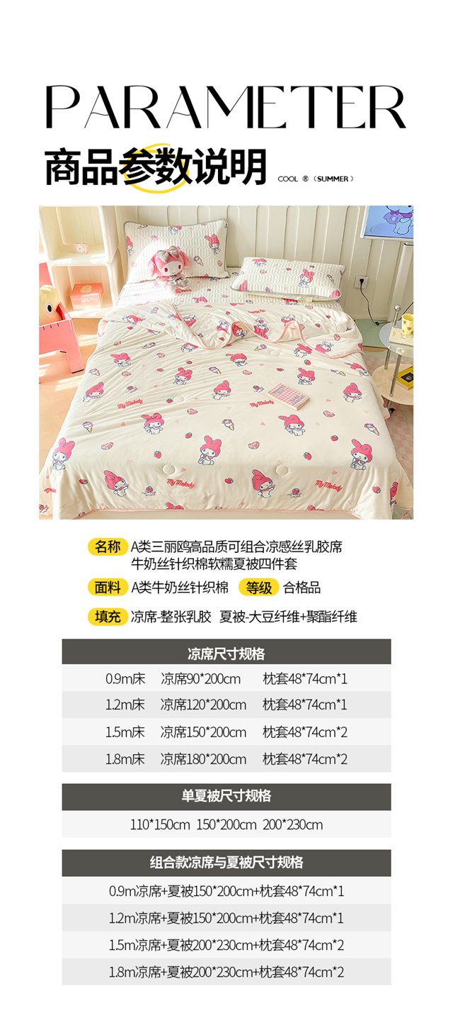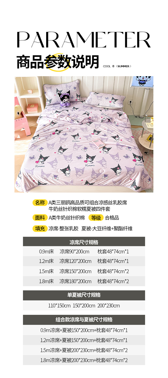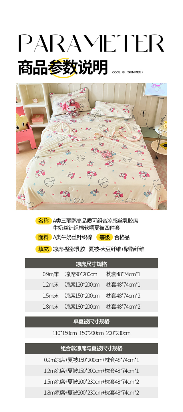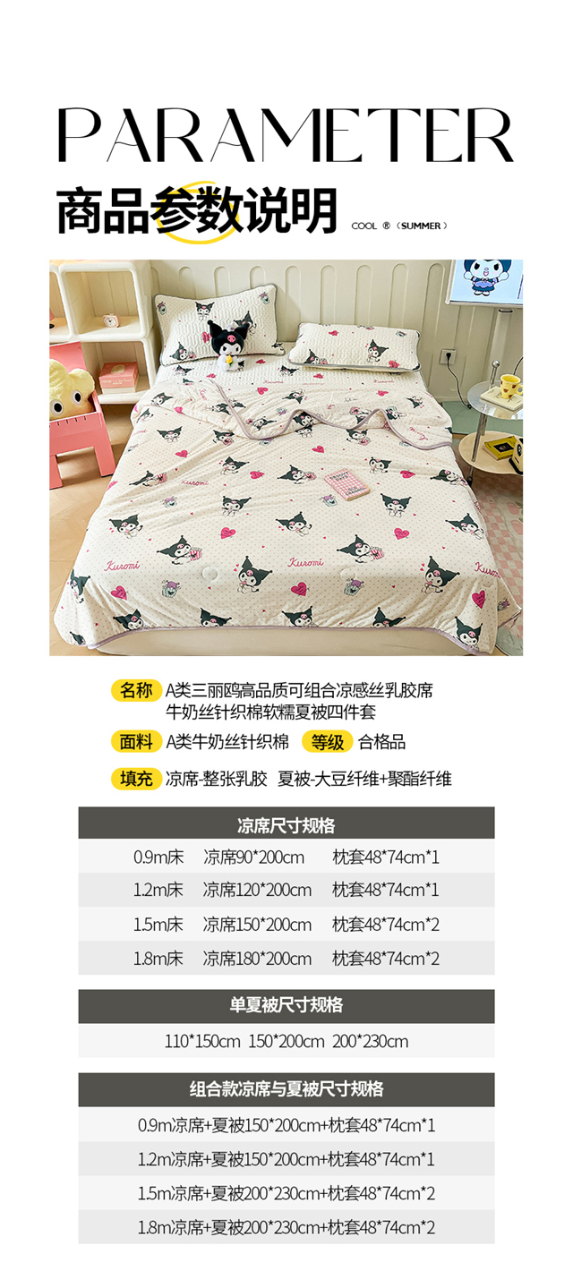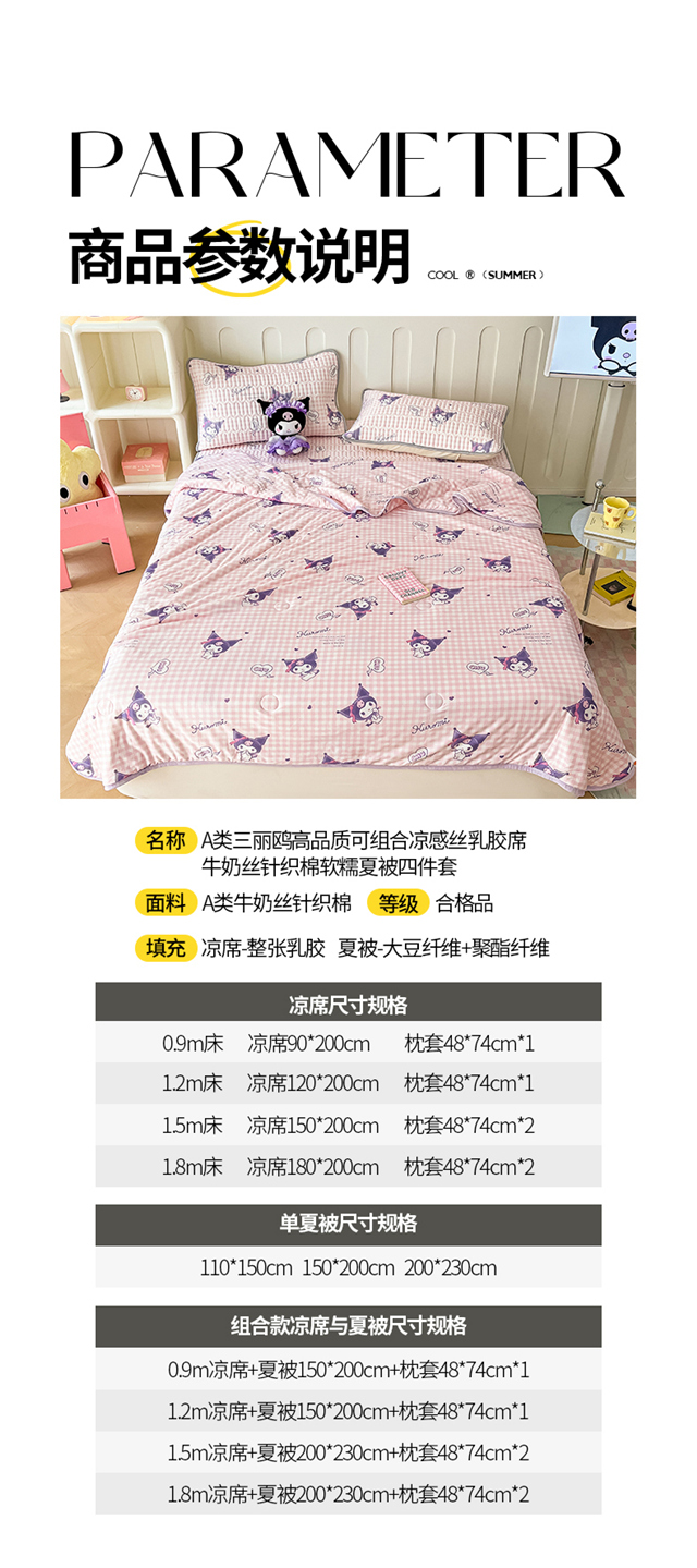 商品名称:(总)金爱家 2024新款A类三丽鸥高品质可组合凉感丝乳胶席牛奶丝针织棉软糯夏被四件套