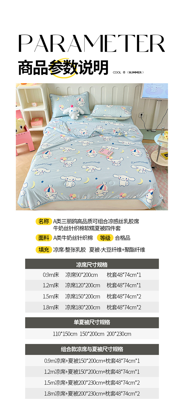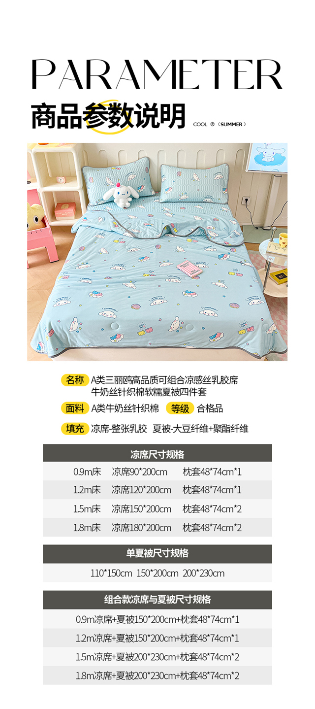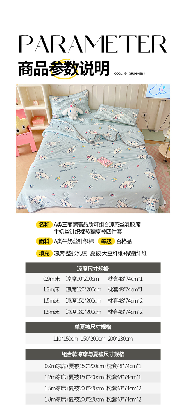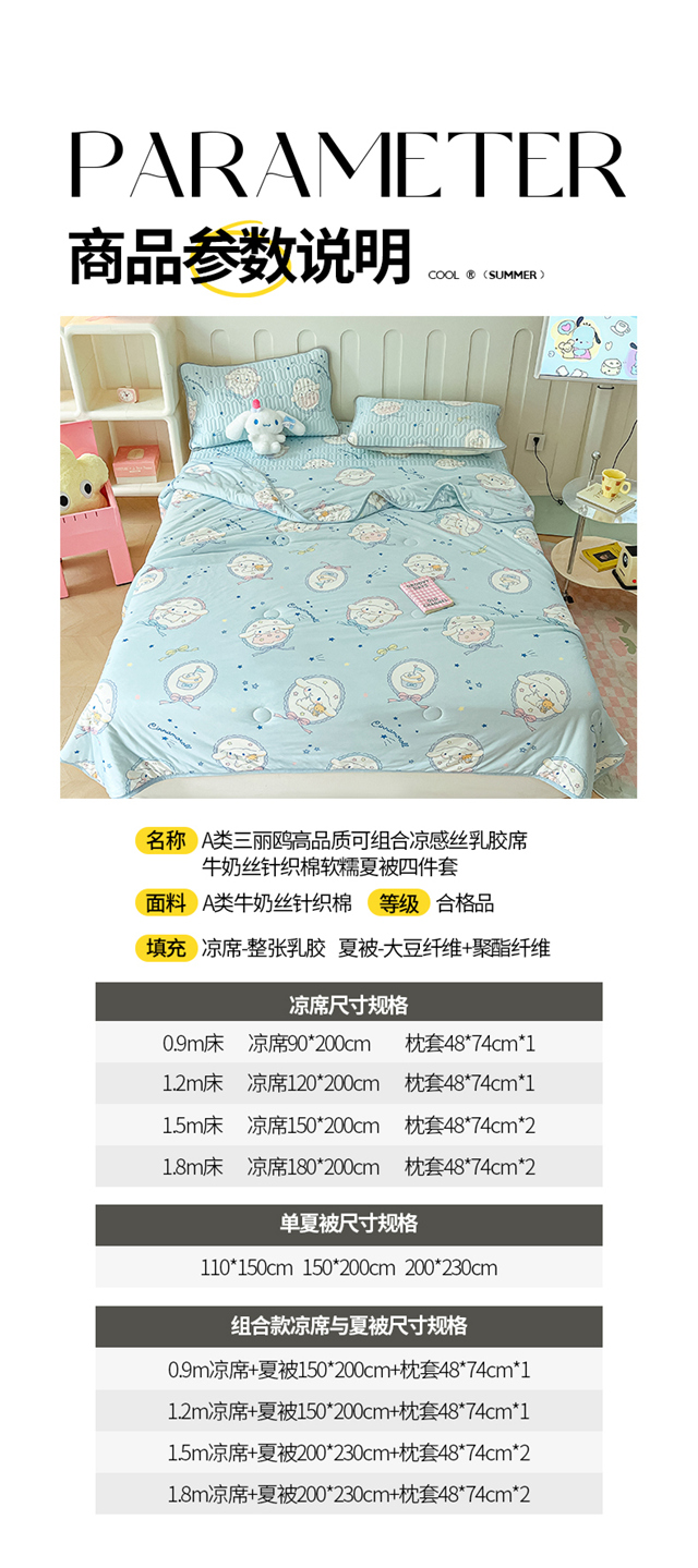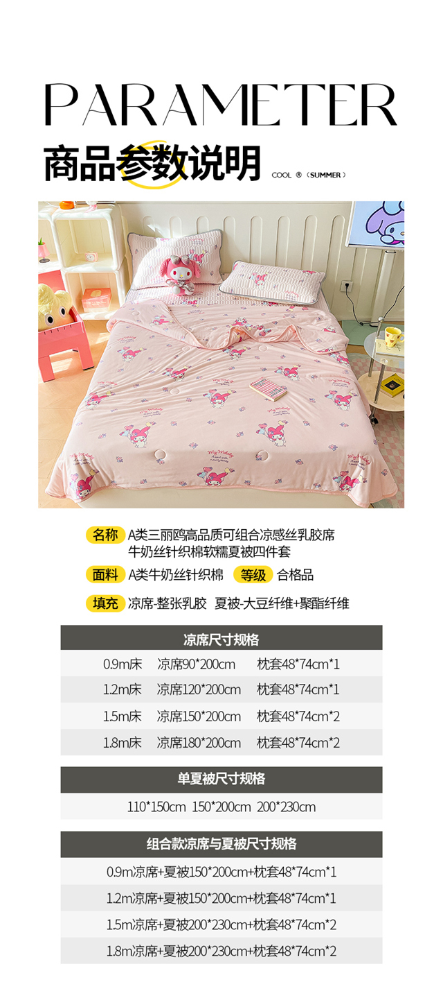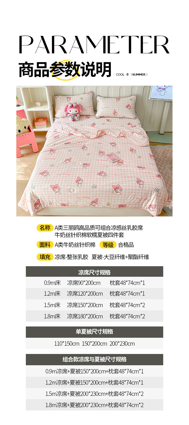 商品名称:(总)金爱家 2024新款A类三丽鸥高品质可组合凉感丝乳胶席牛奶丝针织棉软糯夏被四件套