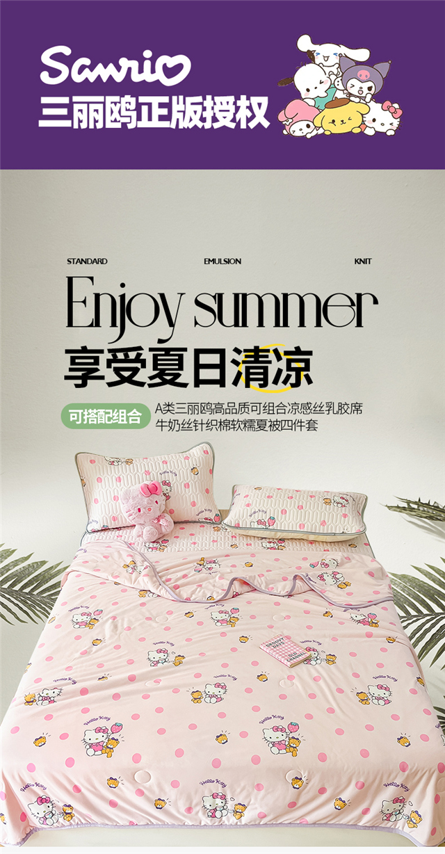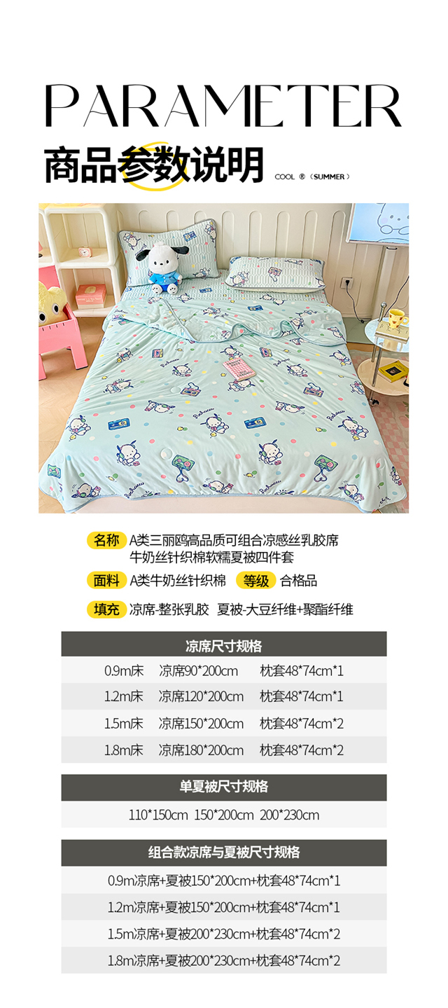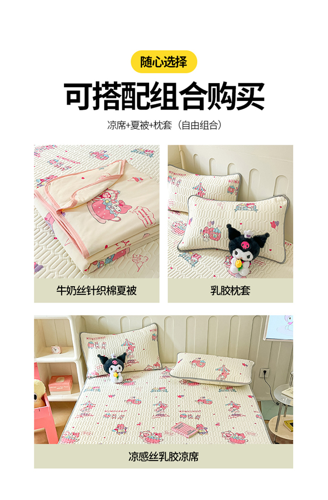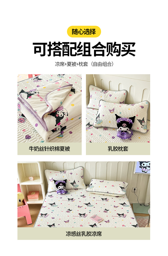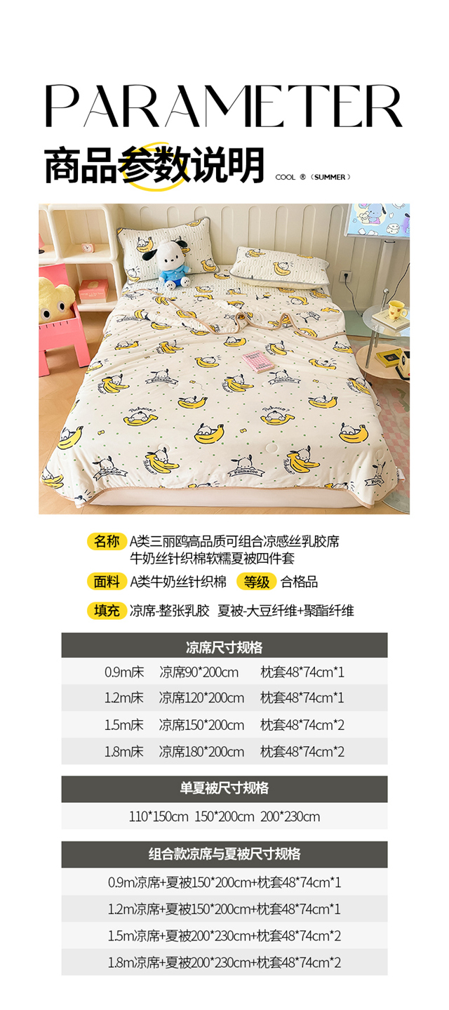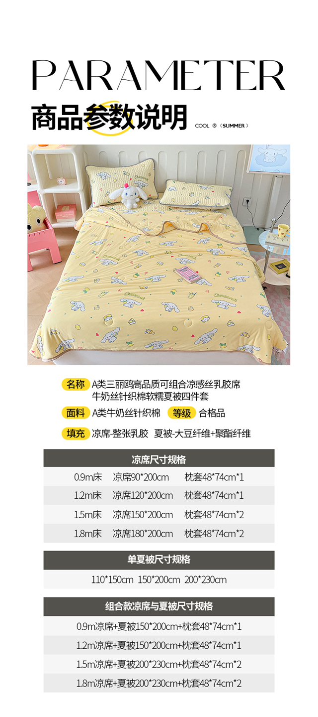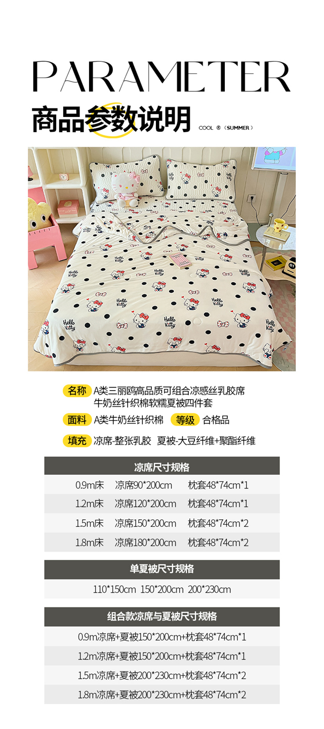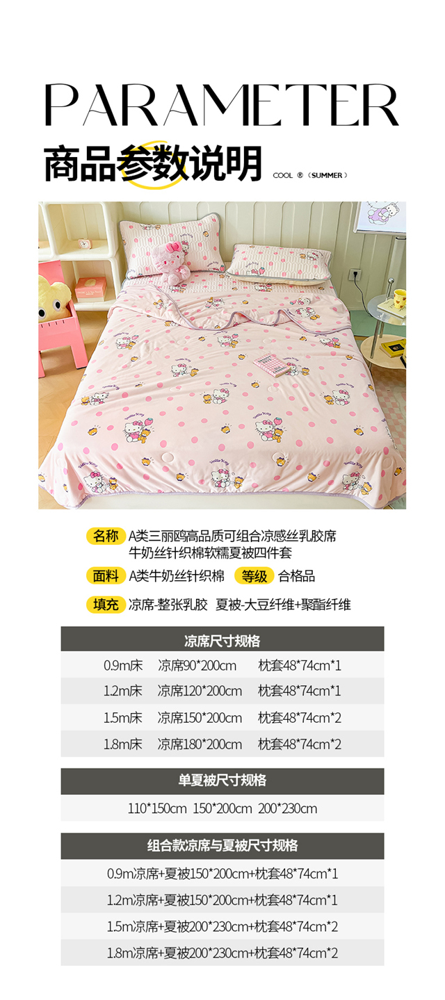 商品名称:(总)金爱家 2024新款A类三丽鸥高品质可组合凉感丝乳胶席牛奶丝针织棉软糯夏被四件套