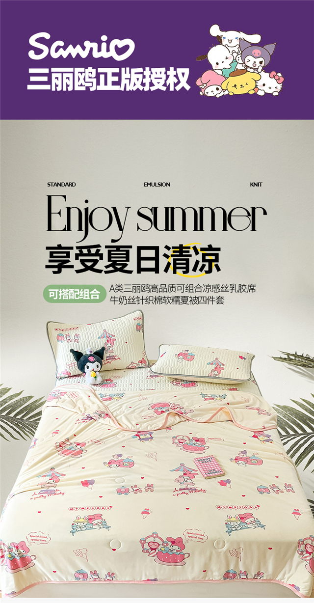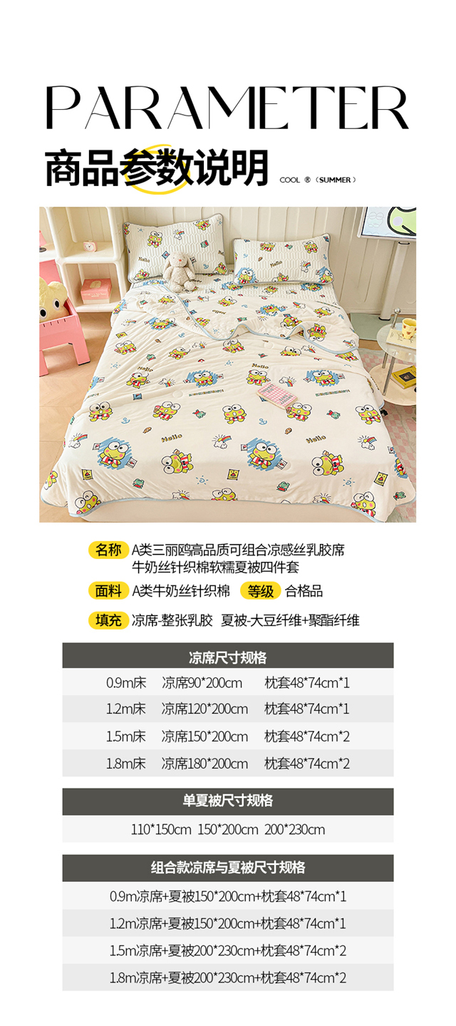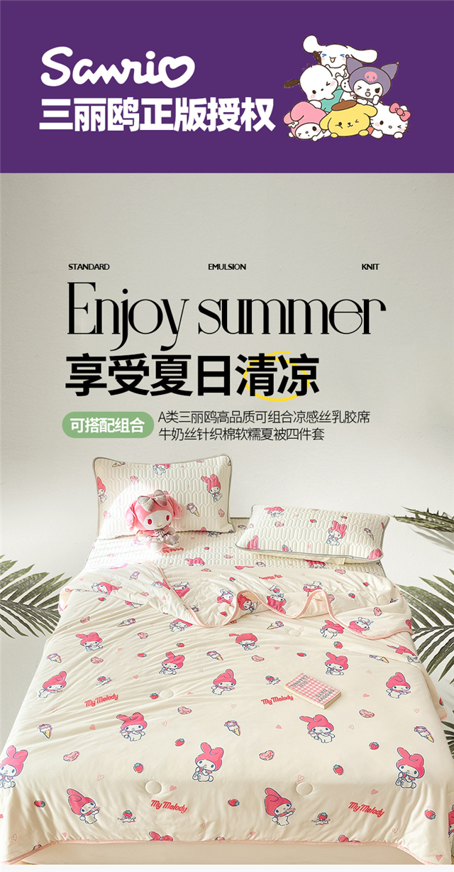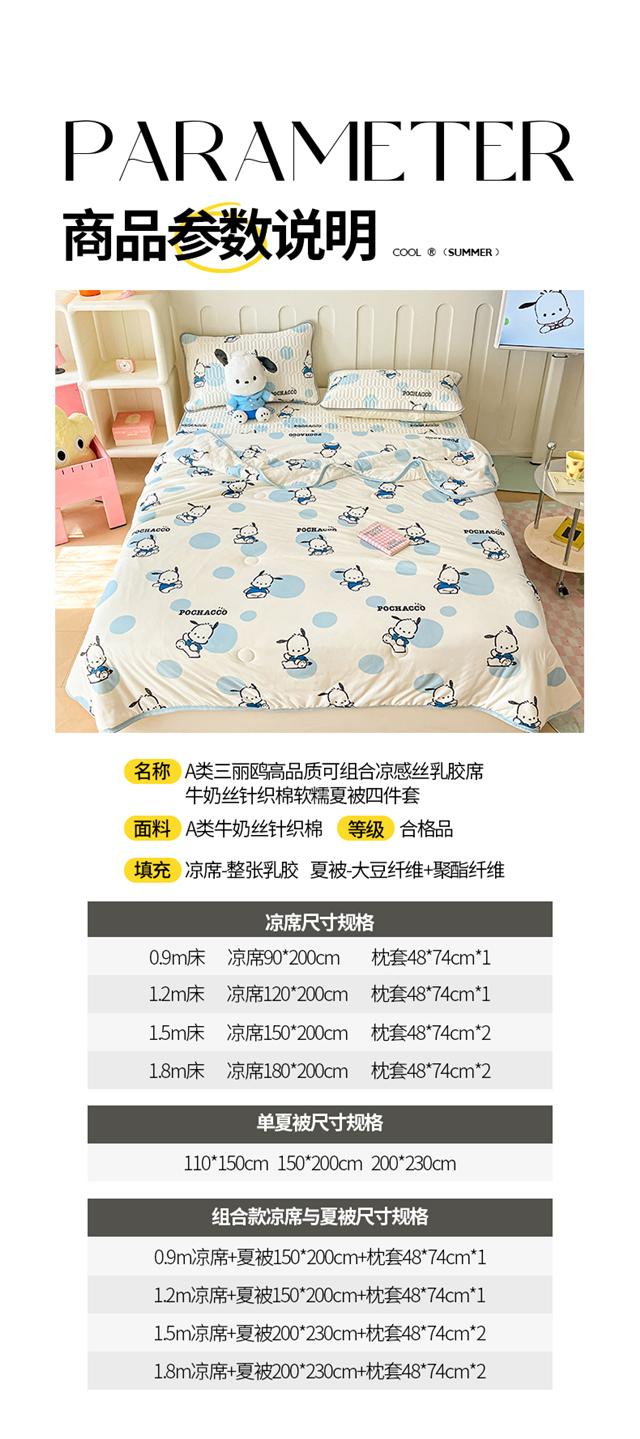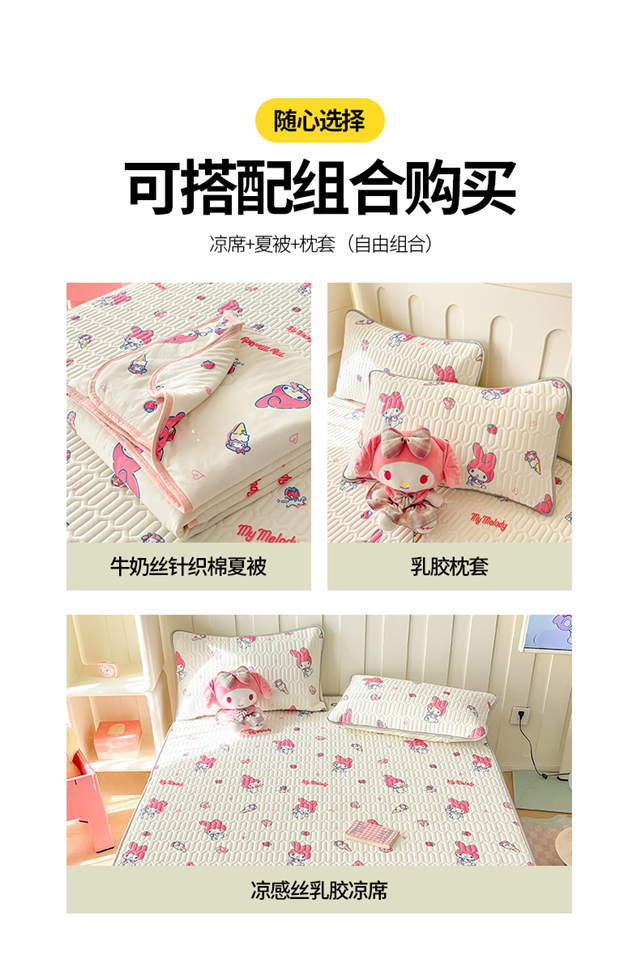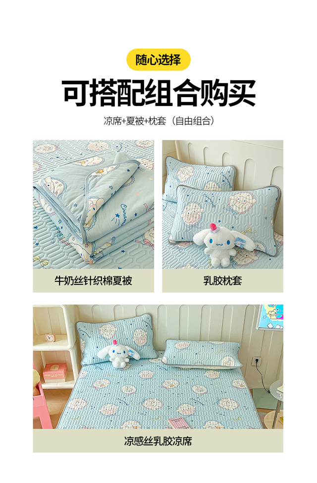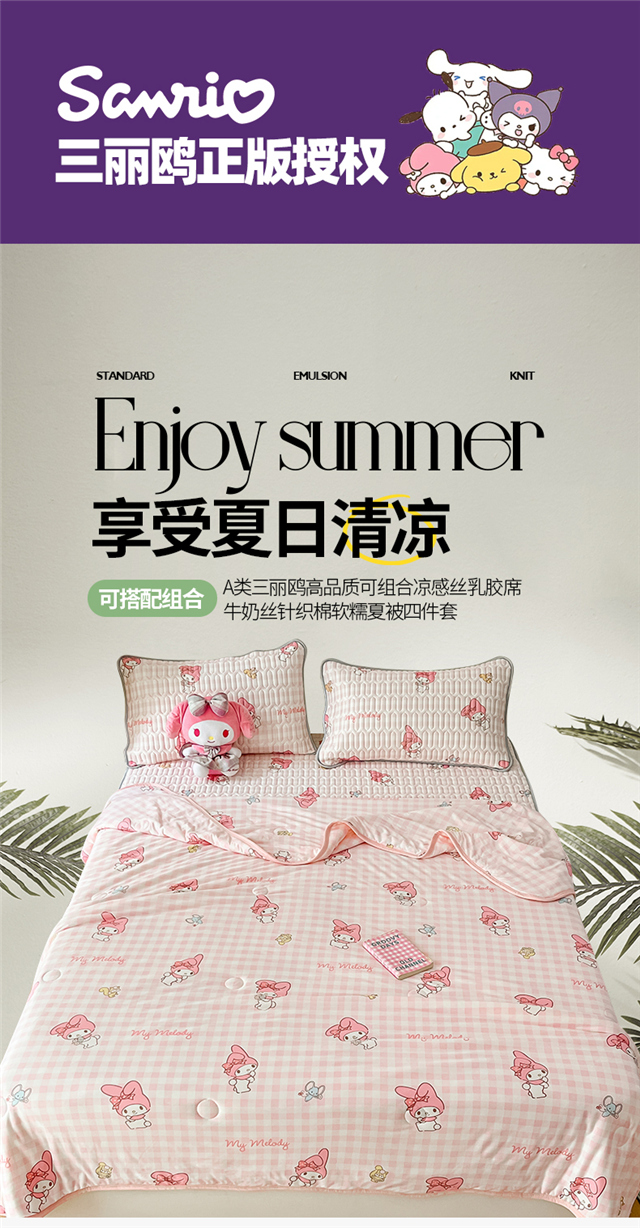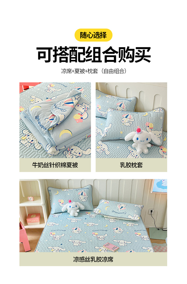 商品名称:(总)金爱家 2024新款A类三丽鸥高品质可组合凉感丝乳胶席牛奶丝针织棉软糯夏被四件套