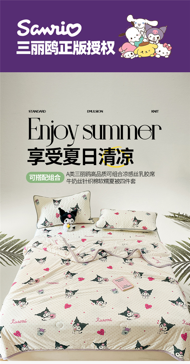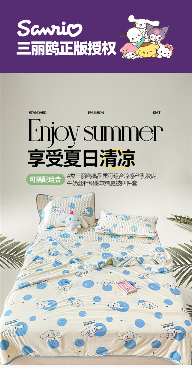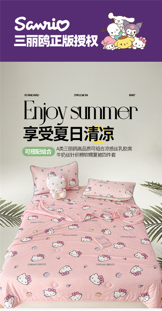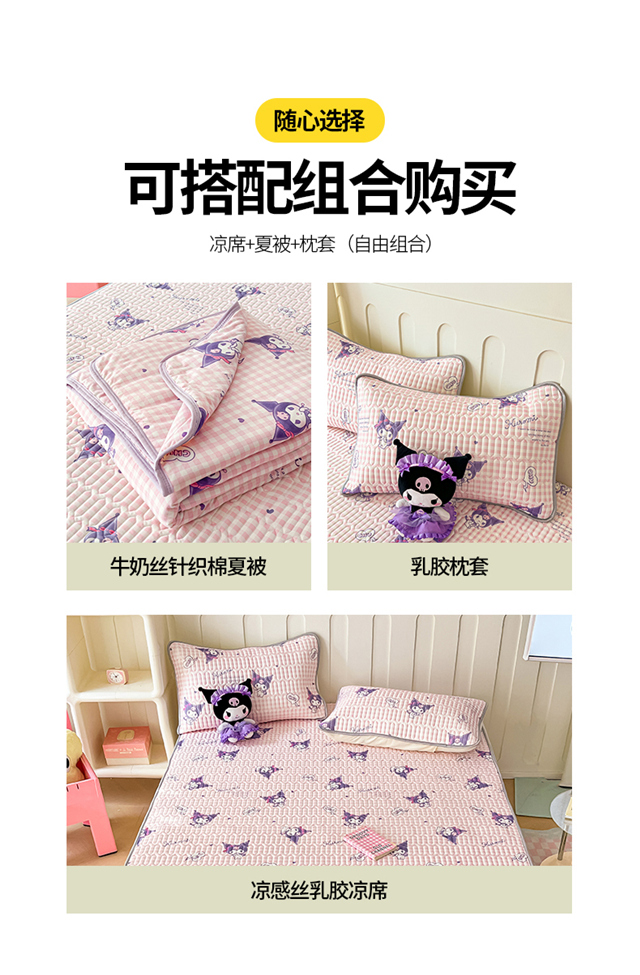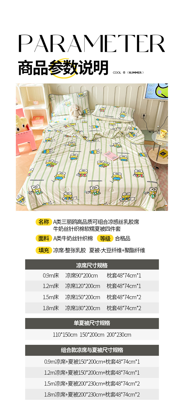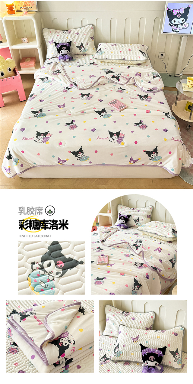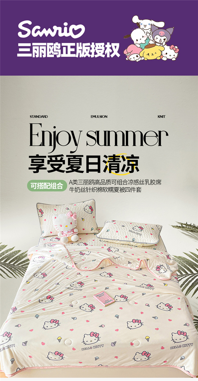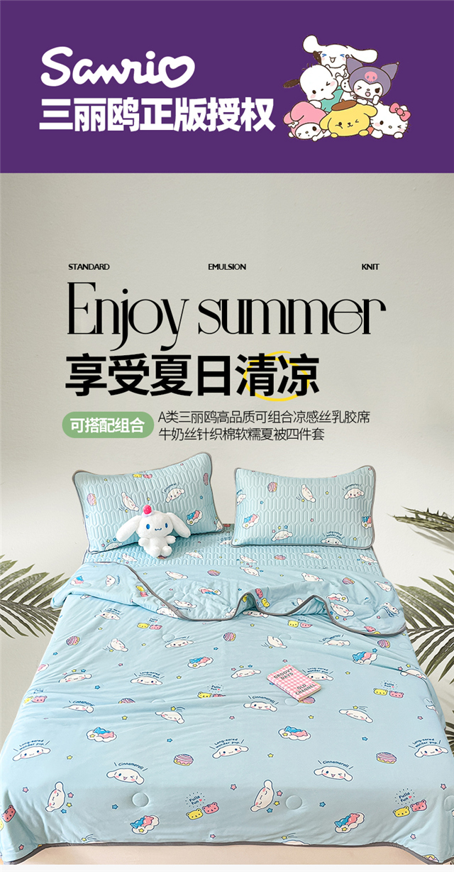 商品名称:(总)金爱家 2024新款A类三丽鸥高品质可组合凉感丝乳胶席牛奶丝针织棉软糯夏被四件套