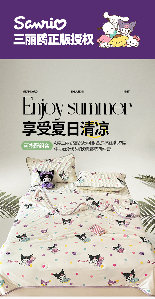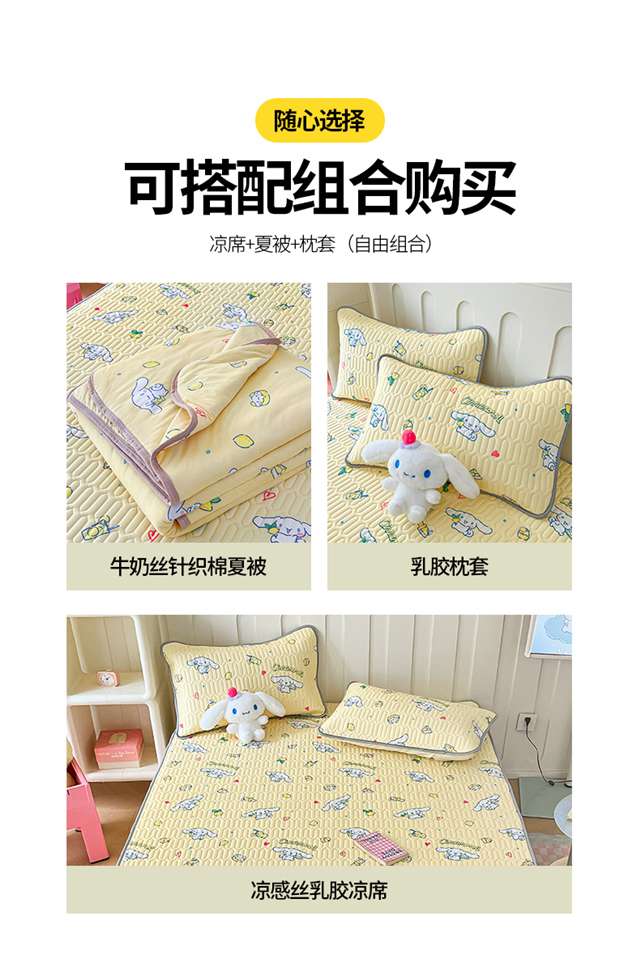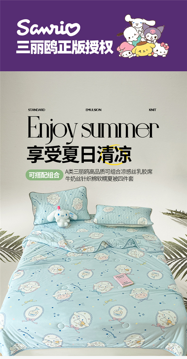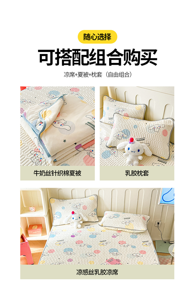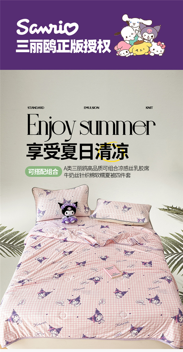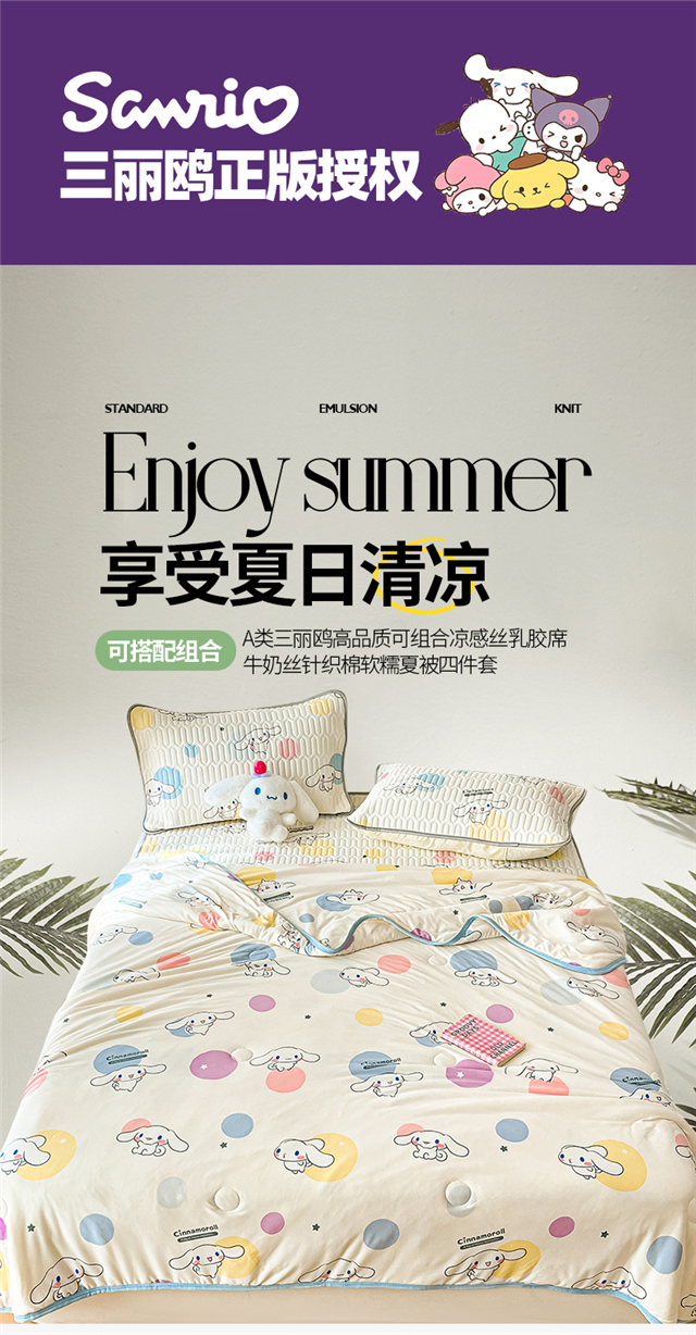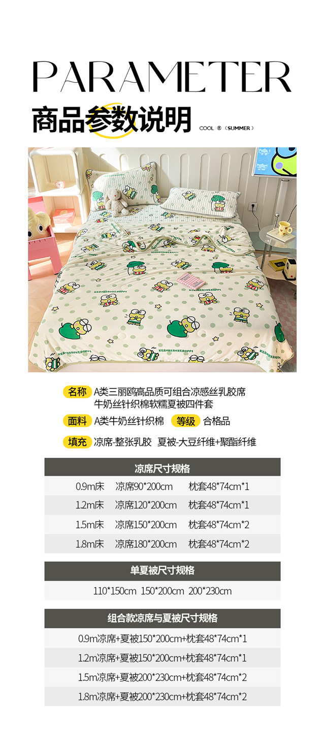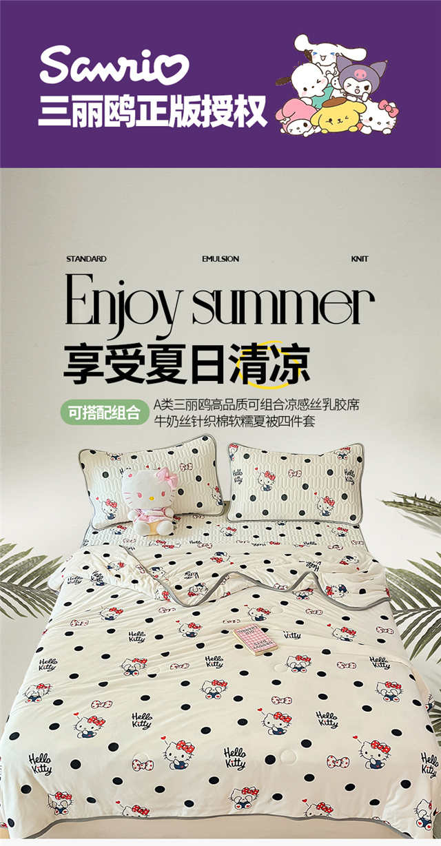 商品名称:(总)金爱家 2024新款A类三丽鸥高品质可组合凉感丝乳胶席牛奶丝针织棉软糯夏被四件套