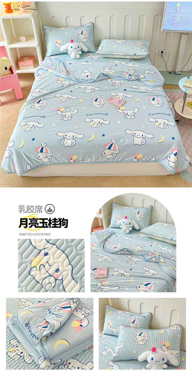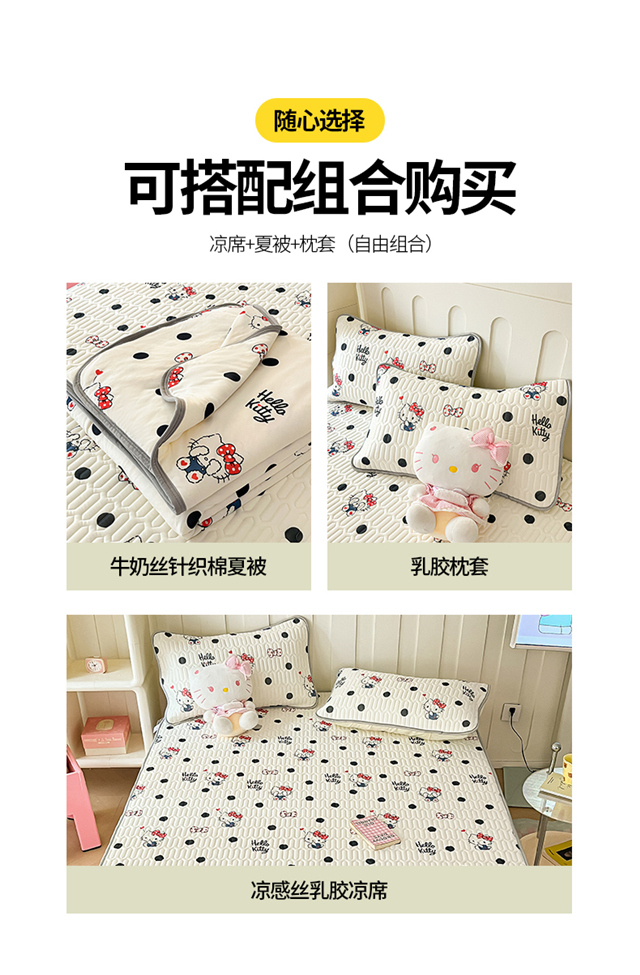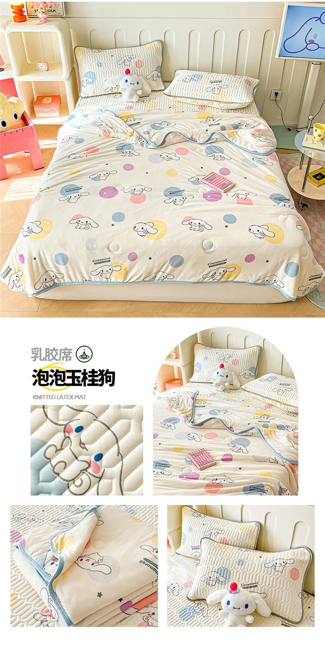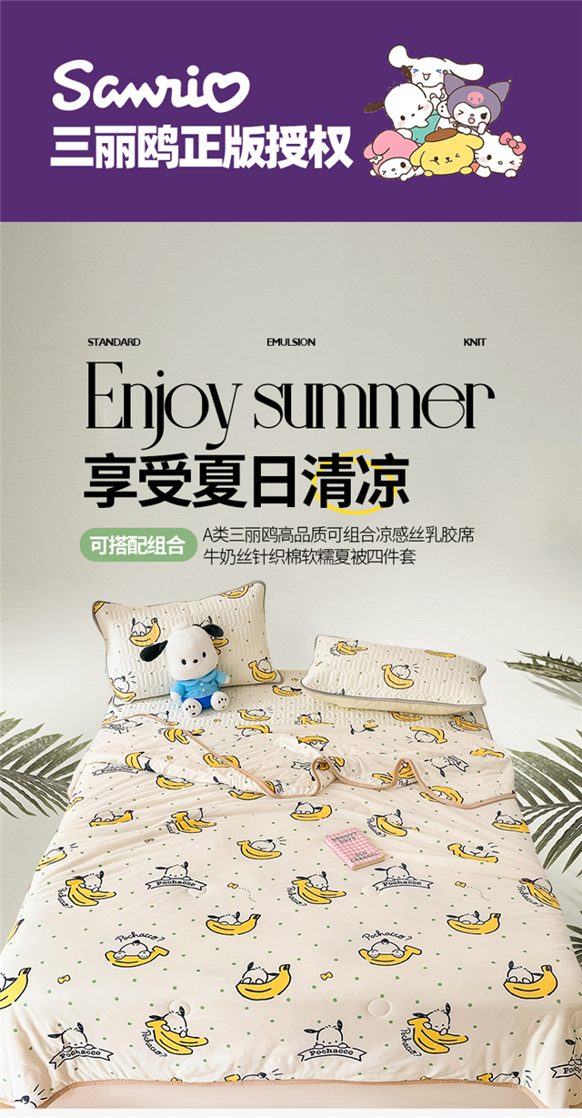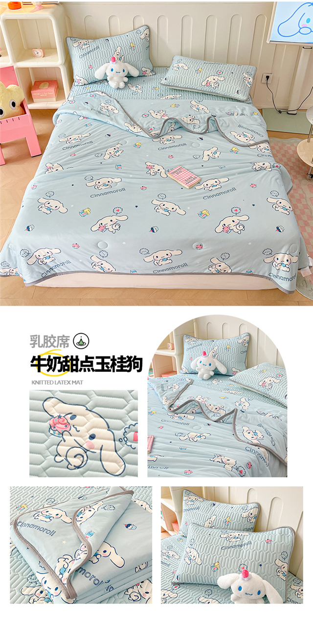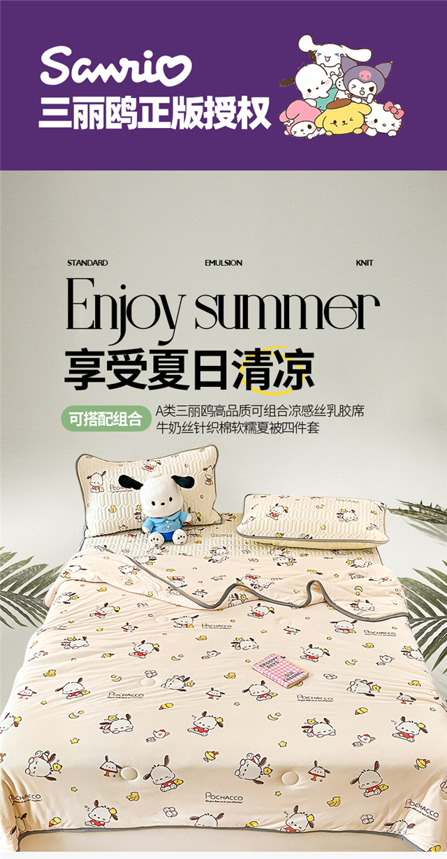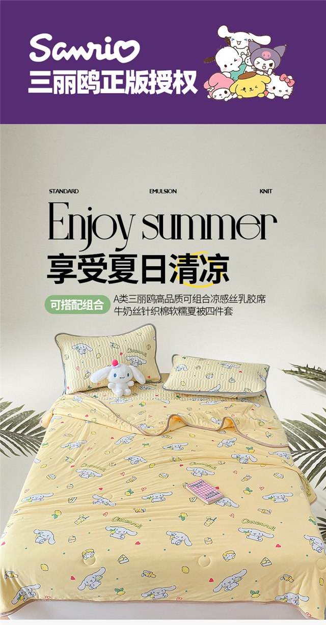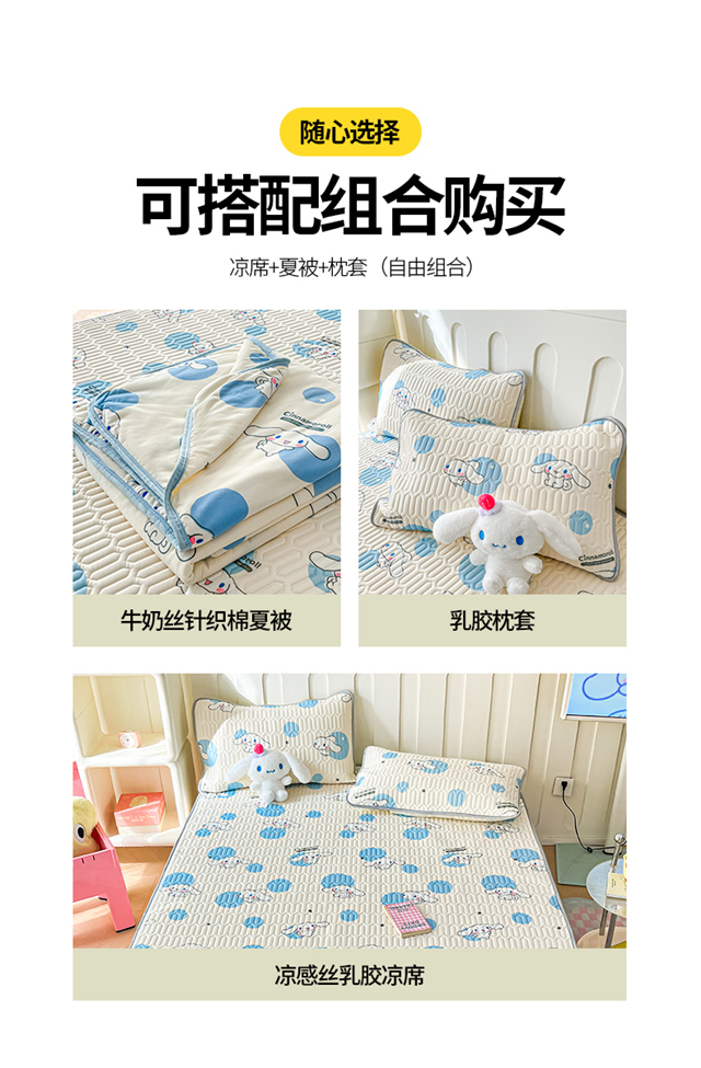 商品名称:(总)金爱家 2024新款A类三丽鸥高品质可组合凉感丝乳胶席牛奶丝针织棉软糯夏被四件套