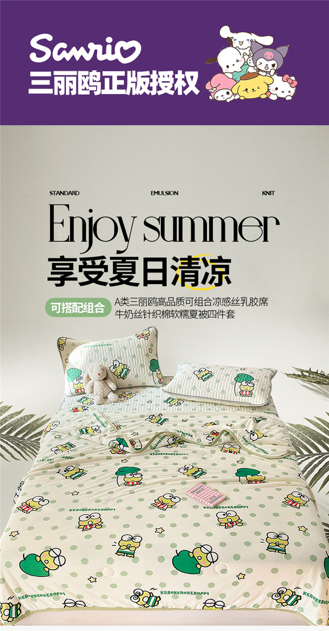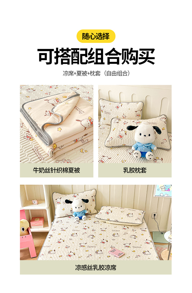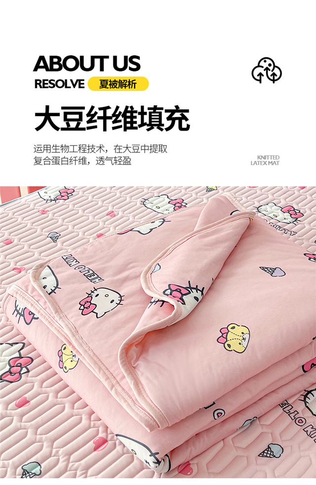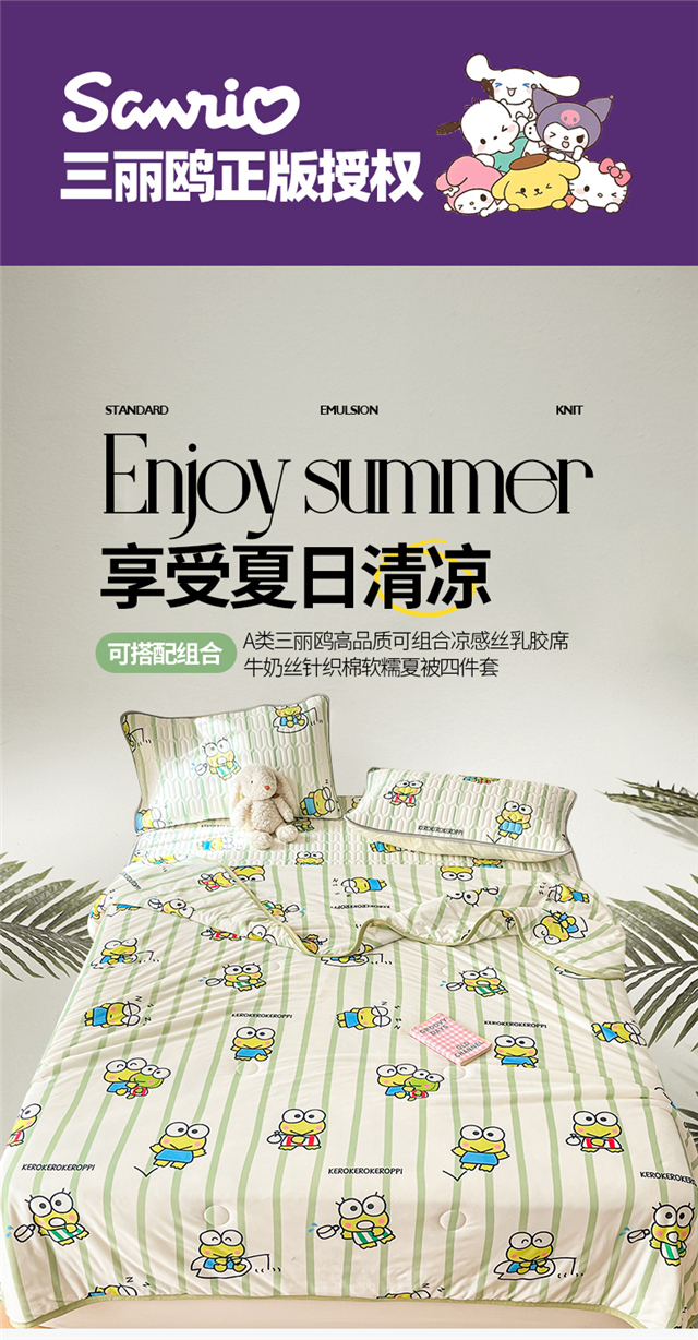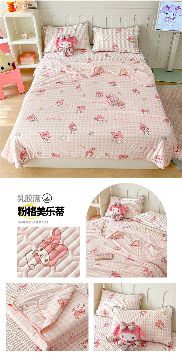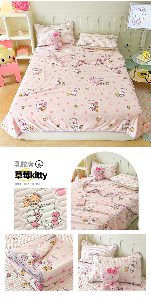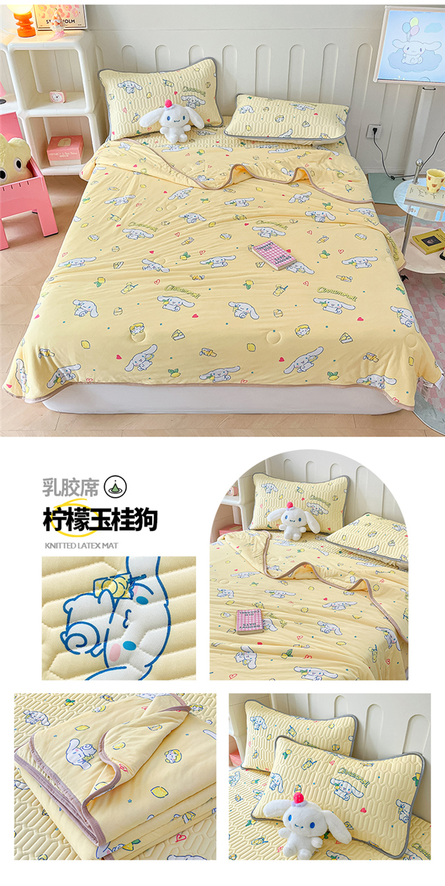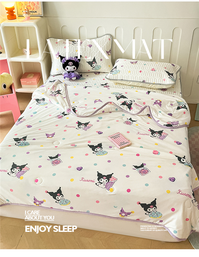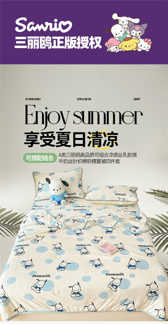 商品名称:(总)金爱家 2024新款A类三丽鸥高品质可组合凉感丝乳胶席牛奶丝针织棉软糯夏被四件套