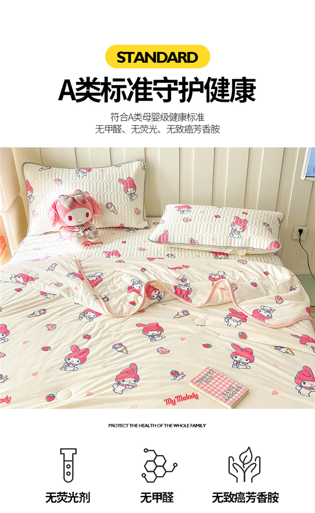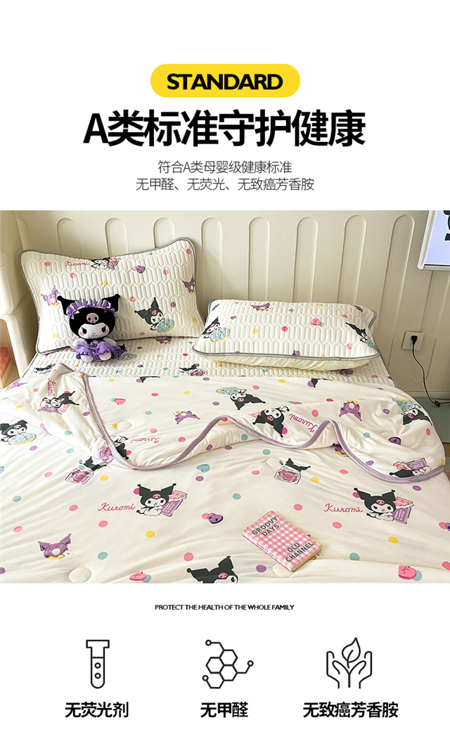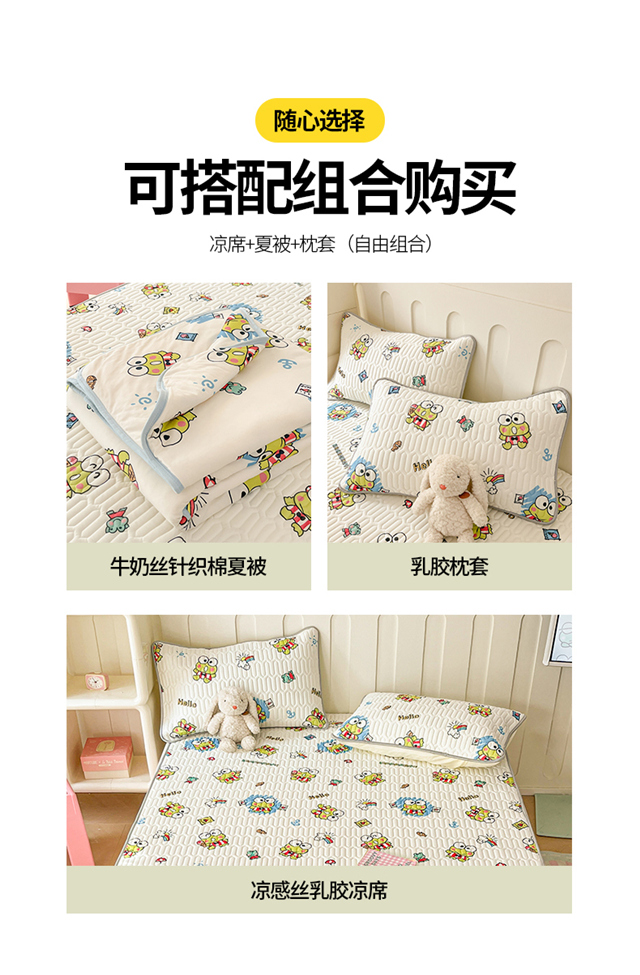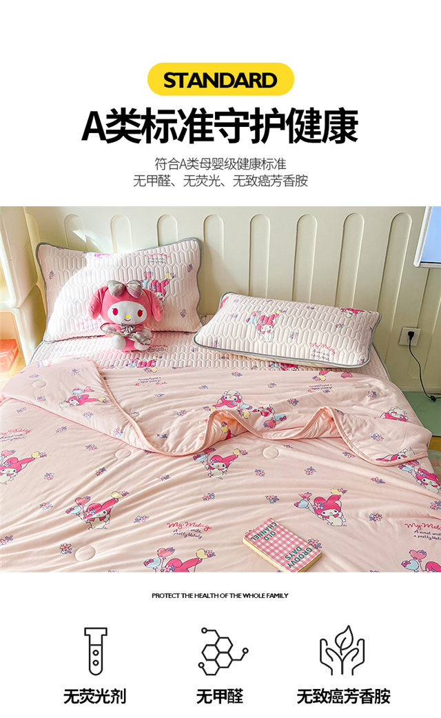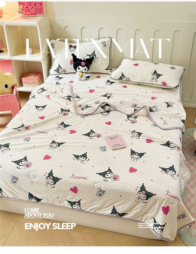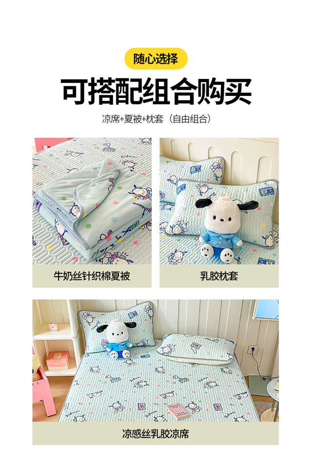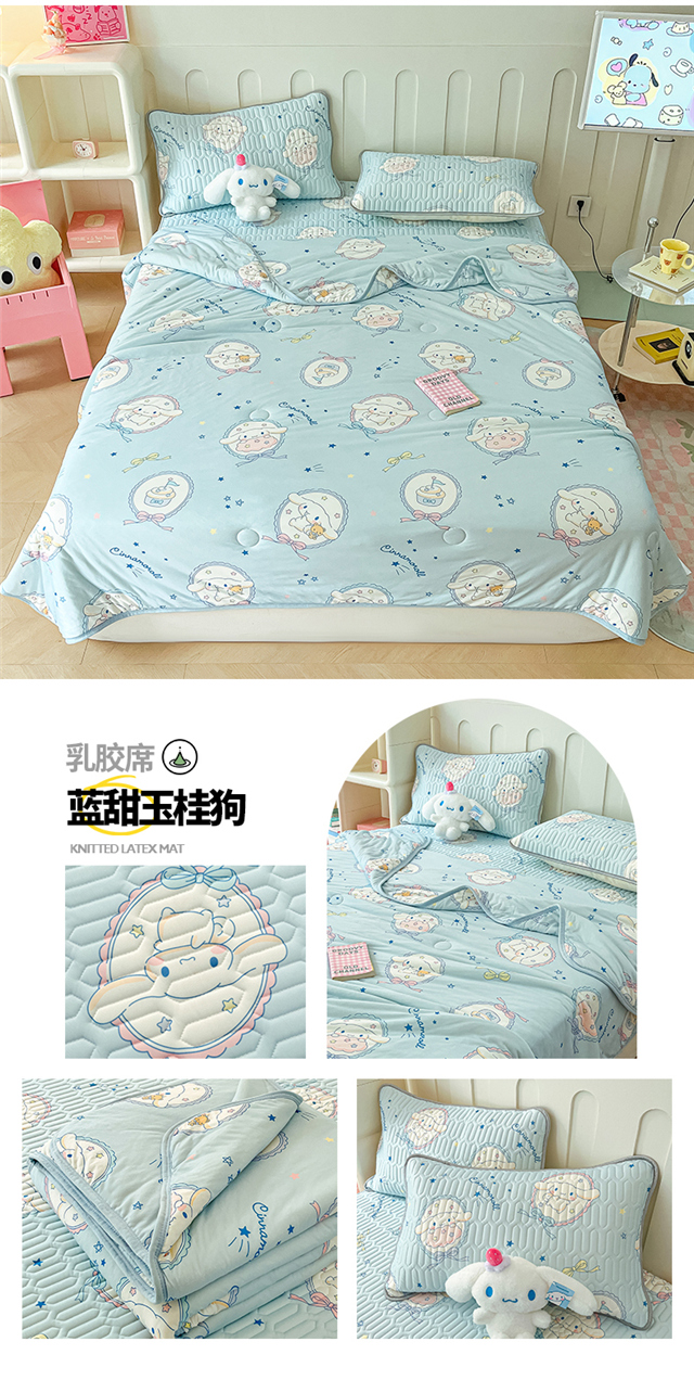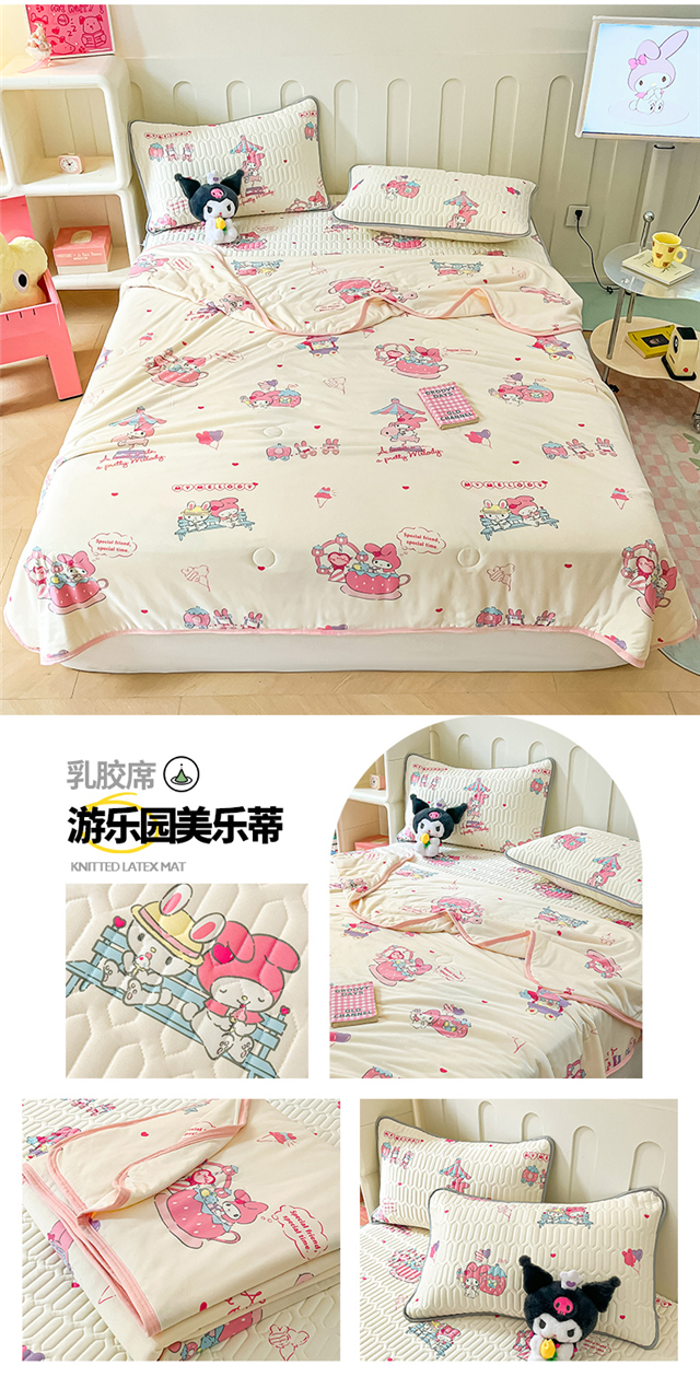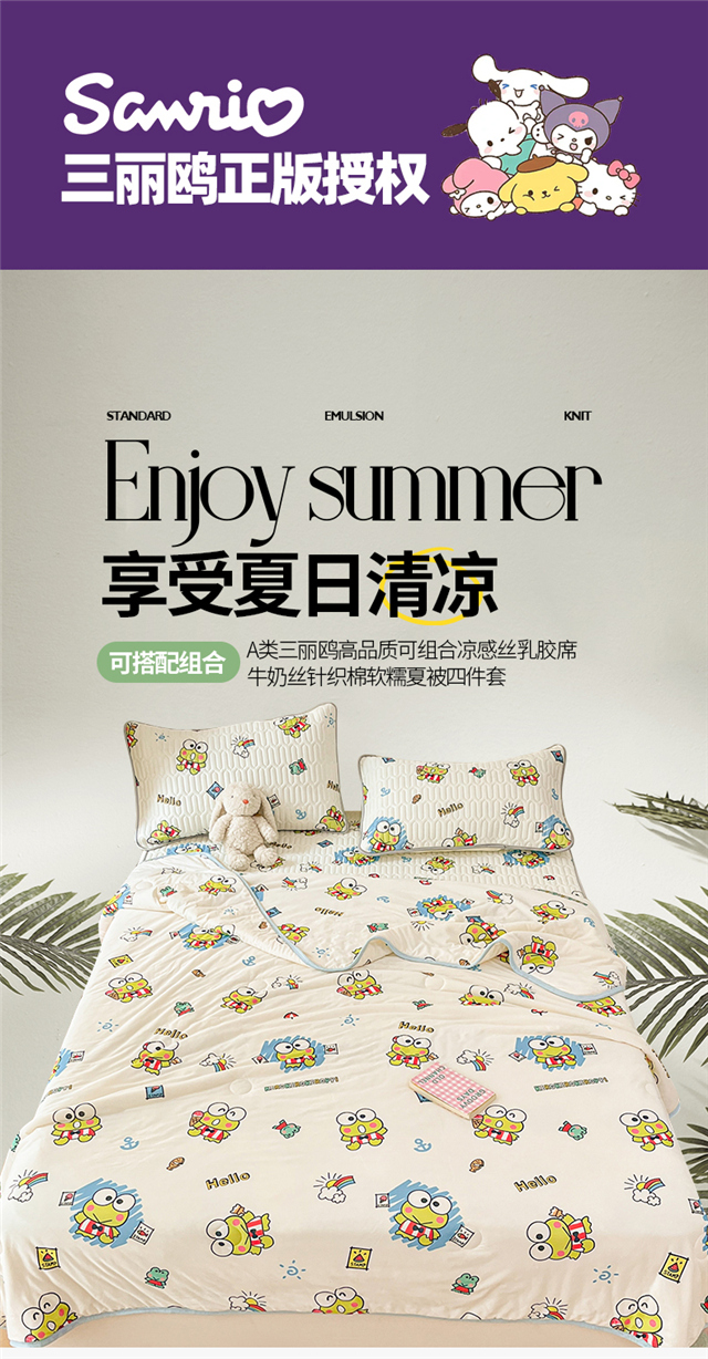 商品名称:(总)金爱家 2024新款A类三丽鸥高品质可组合凉感丝乳胶席牛奶丝针织棉软糯夏被四件套