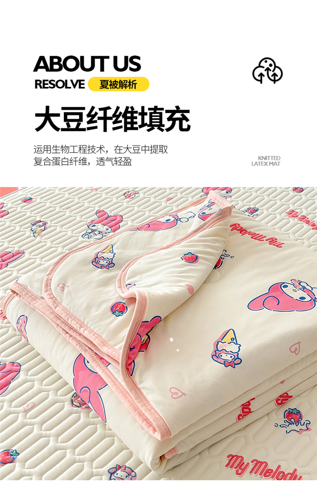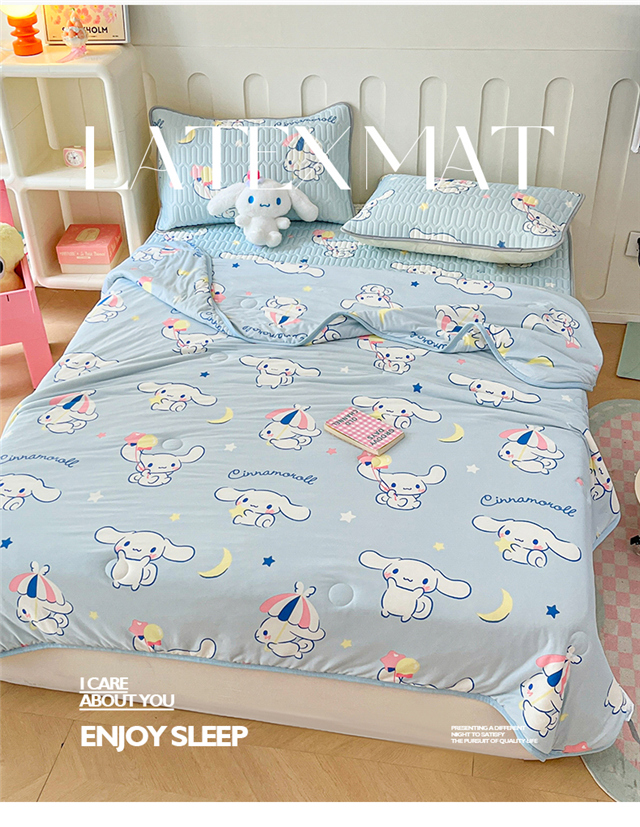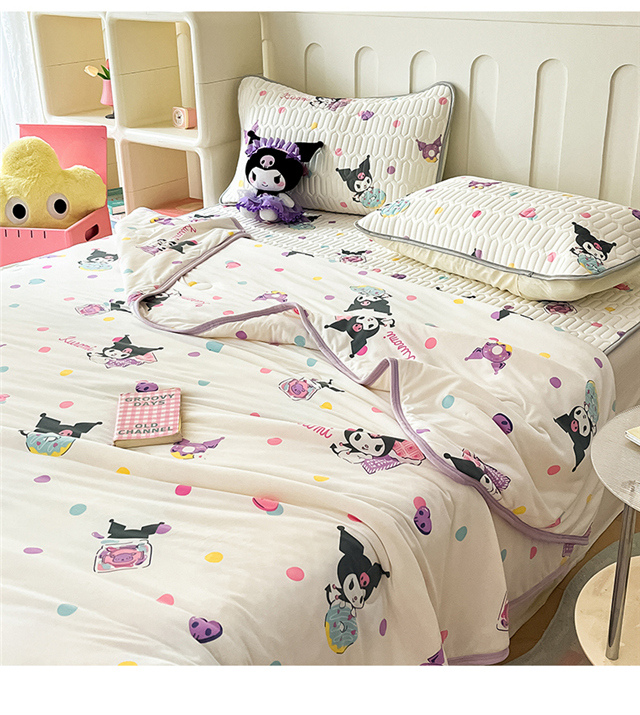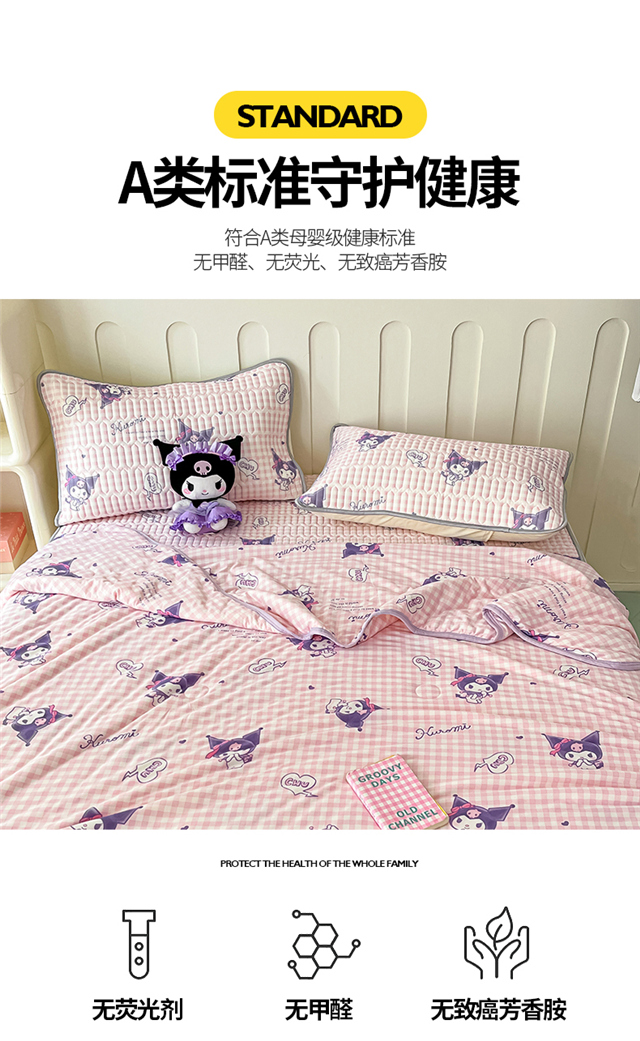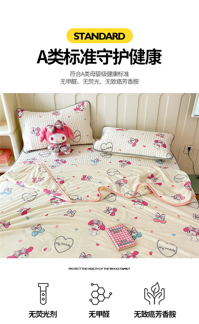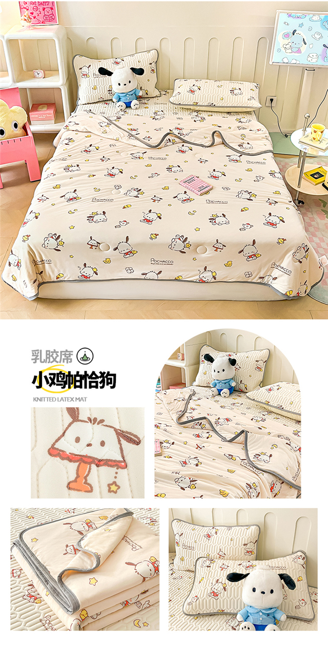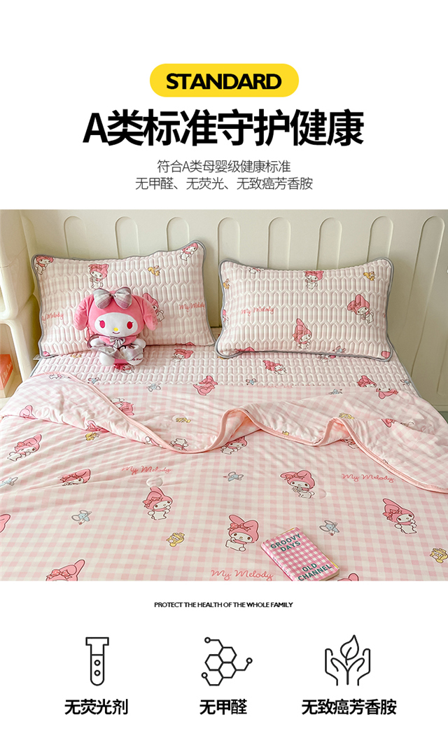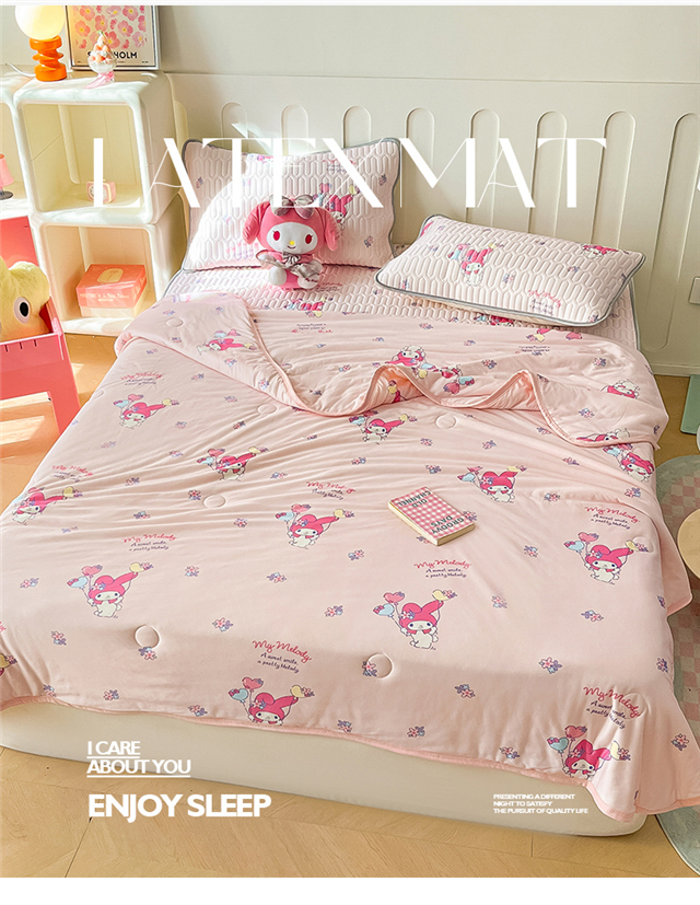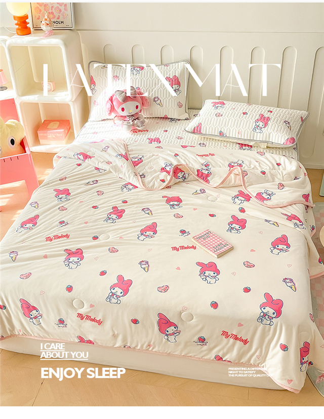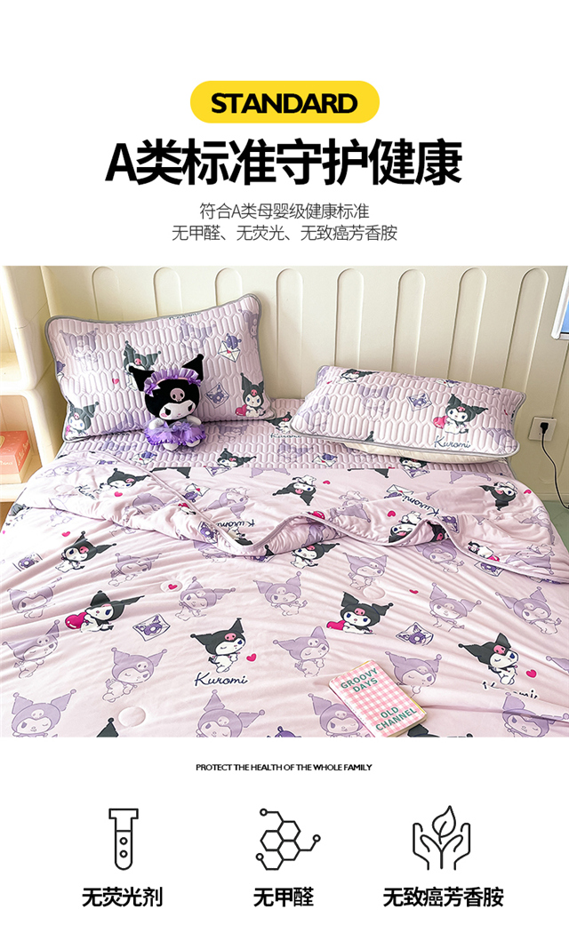 商品名称:(总)金爱家 2024新款A类三丽鸥高品质可组合凉感丝乳胶席牛奶丝针织棉软糯夏被四件套