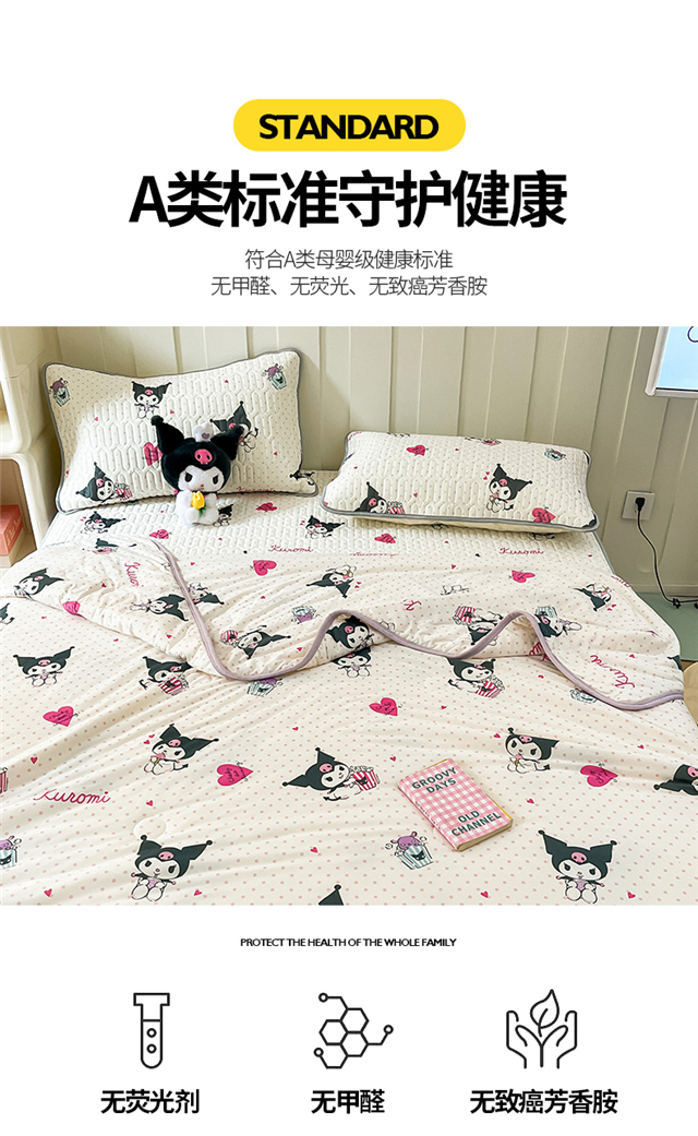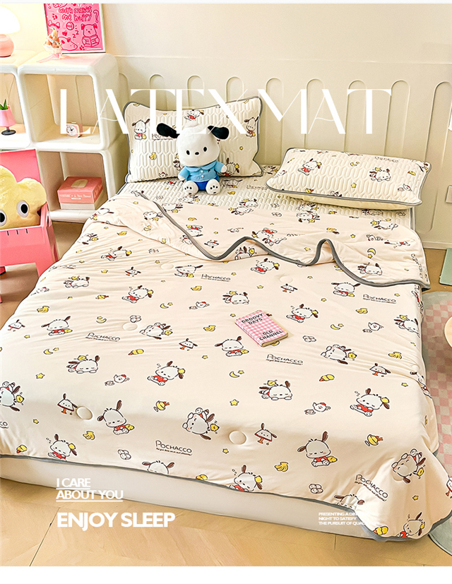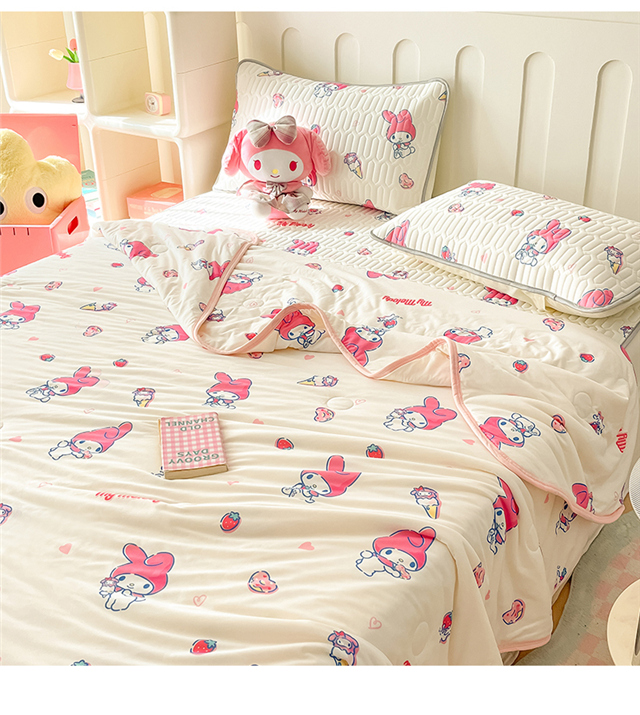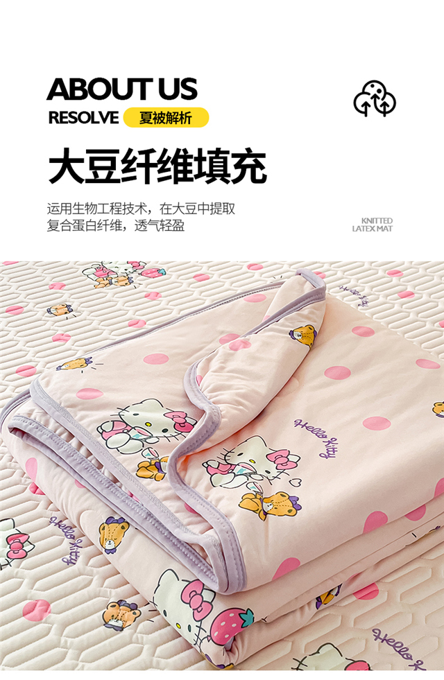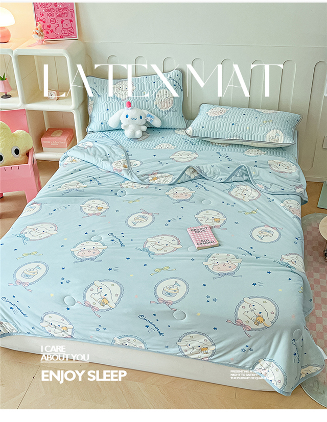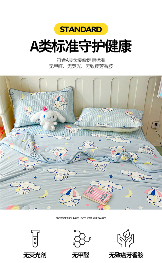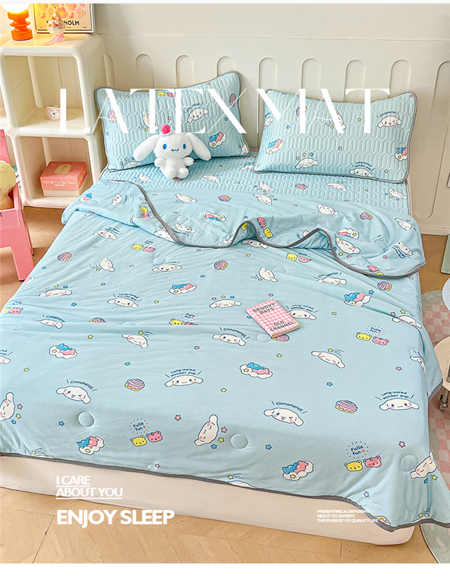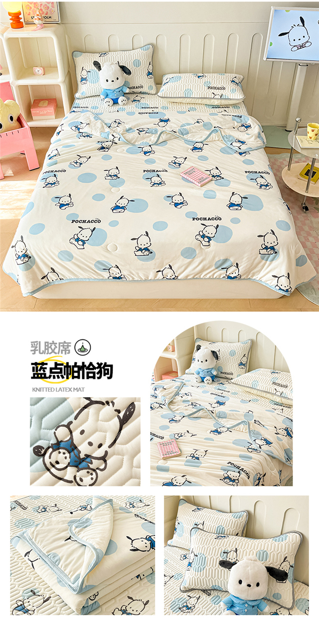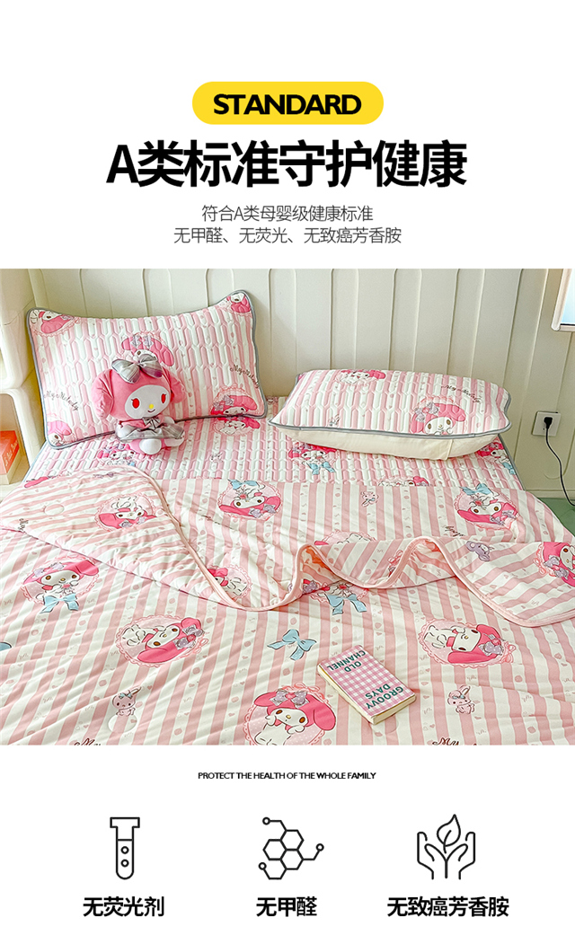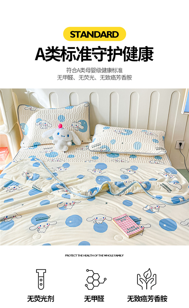 商品名称:(总)金爱家 2024新款A类三丽鸥高品质可组合凉感丝乳胶席牛奶丝针织棉软糯夏被四件套