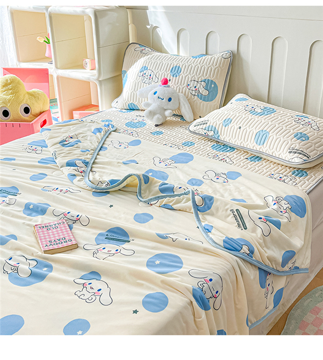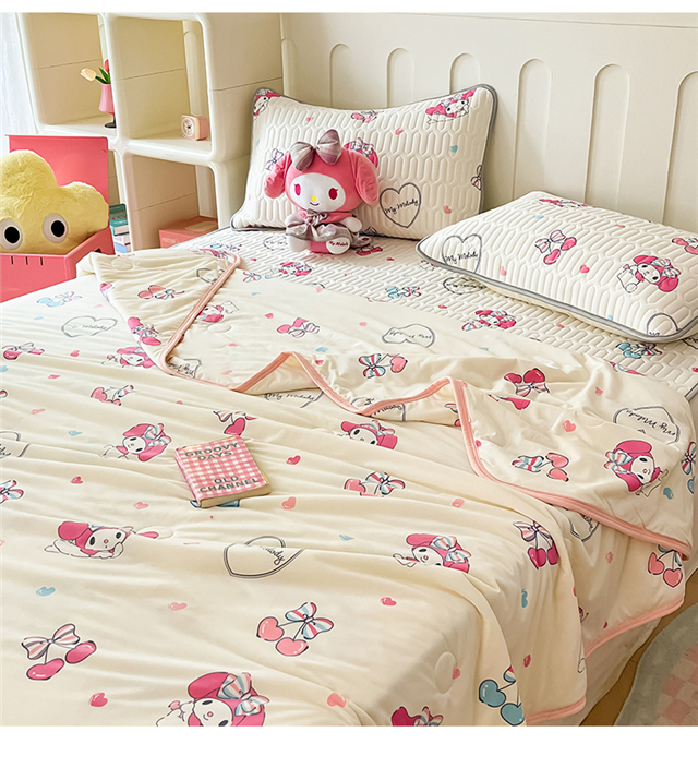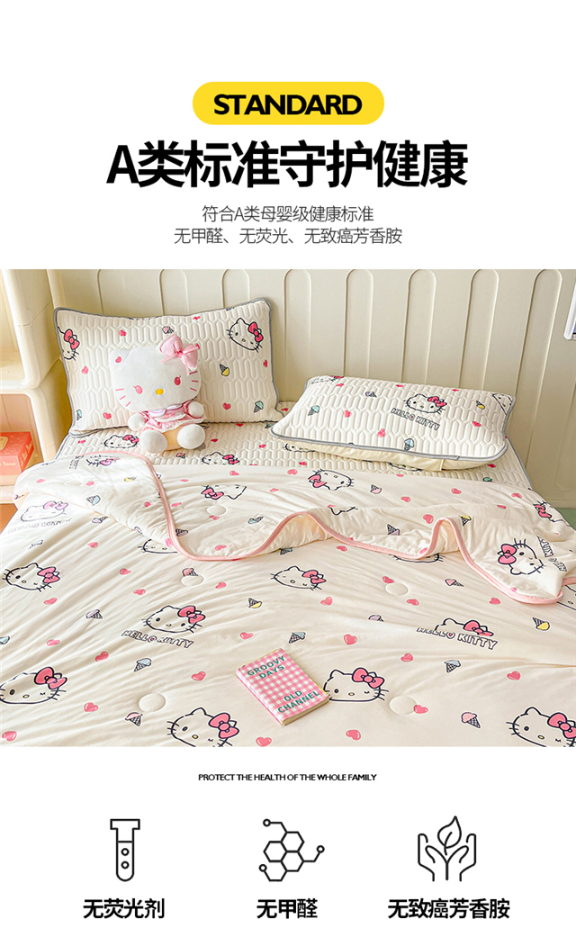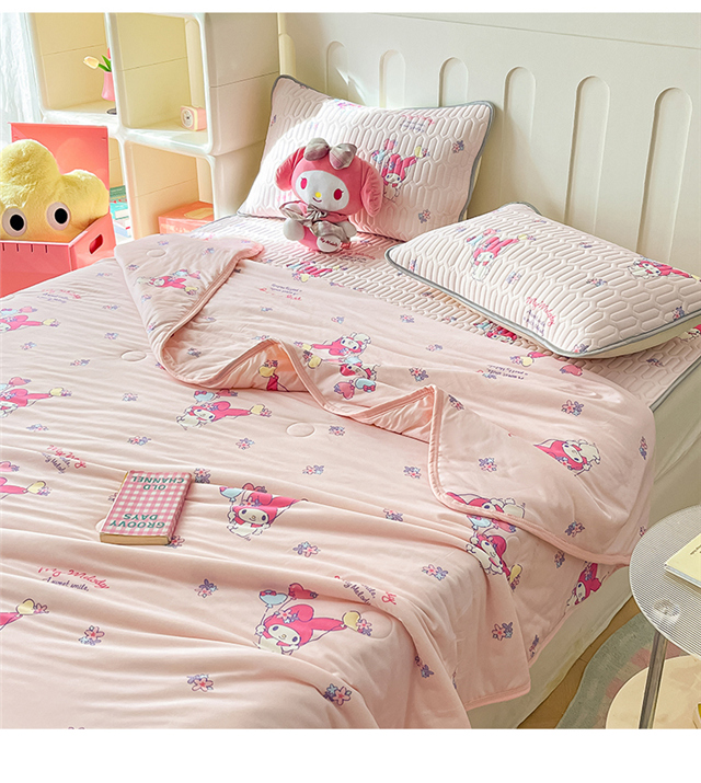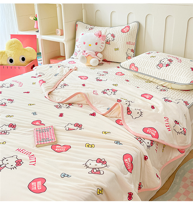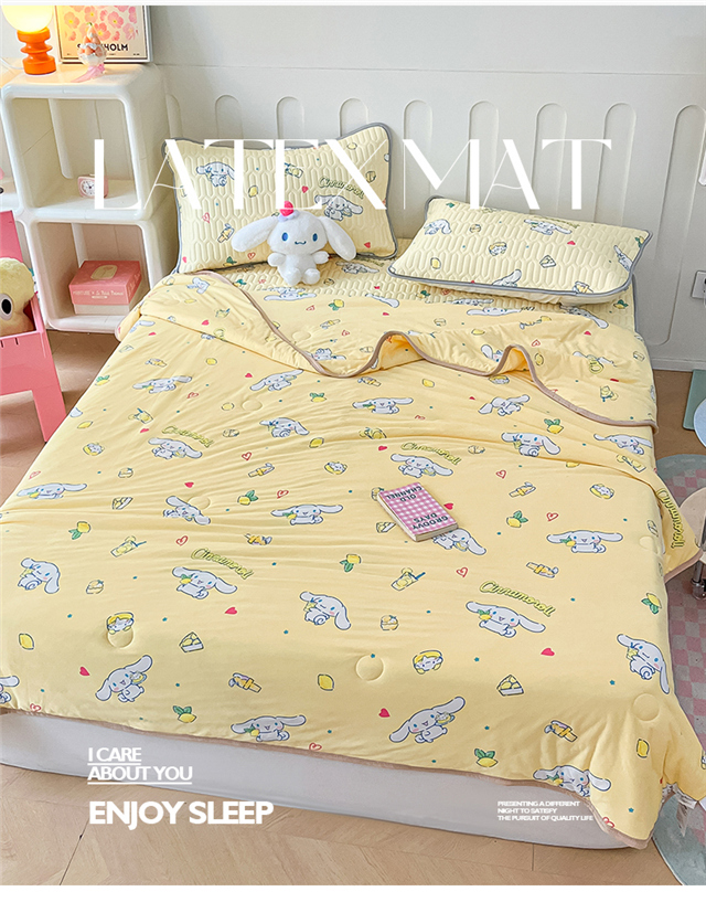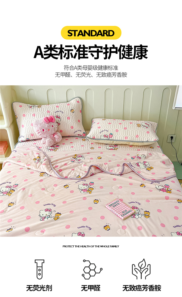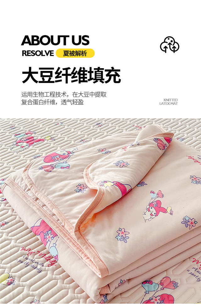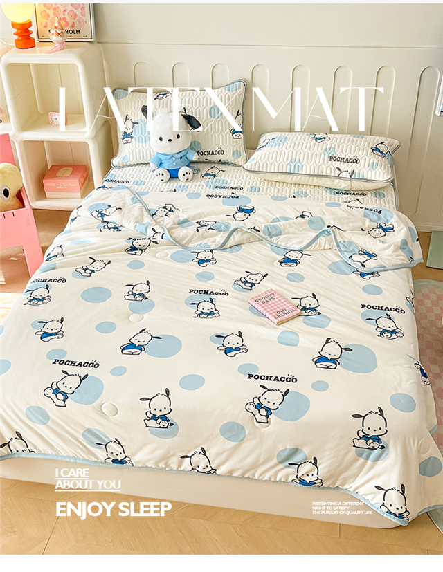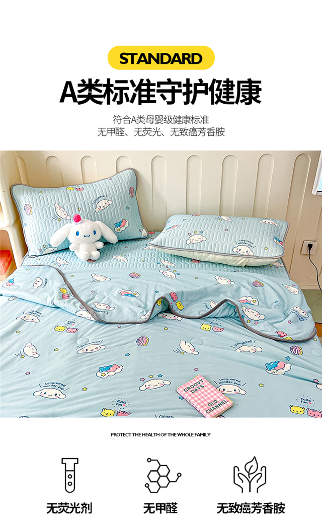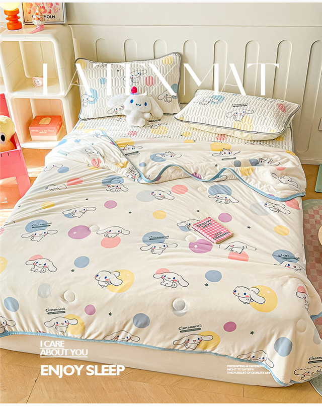 商品名称:(总)金爱家 2024新款A类三丽鸥高品质可组合凉感丝乳胶席牛奶丝针织棉软糯夏被四件套