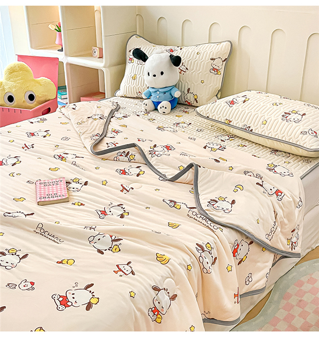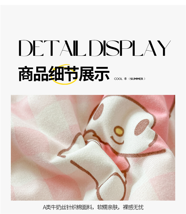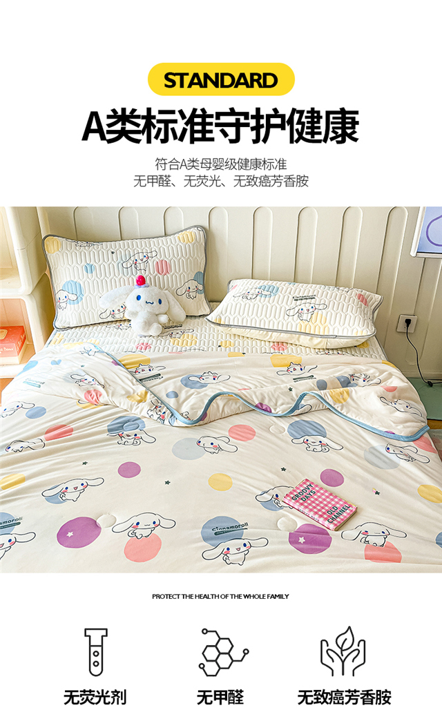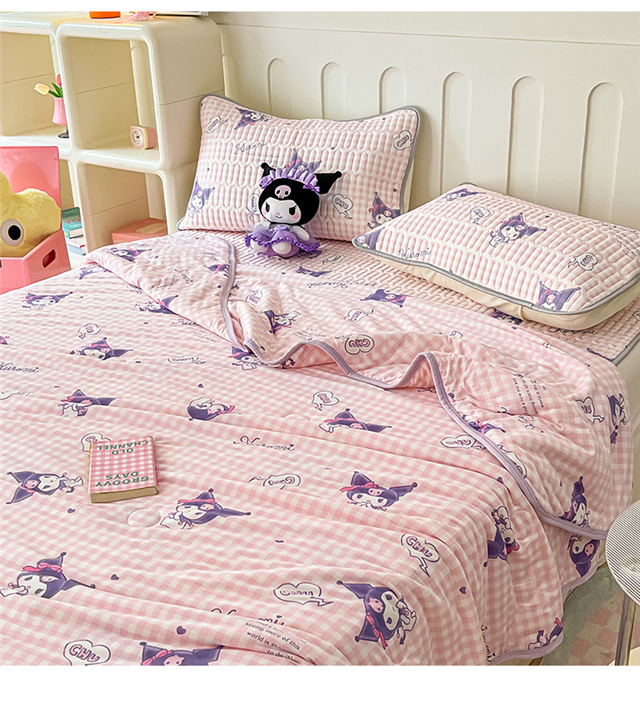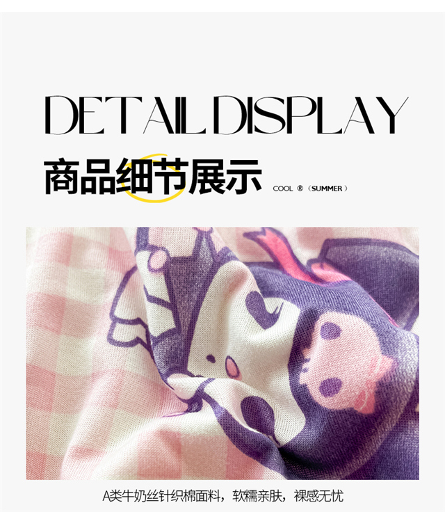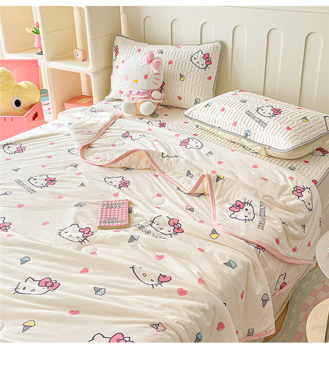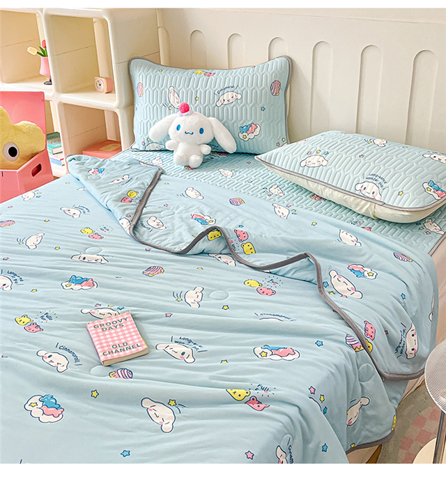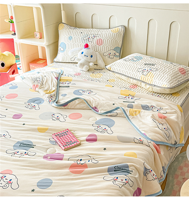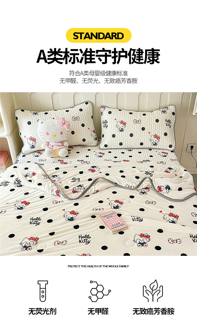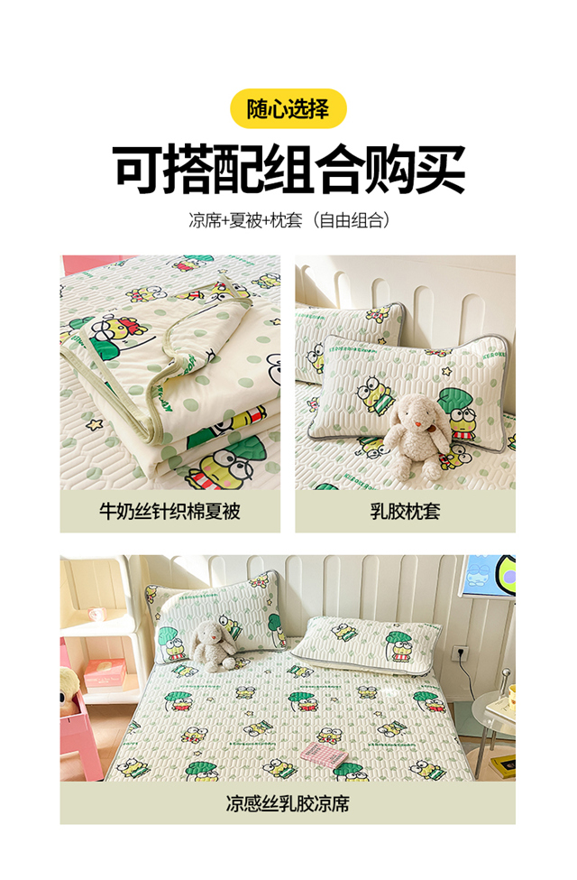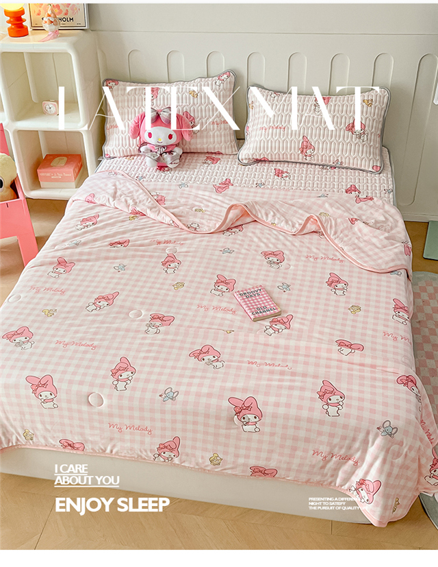 商品名称:(总)金爱家 2024新款A类三丽鸥高品质可组合凉感丝乳胶席牛奶丝针织棉软糯夏被四件套