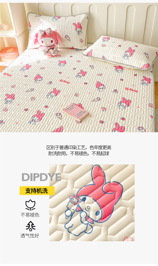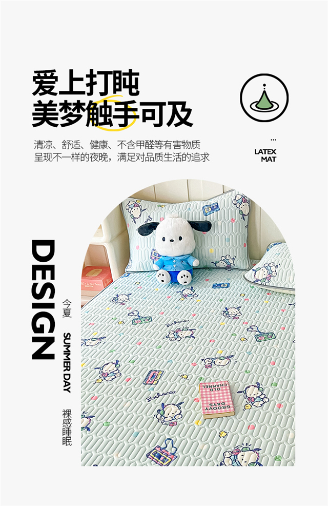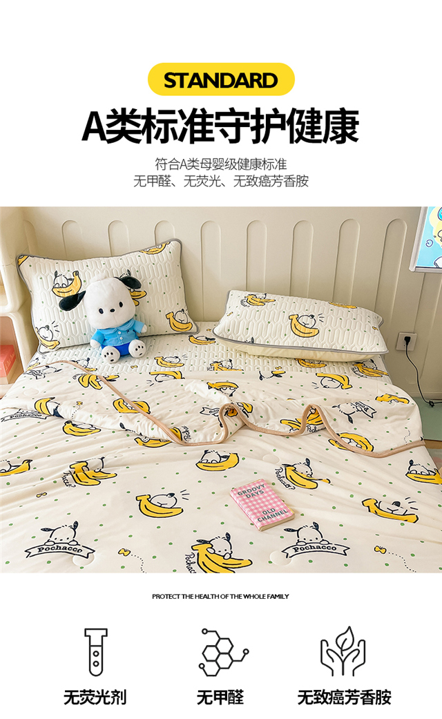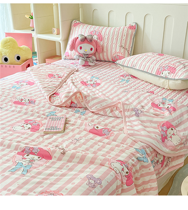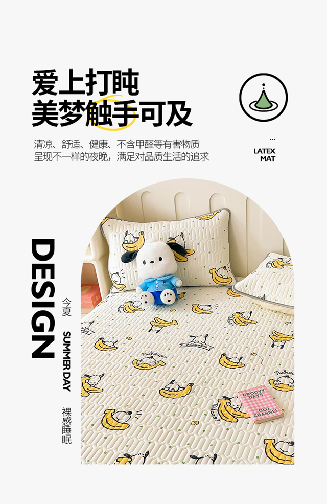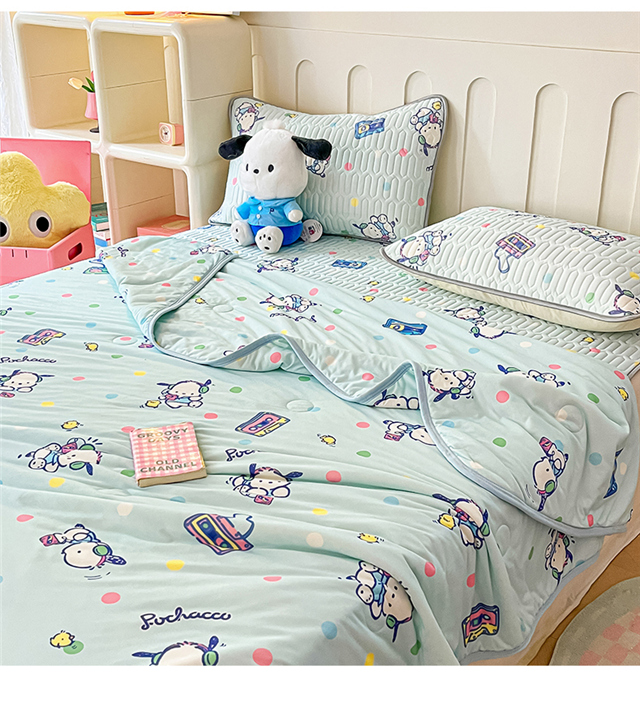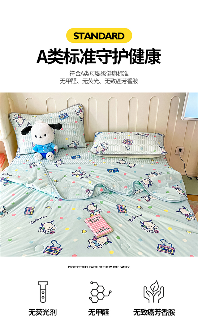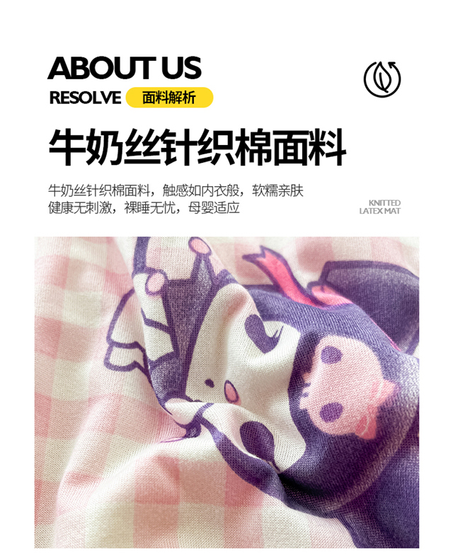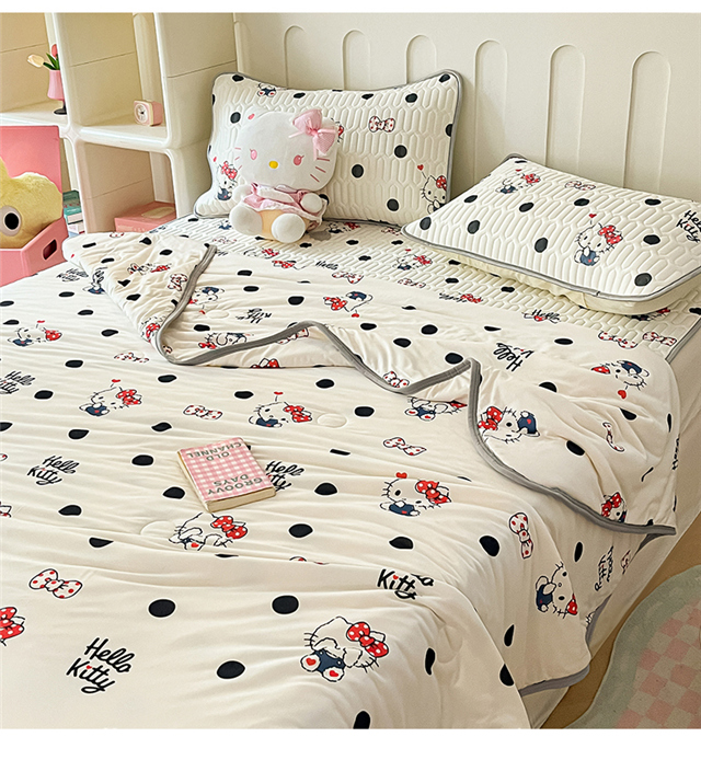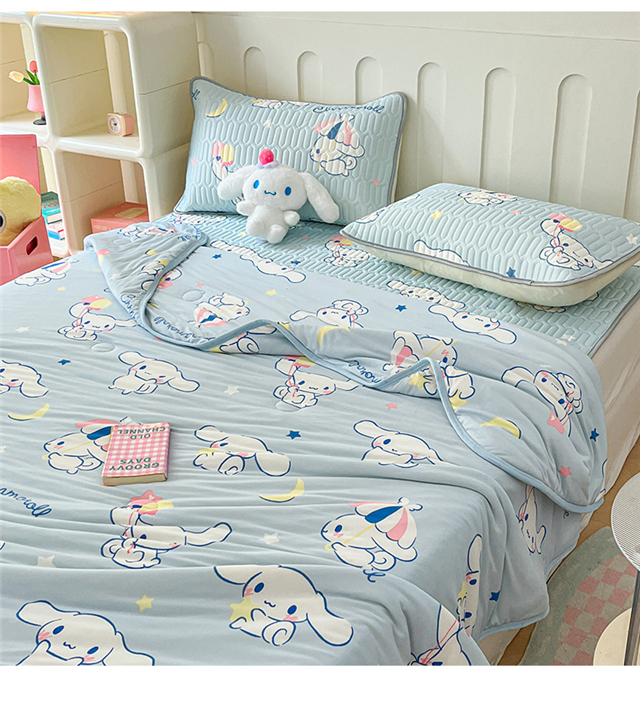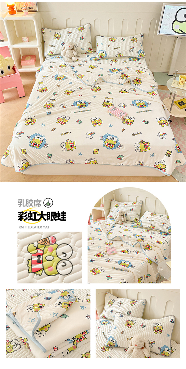 商品名称:(总)金爱家 2024新款A类三丽鸥高品质可组合凉感丝乳胶席牛奶丝针织棉软糯夏被四件套