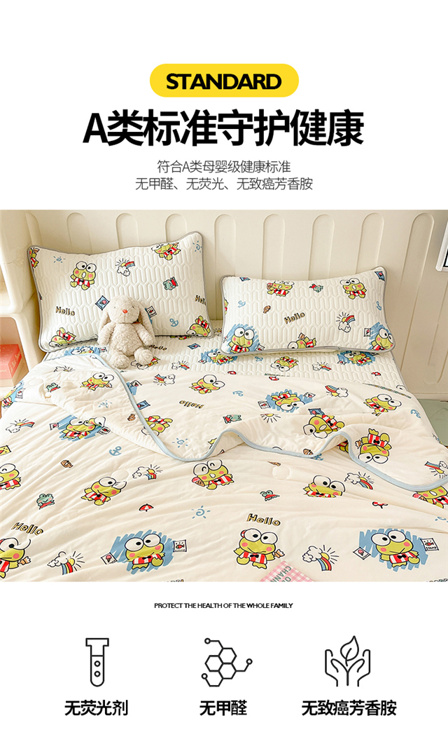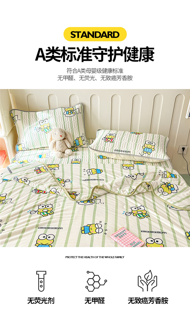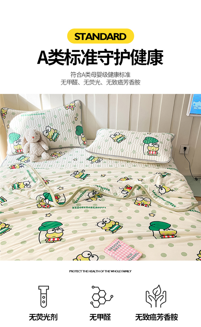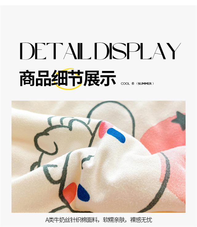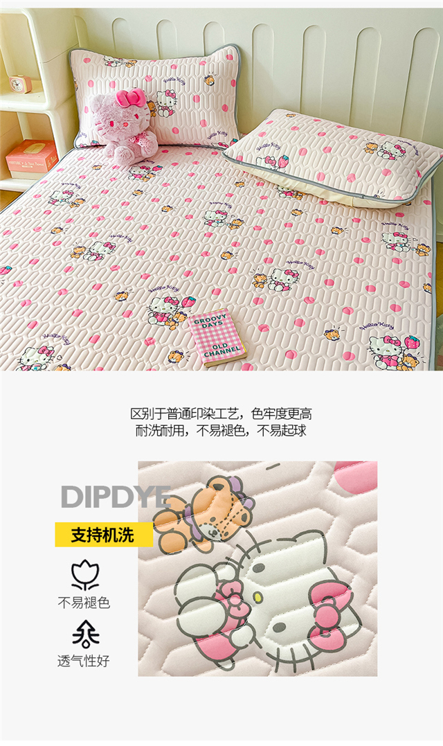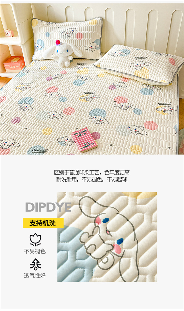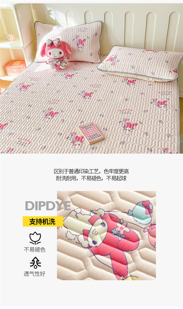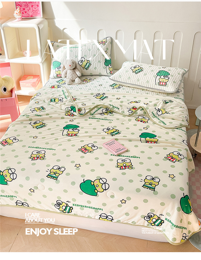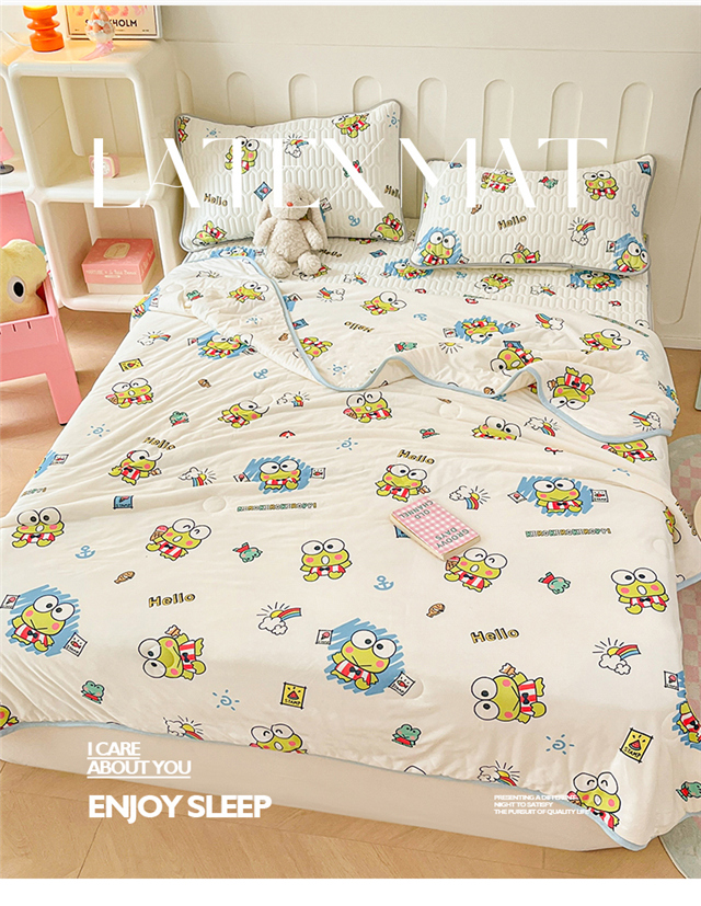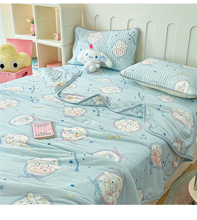商品名称:(总)金爱家 2024新款A类三丽鸥高品质可组合凉感丝乳胶席牛奶丝针织棉软糯夏被四件套