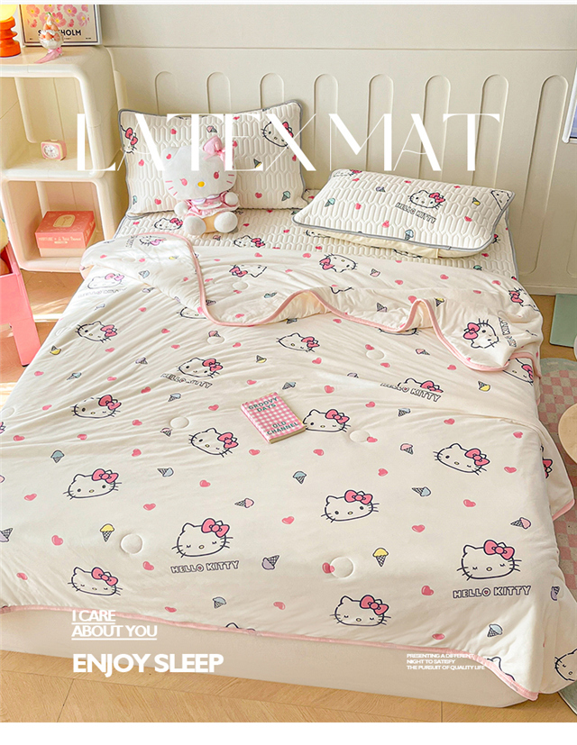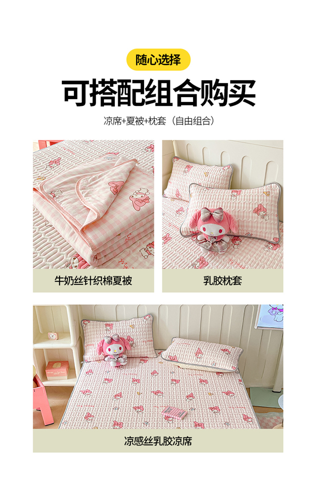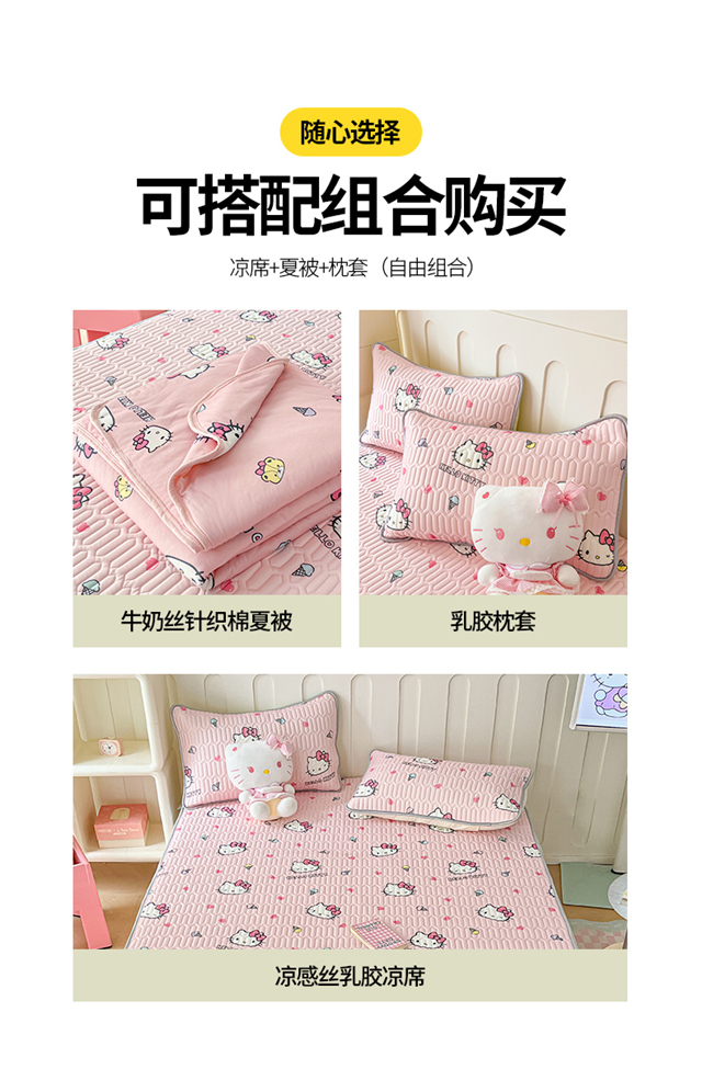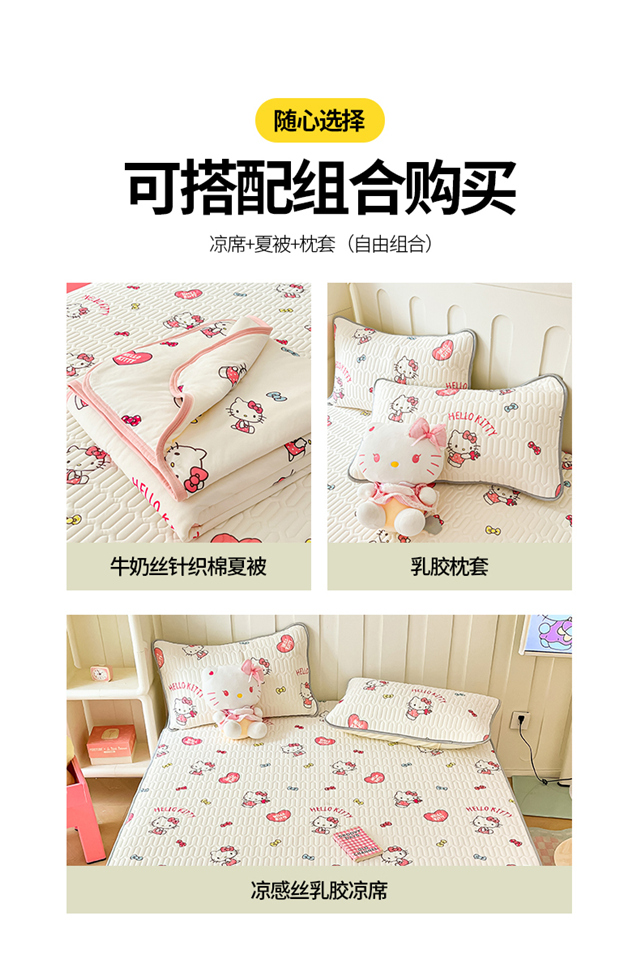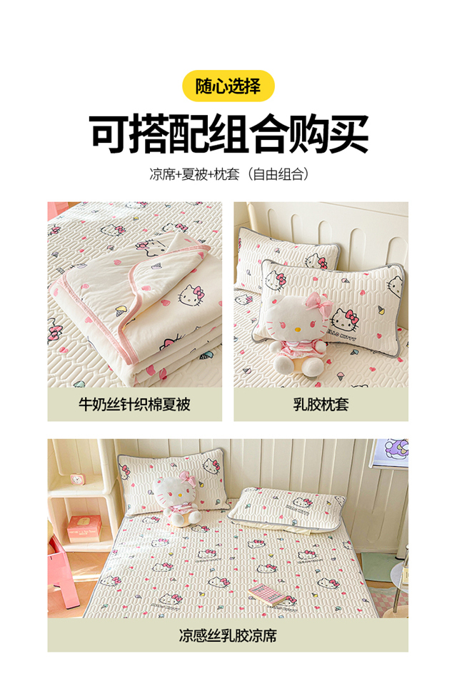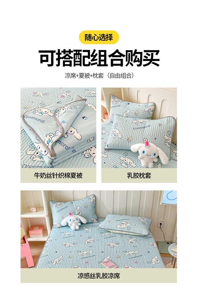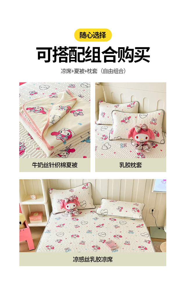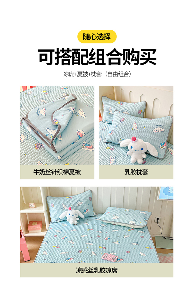 (总)金爱家 2024新款A类三丽鸥高品质可组合凉感丝乳胶席牛奶丝针织棉软糯夏被四件套