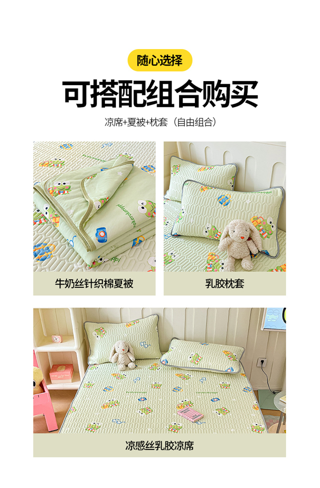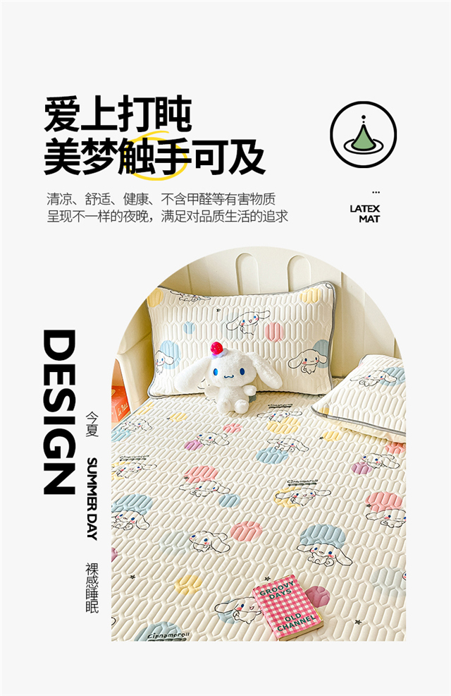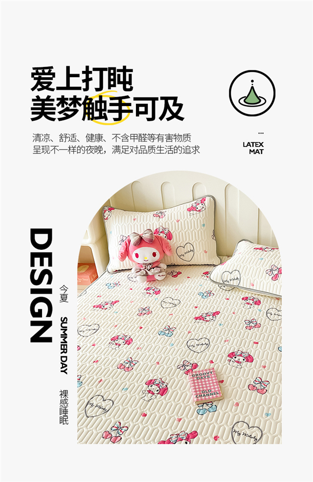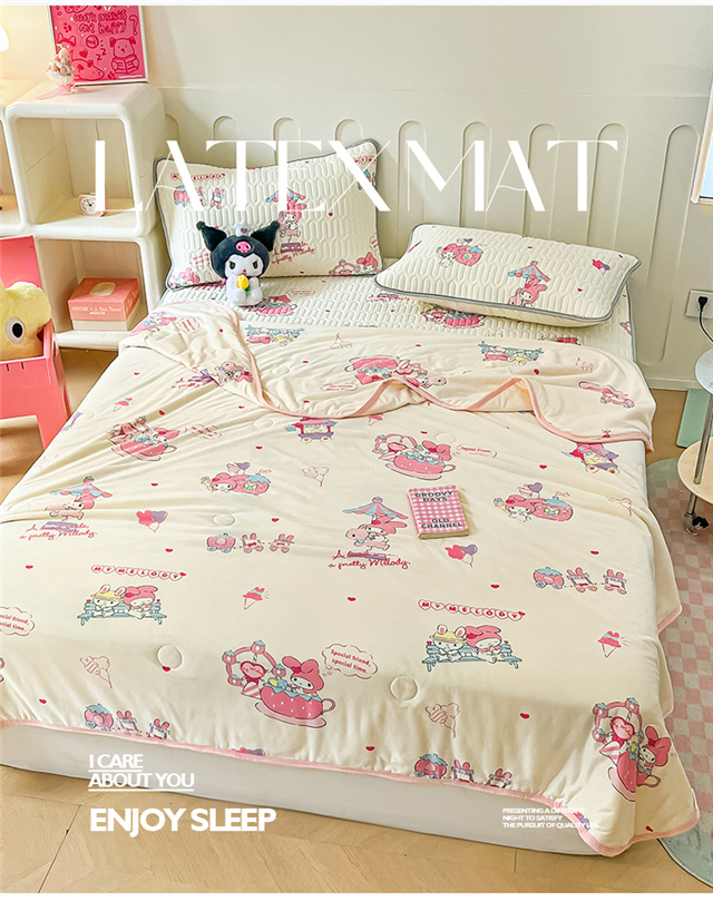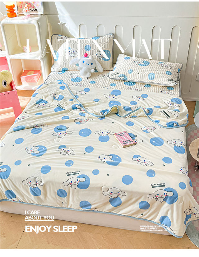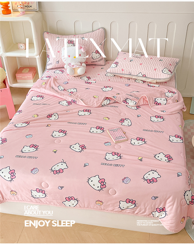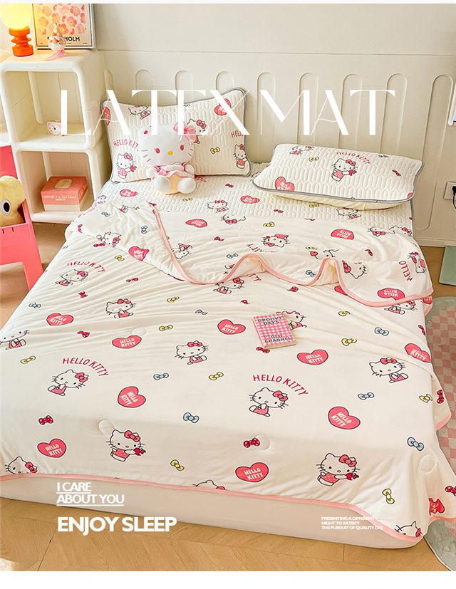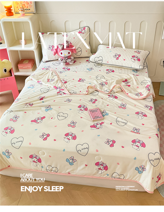 (总)金爱家 2024新款A类三丽鸥高品质可组合凉感丝乳胶席牛奶丝针织棉软糯夏被四件套