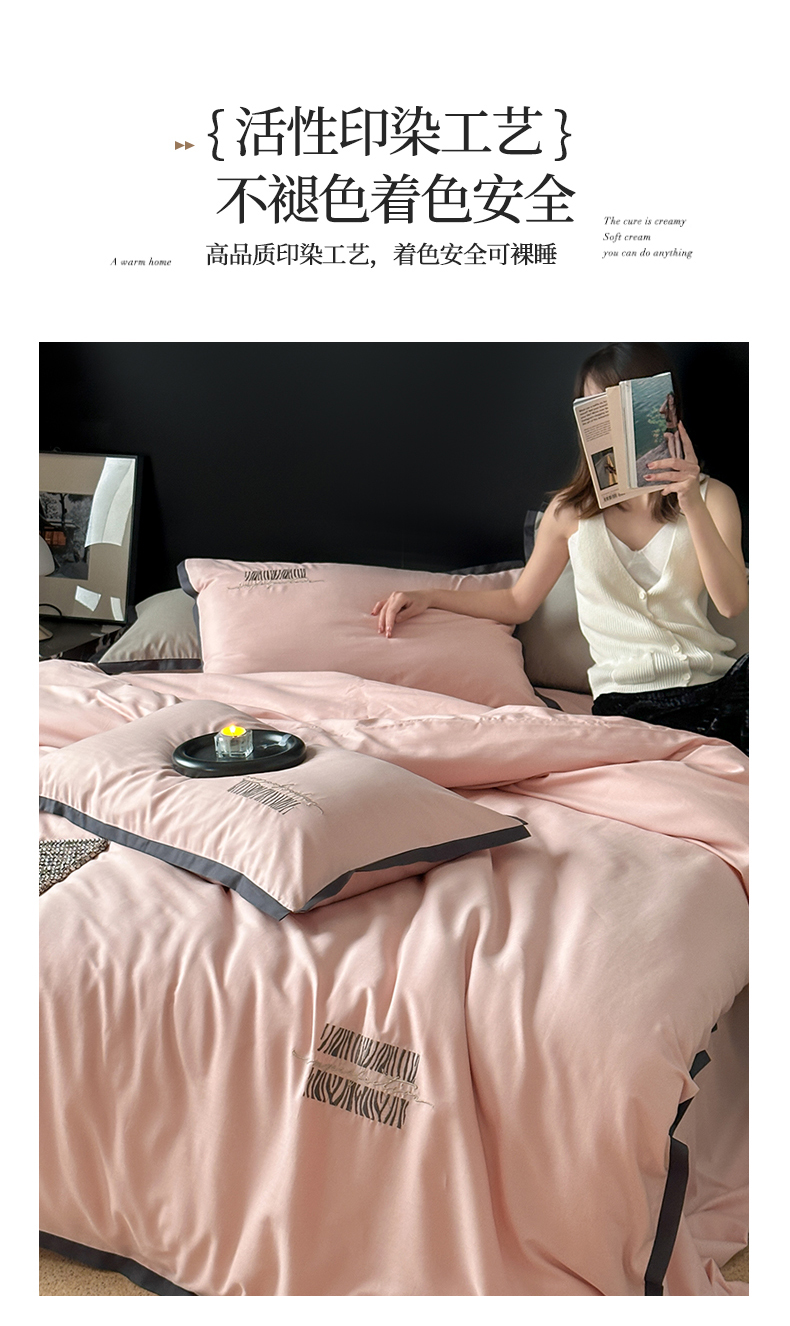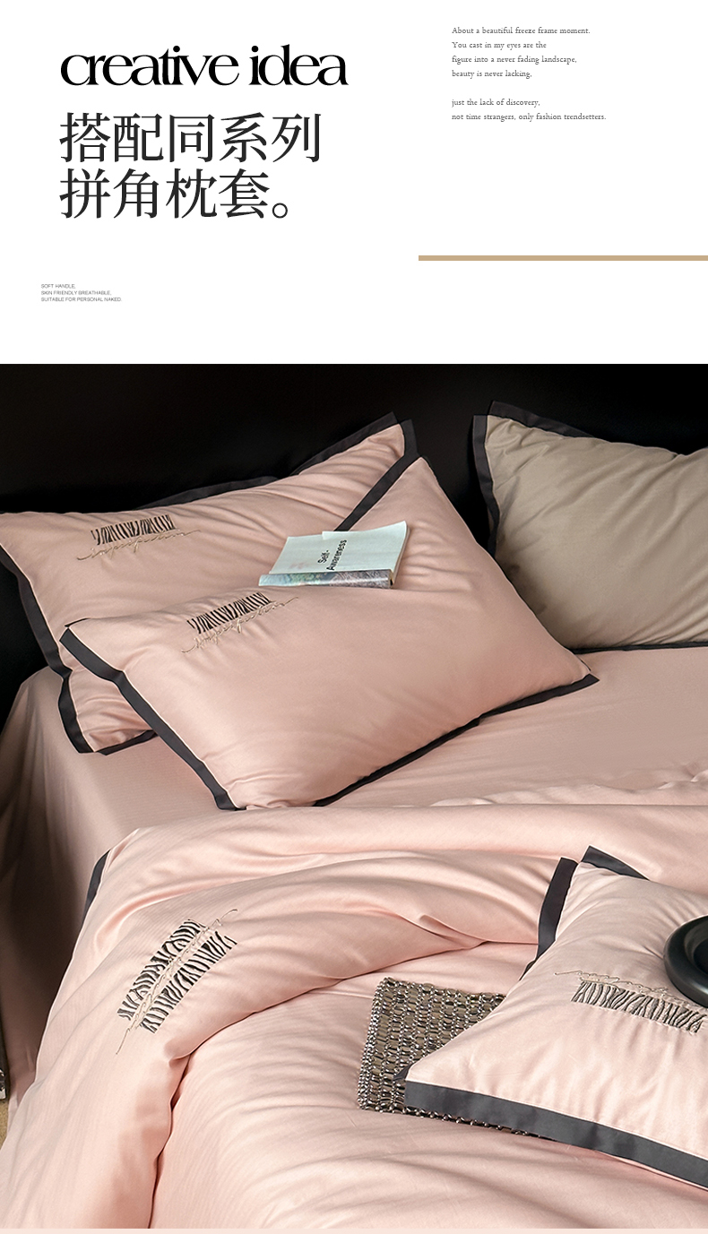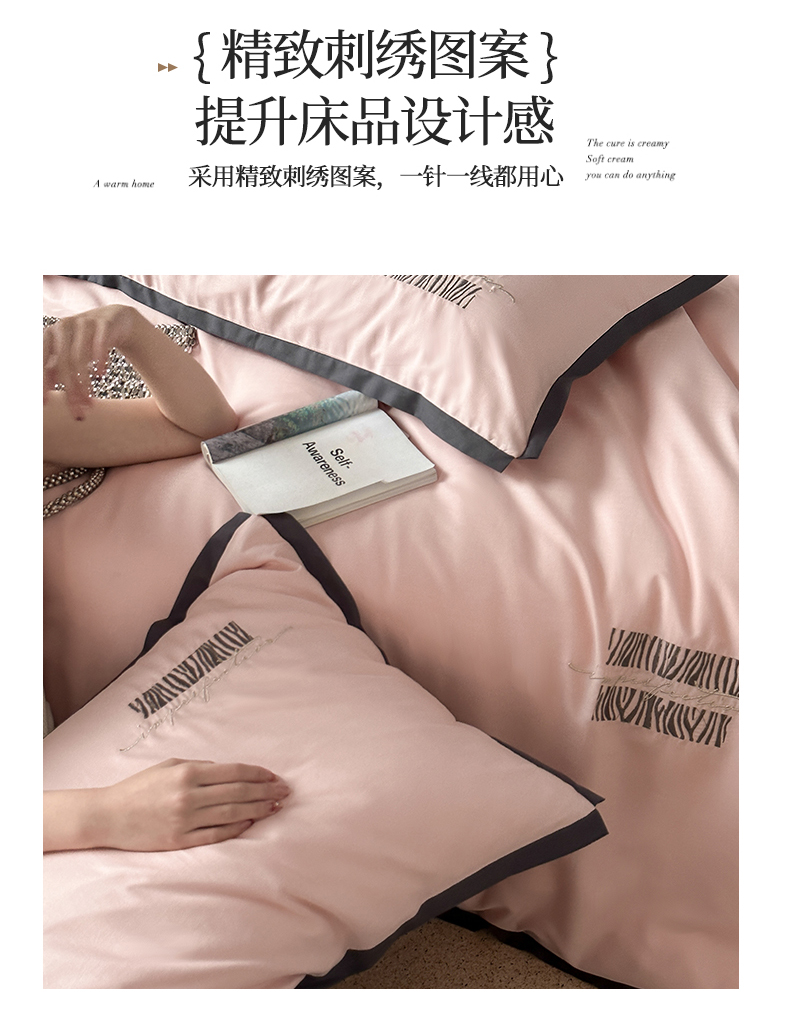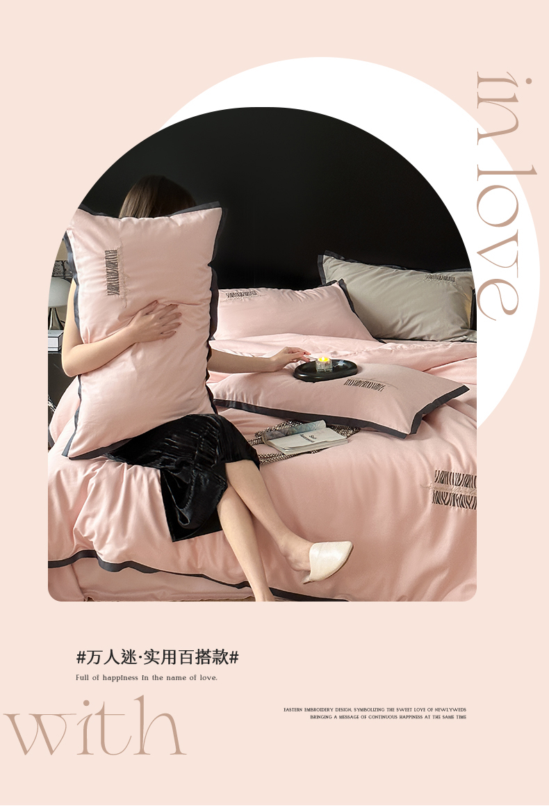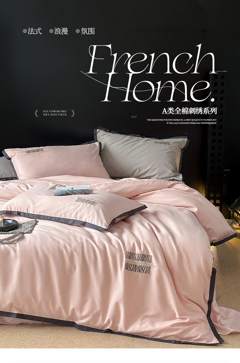 名品优仓 2024新款全棉刺绣四件套-柏菲克 温馨粉