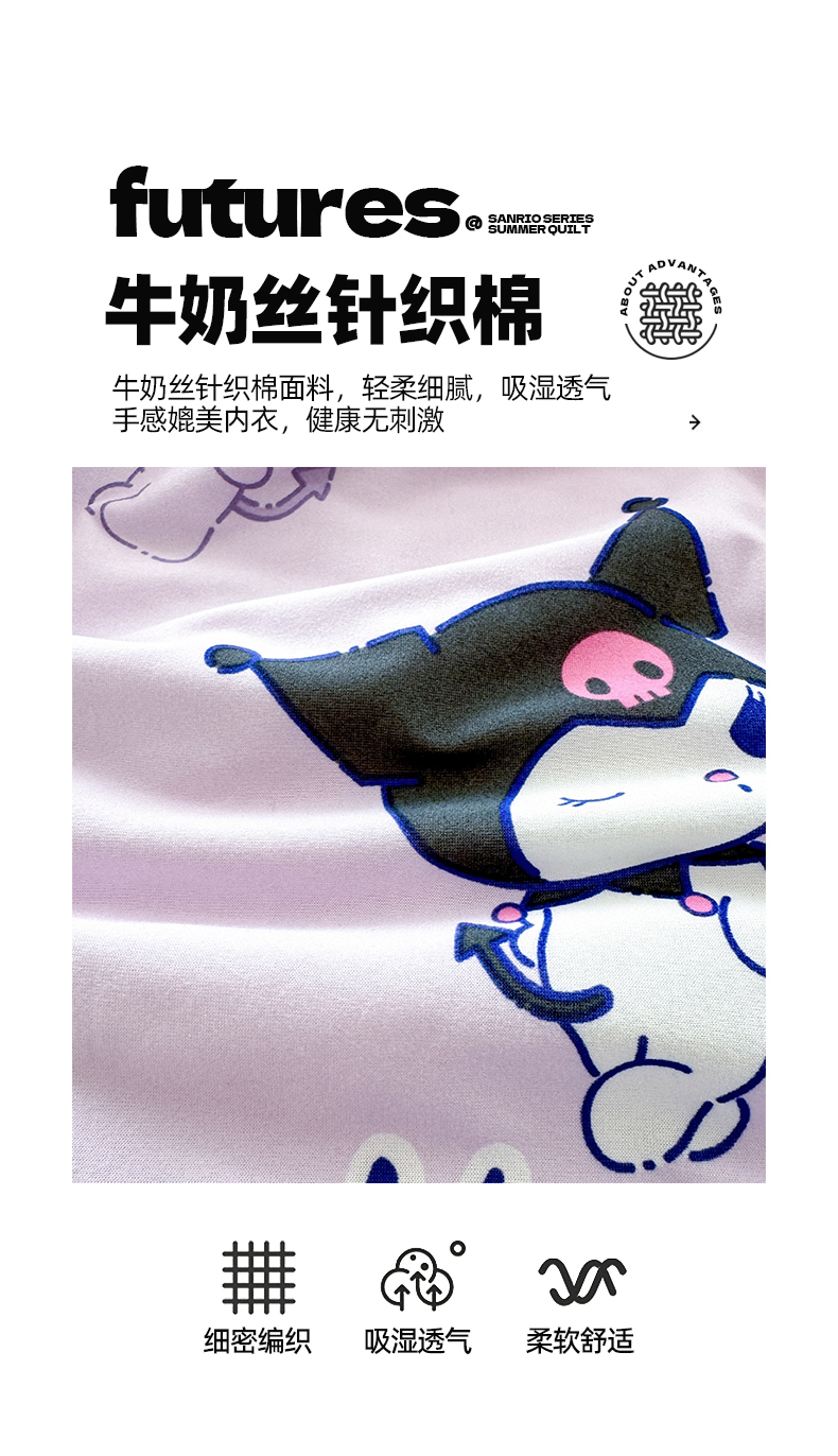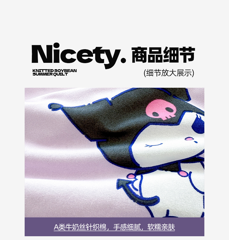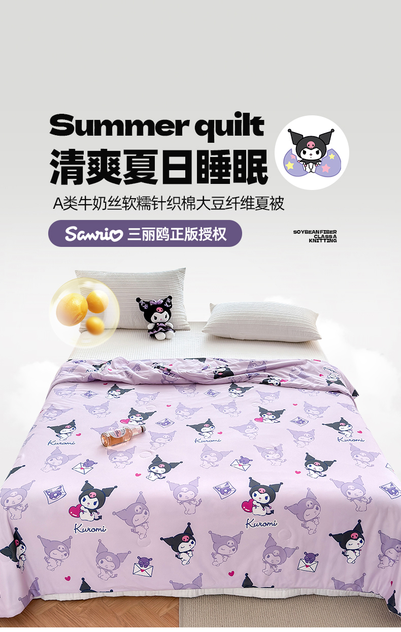 • 91家纺网 家纺一手货源 找家纺 博雅 2024新款三丽鸥正版系列A类牛奶丝软糯针织棉大豆纤维夏被 针织棉(带防伪标)开心库洛米