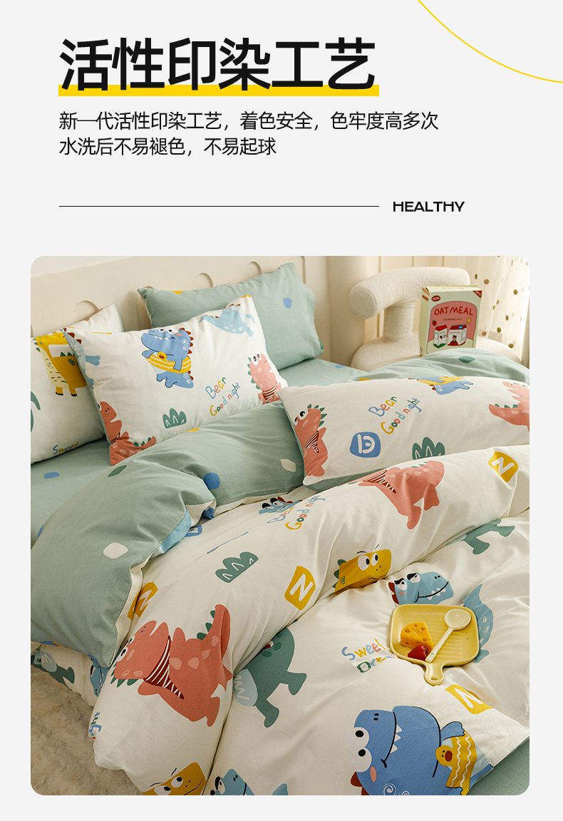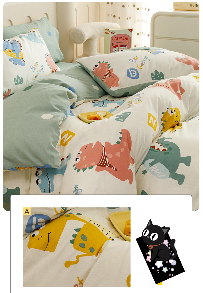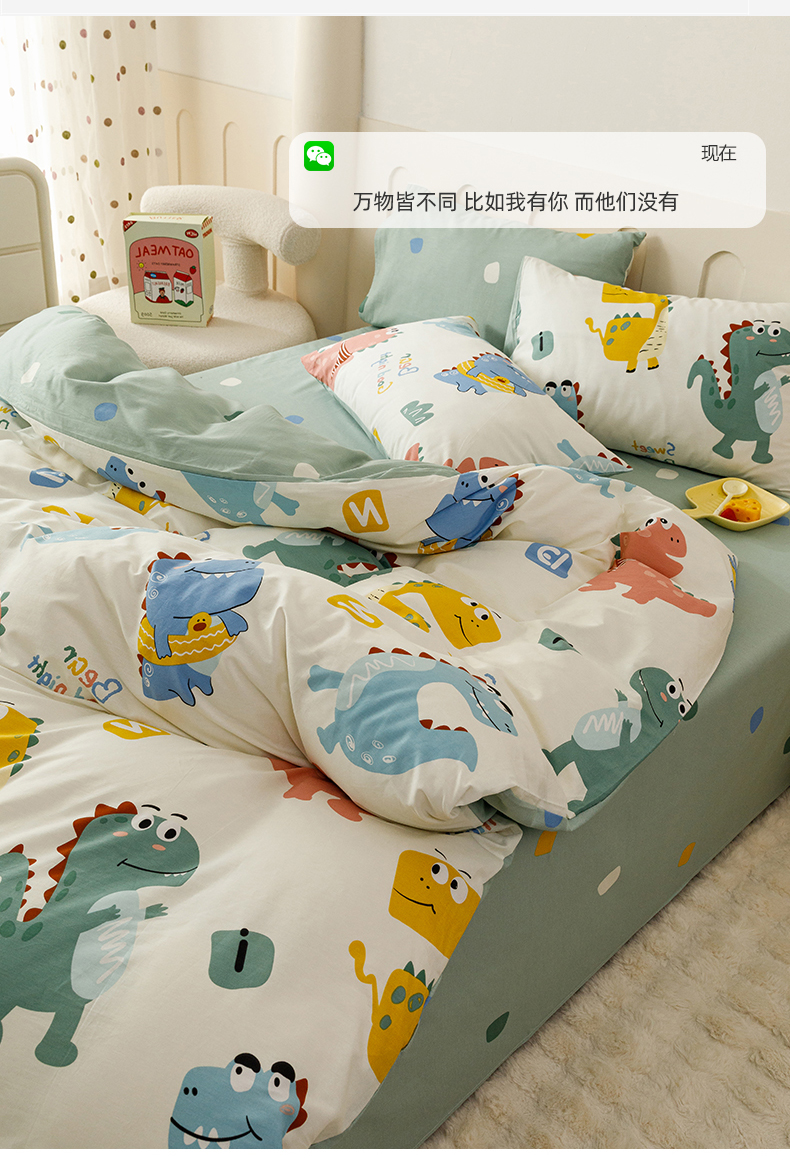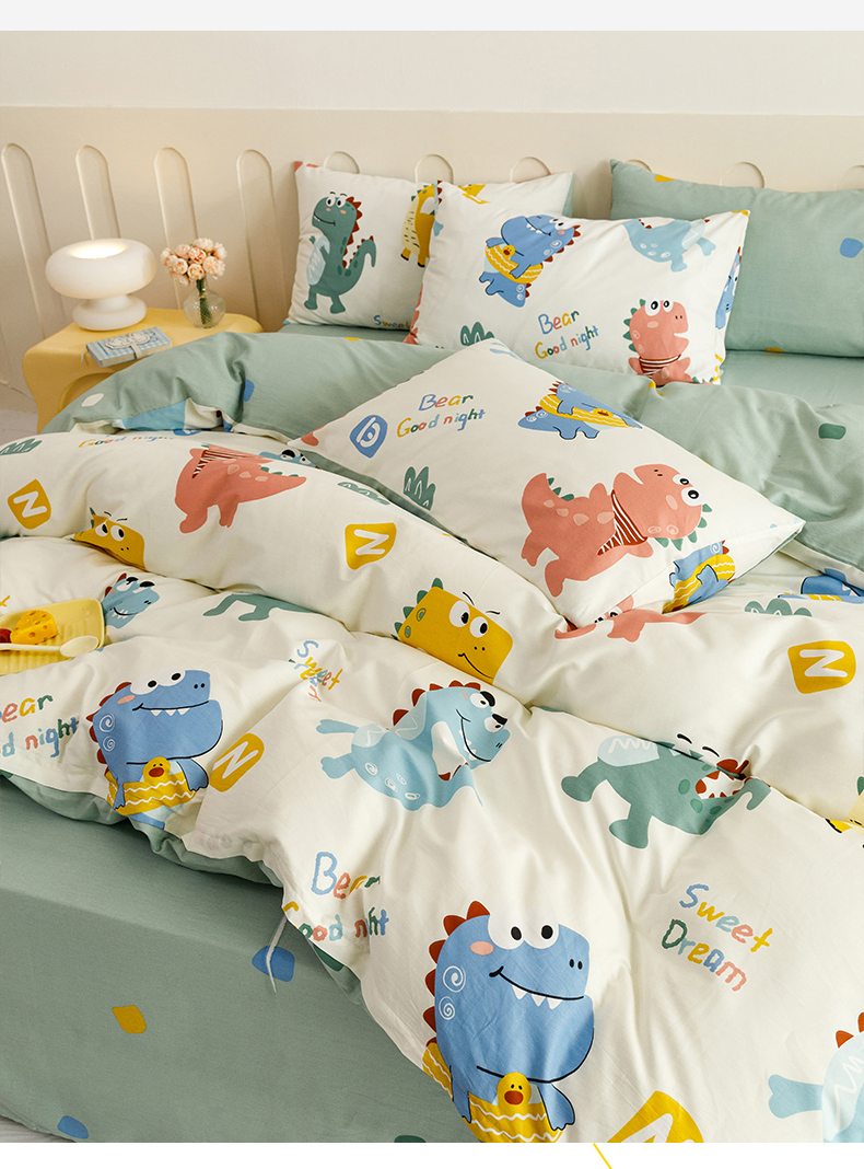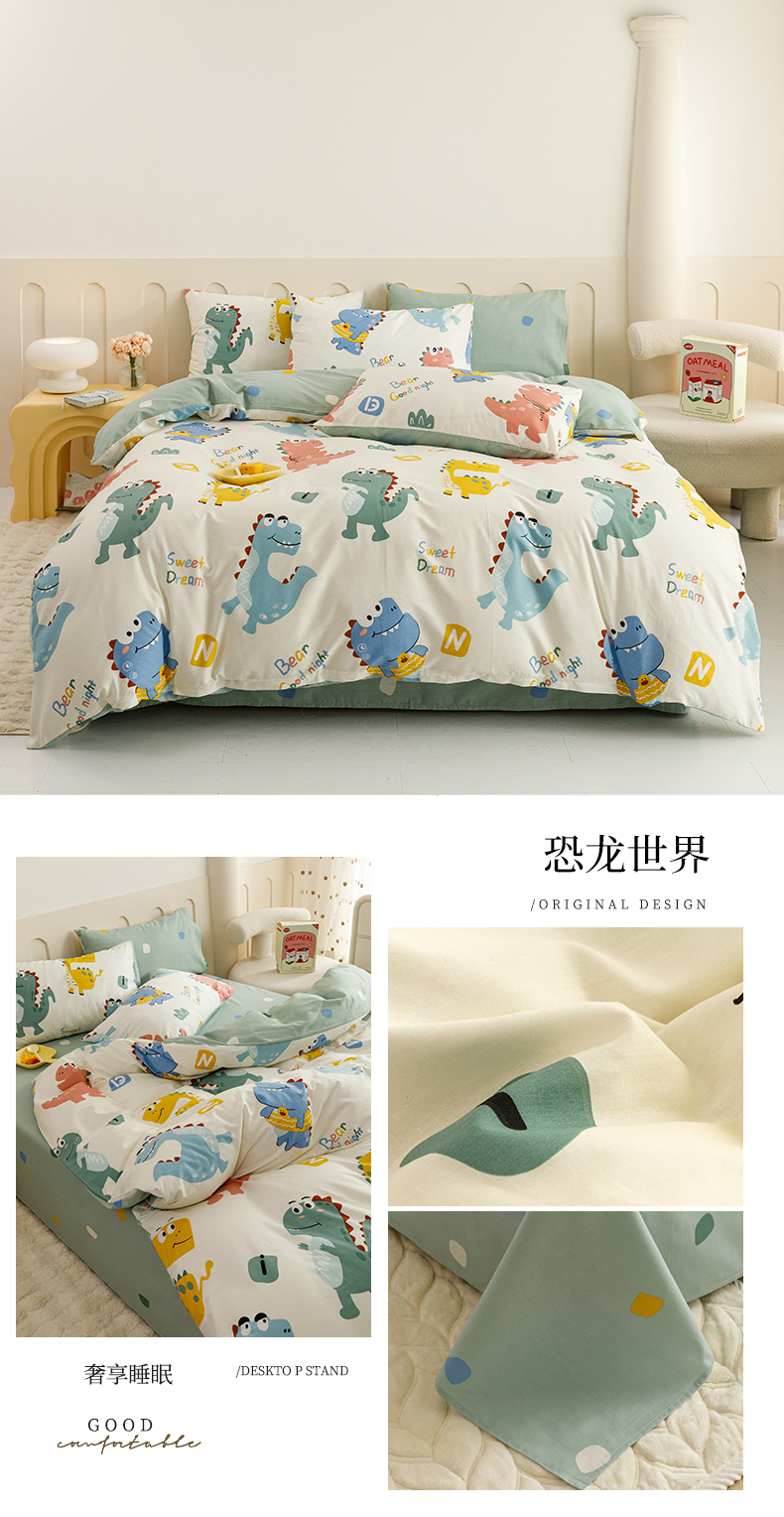 当前位置: 91家纺网 > 商品网购 > 床品套件 > 四件套 > 全棉普通四件套 > 红粉佳人家纺 2024新款纯棉卡通小清新四件套及单品 恐龙世界-1
