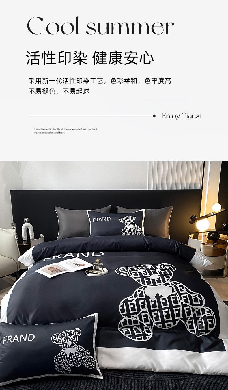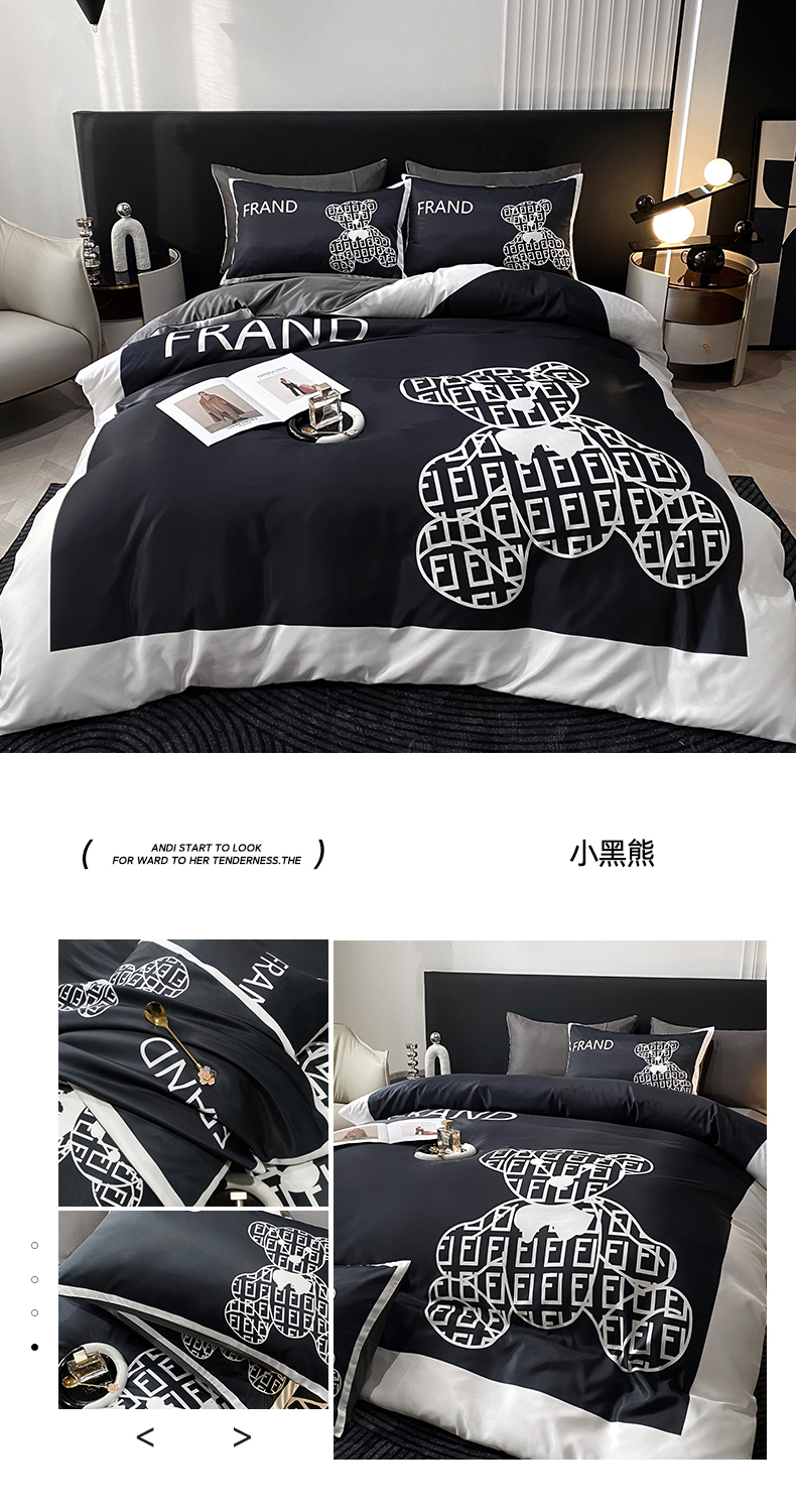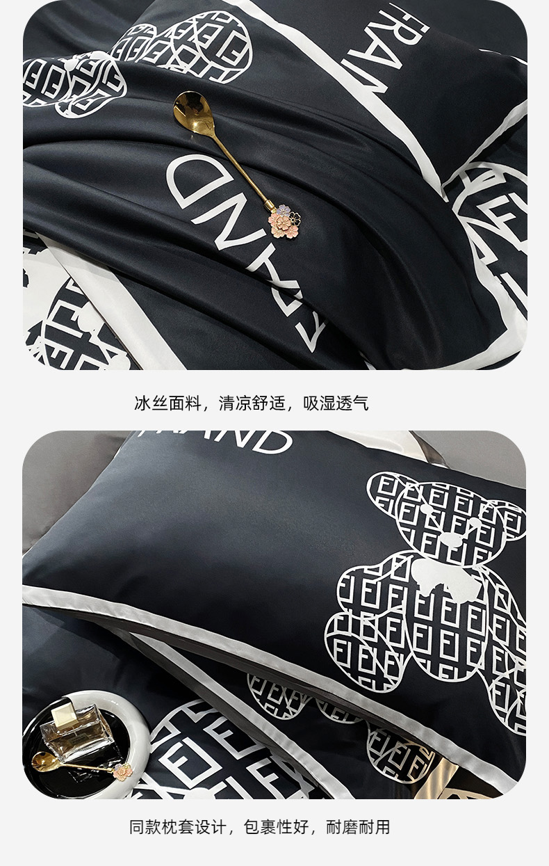 商品名称:色鬼布艺 2024新款冰丝四件套水洗真丝四件套 小黑熊1
