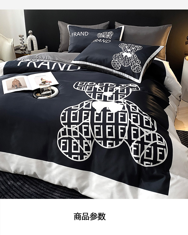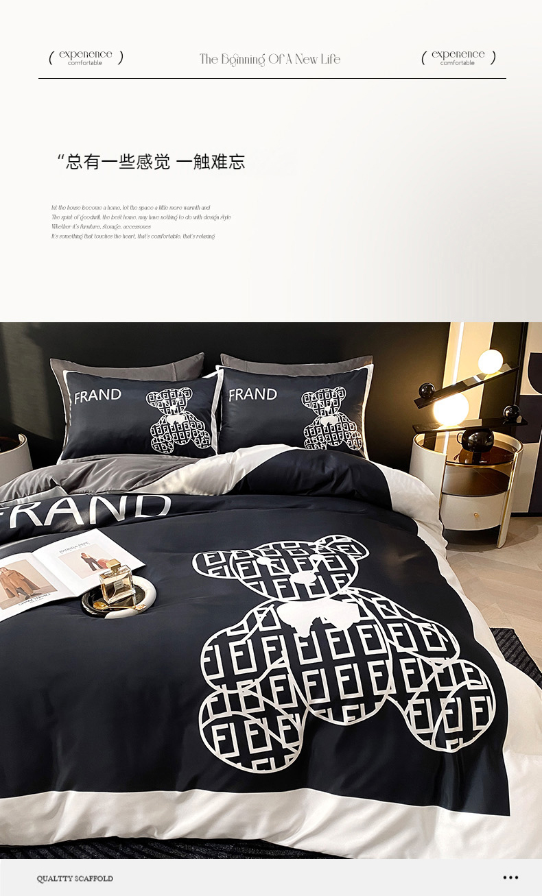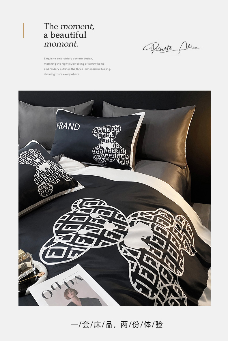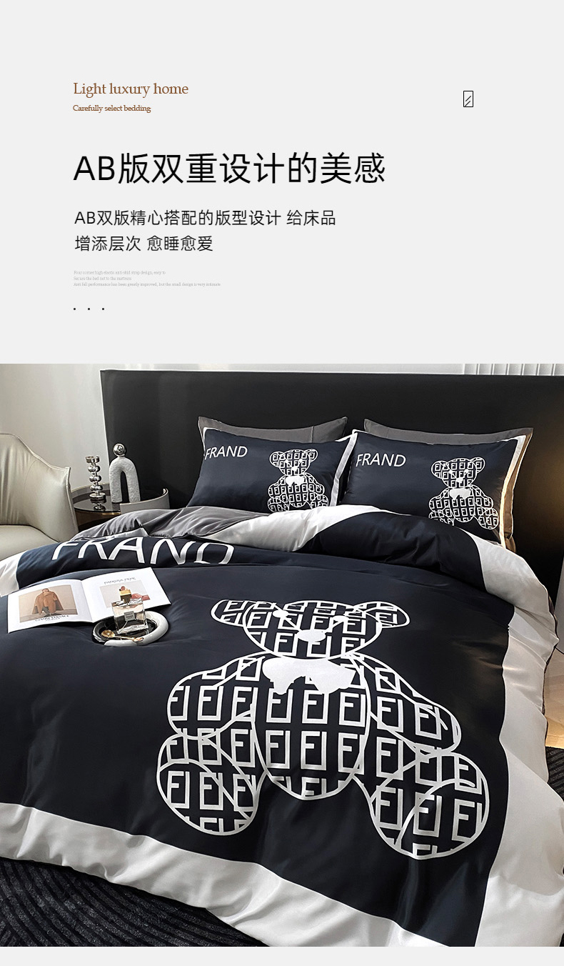 商品名称:色鬼布艺 2024新款冰丝四件套水洗真丝四件套 小黑熊1