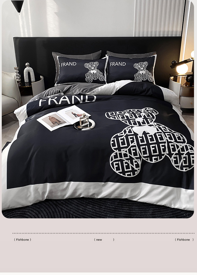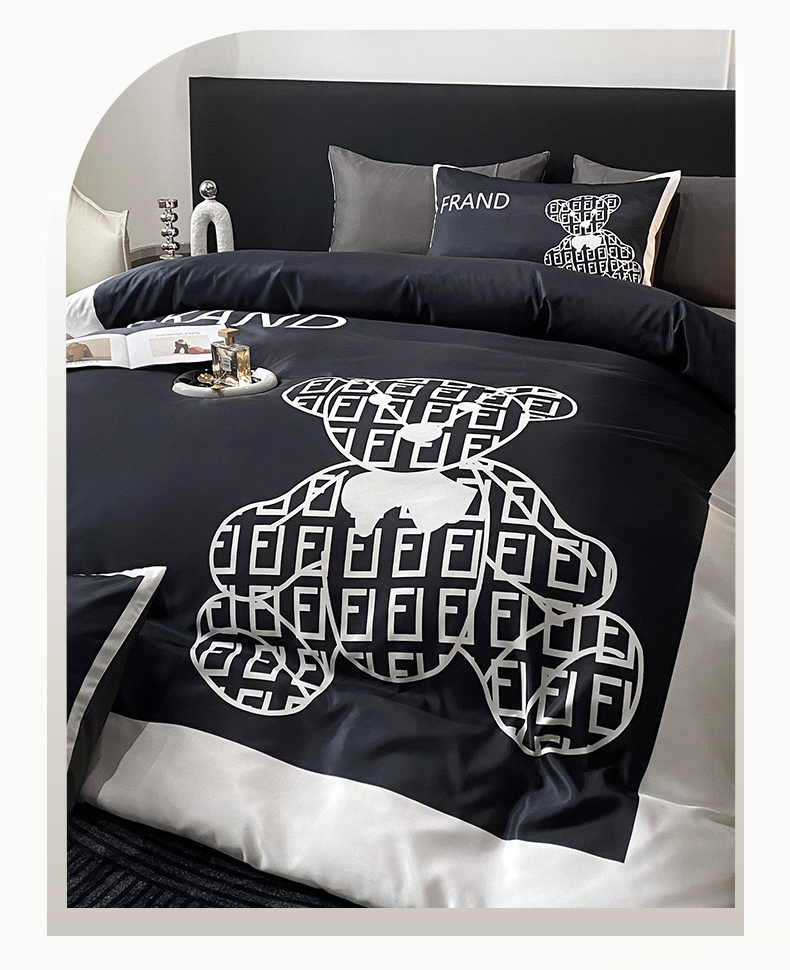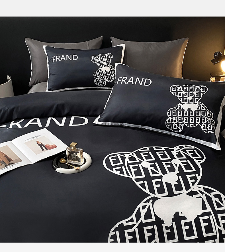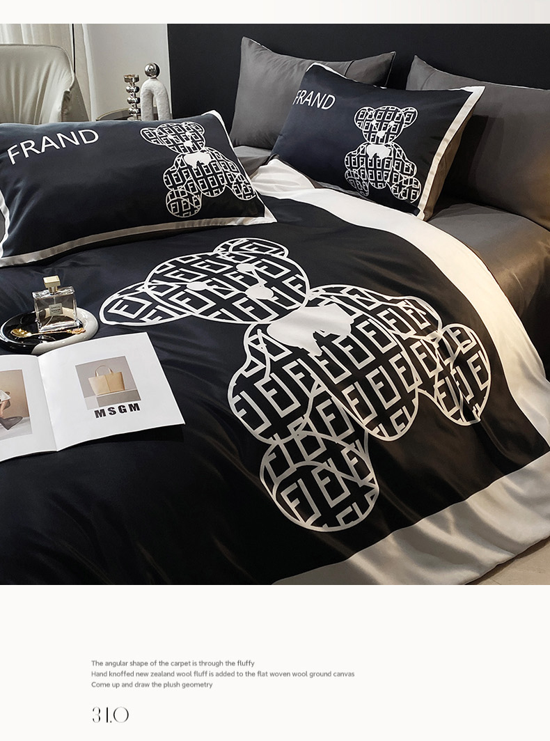 色鬼布艺 2024新款冰丝四件套水洗真丝四件套 小黑熊1