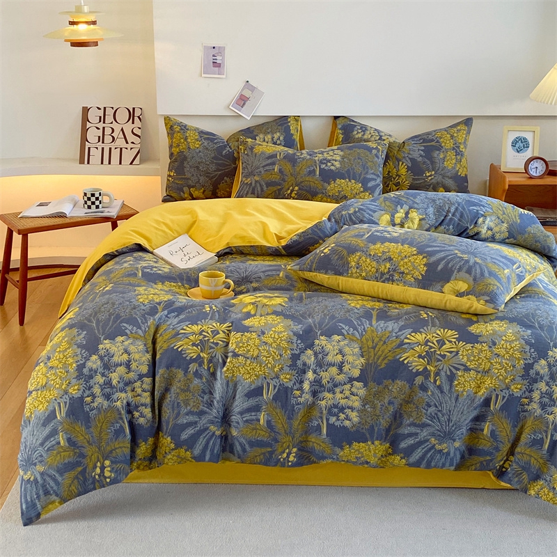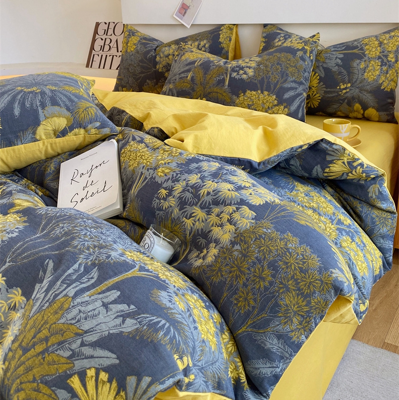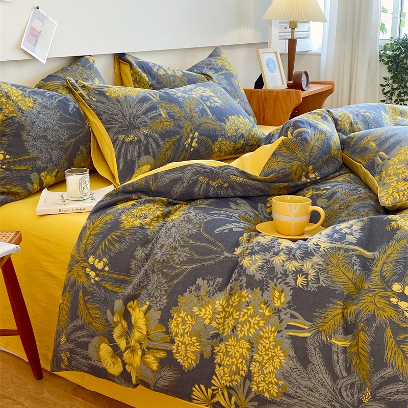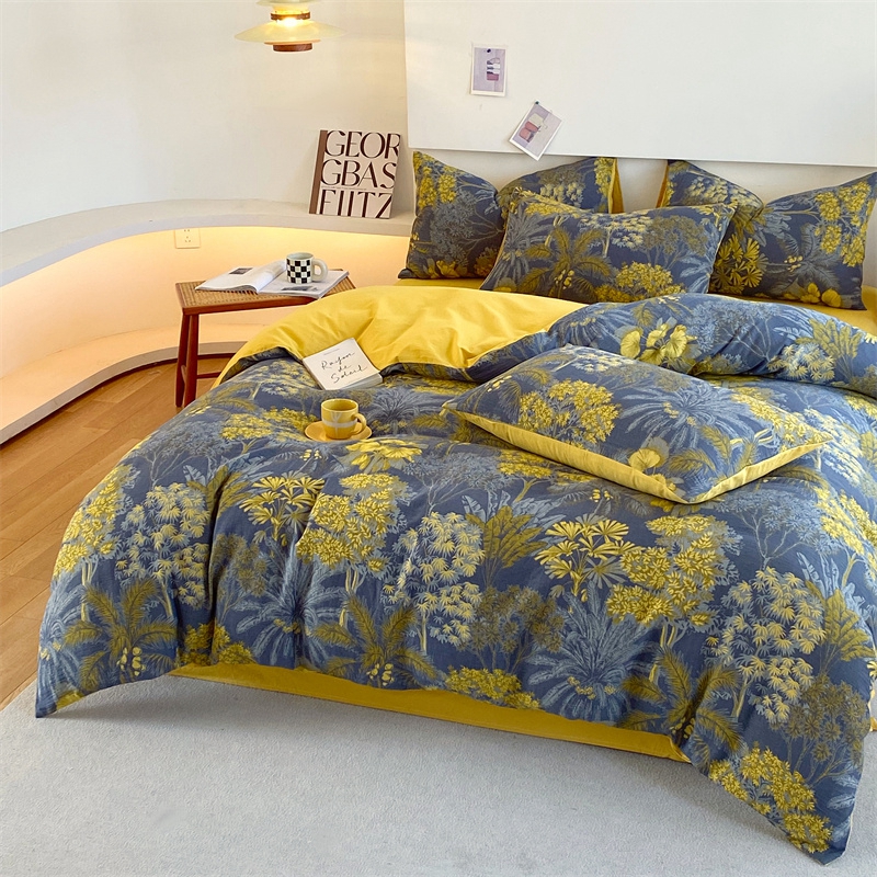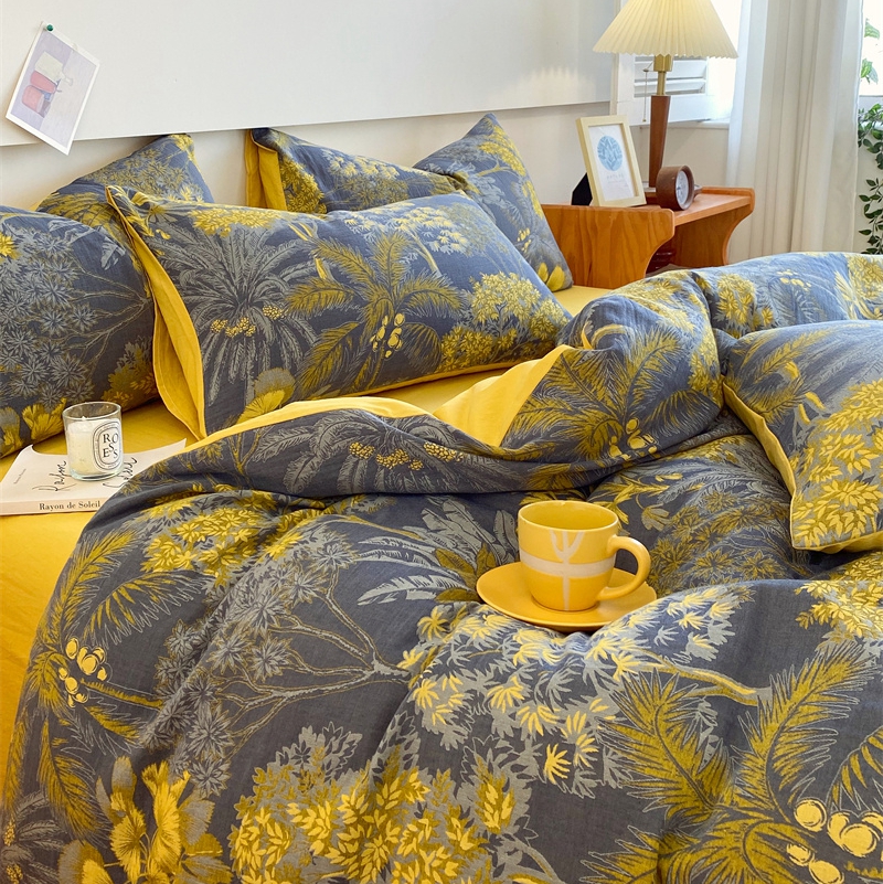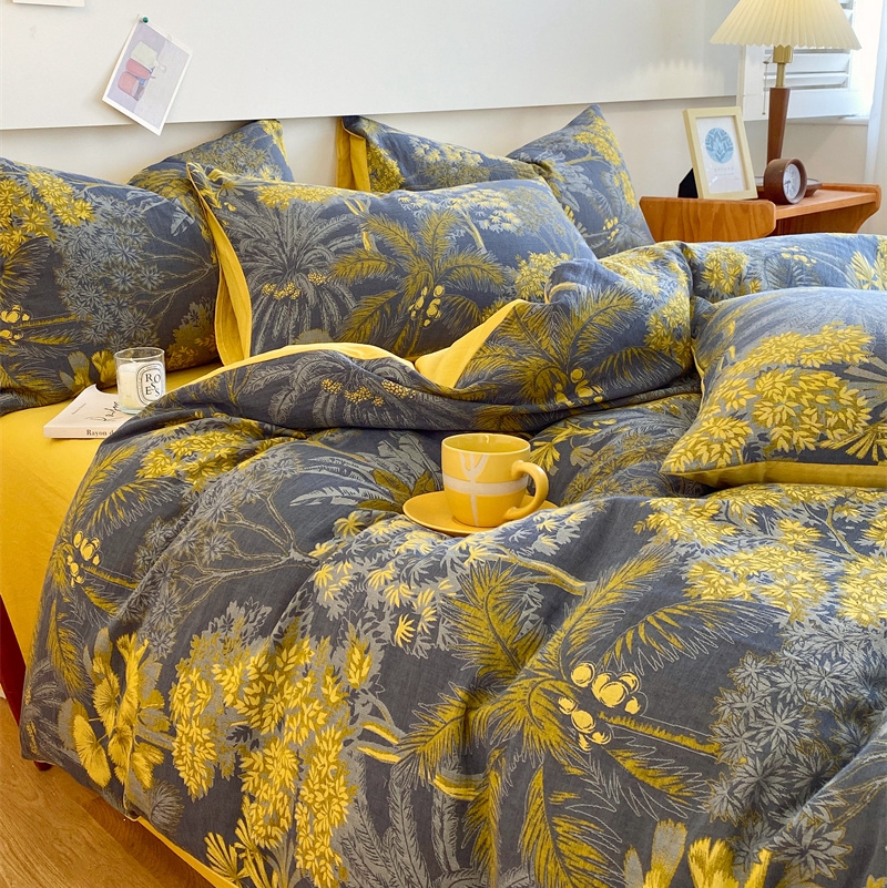 2024新款全棉纯棉双层纱三层纱立体提花四件套 森林奇境