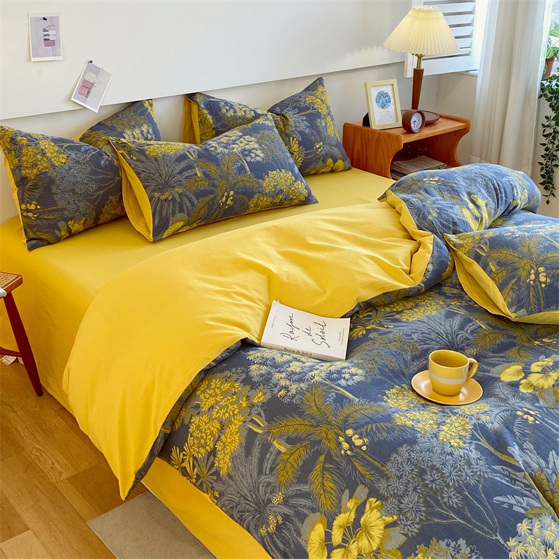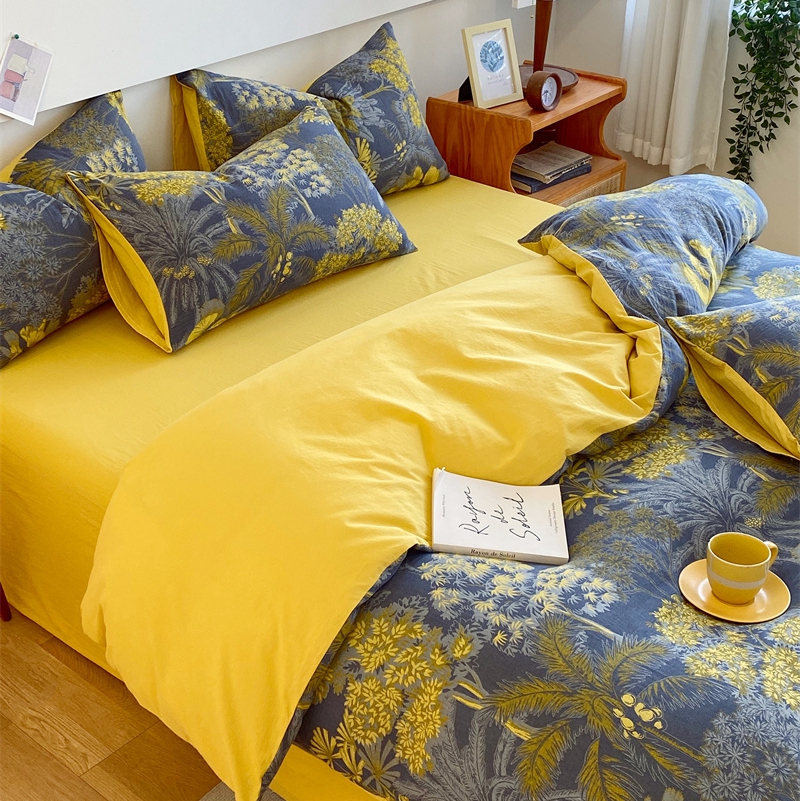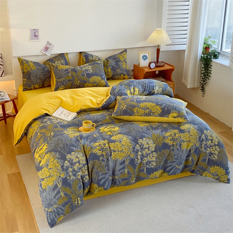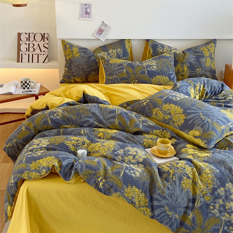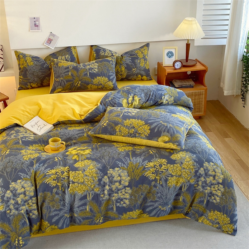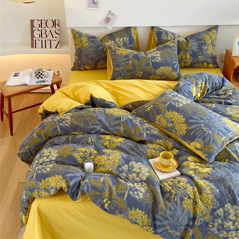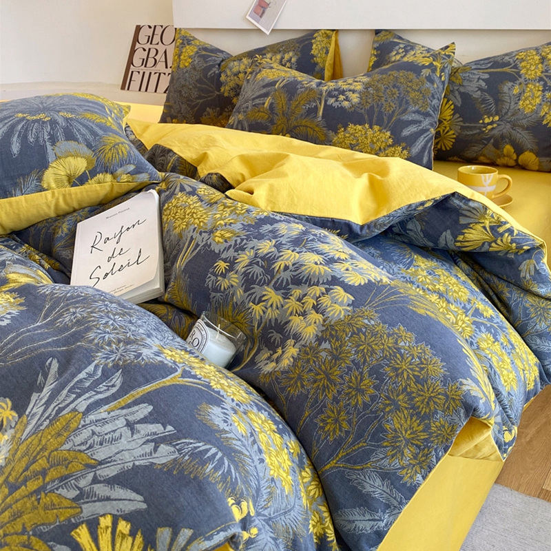 2024新款全棉纯棉双层纱三层纱立体提花四件套 森林奇境