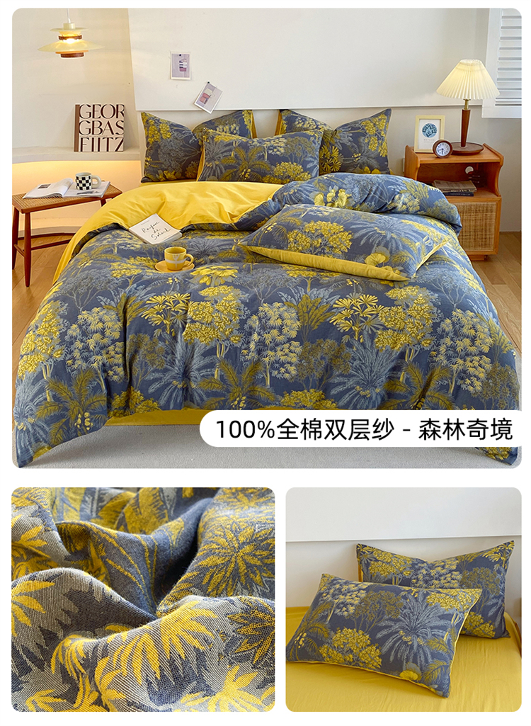 商品名称:2024新款全棉纯棉双层纱三层纱立体提花四件套 森林奇境