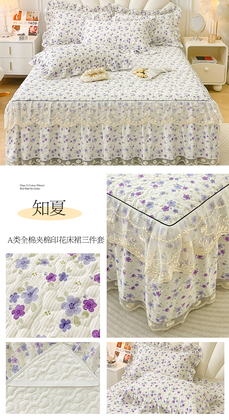 • 91家纺网 家纺一手货源 找家纺 宜凡家纺 2024新款全棉夹棉印花床裙系列三件套 春天派对
