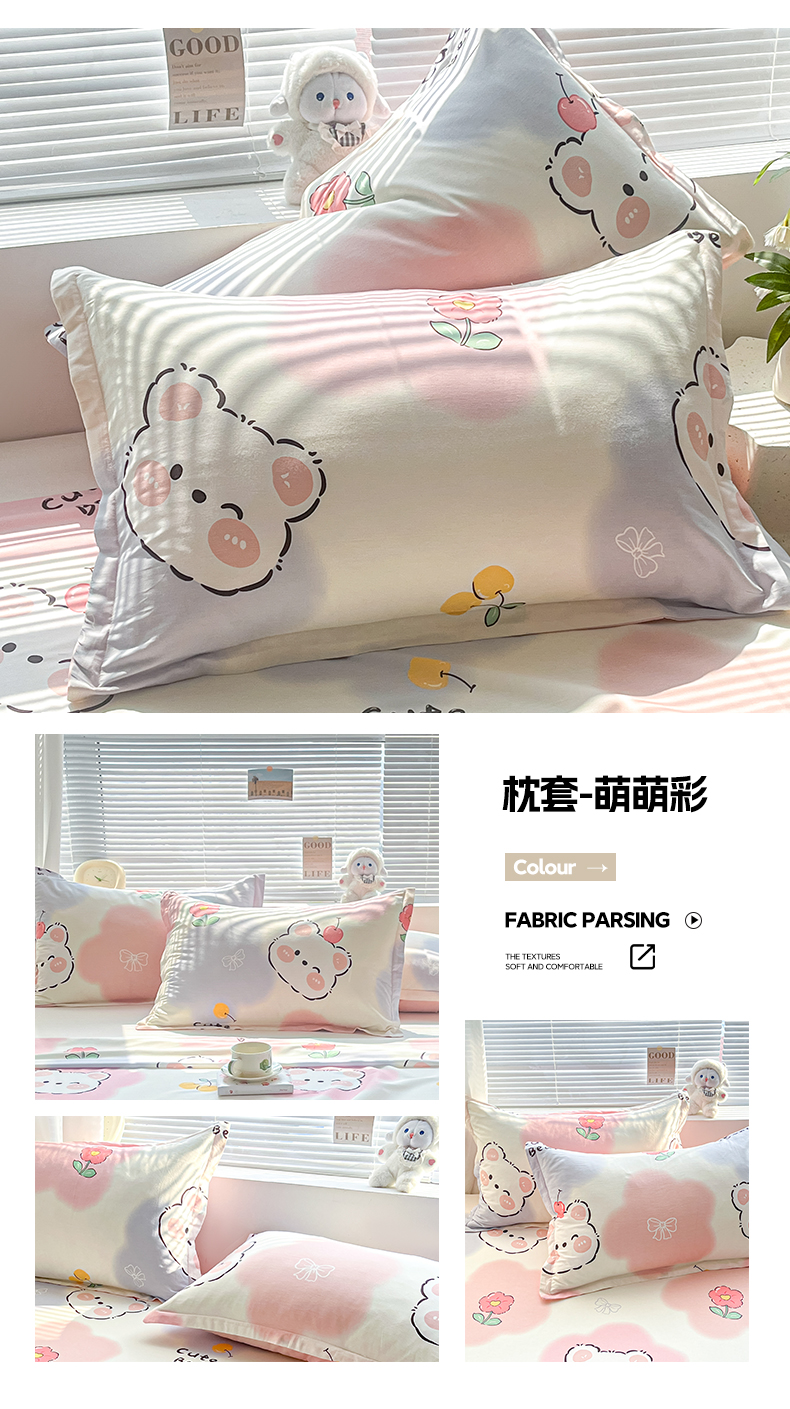 涵宸家纺 2024新款全棉小清新印花单品套件--单枕套 枕套-萌萌彩