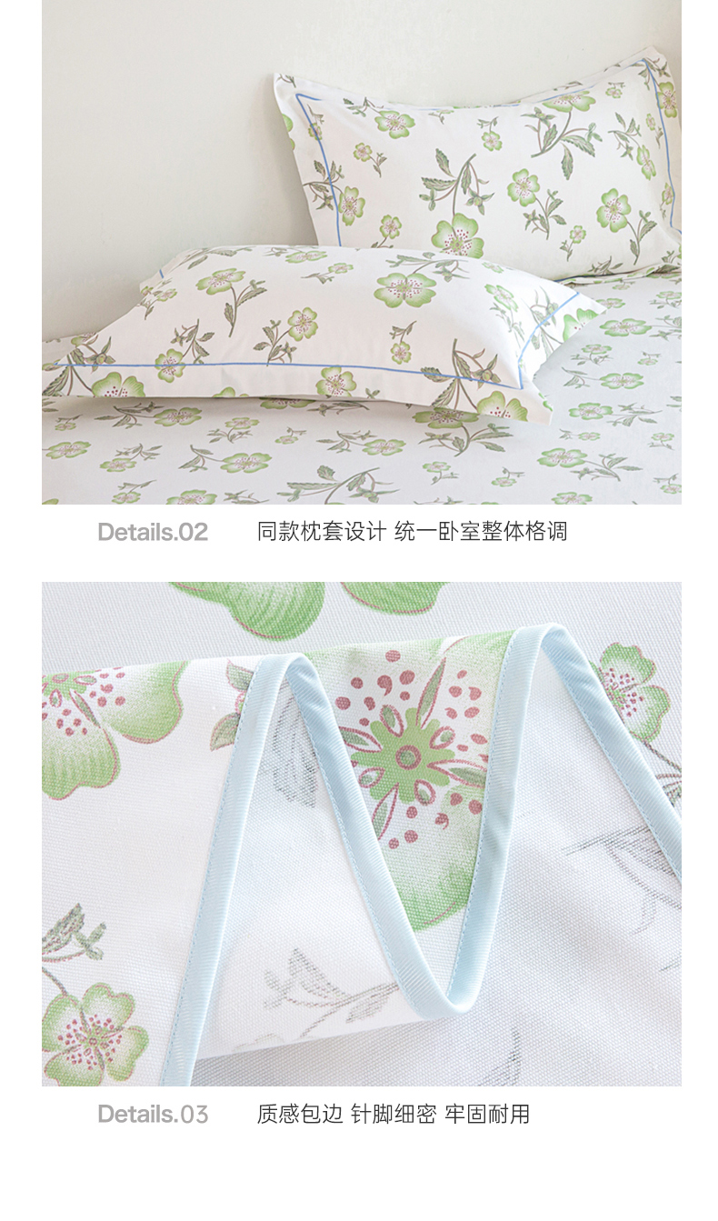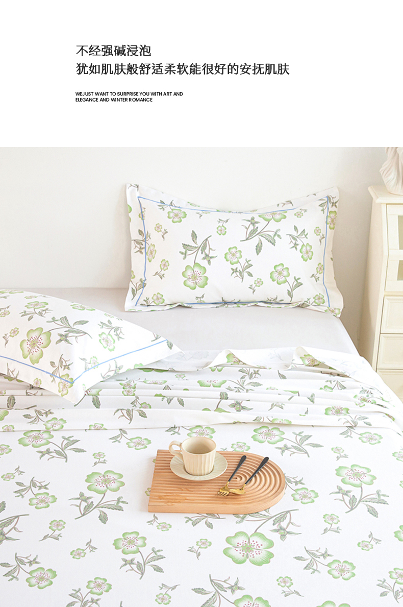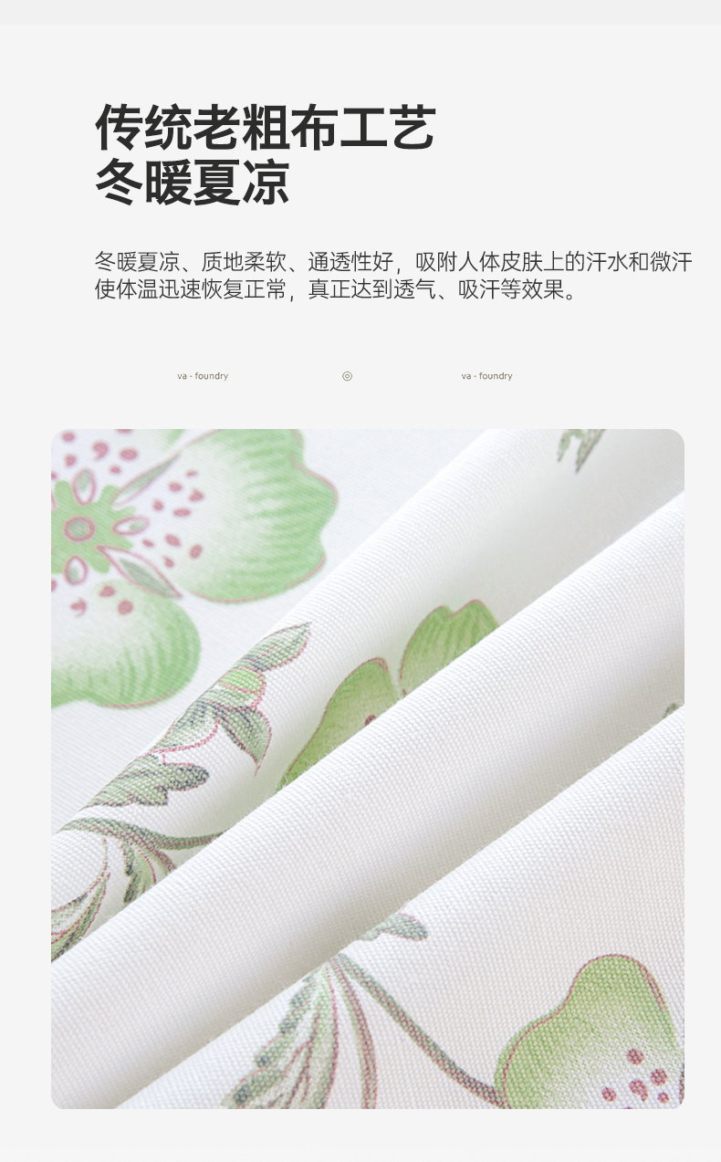 商品名称:金泰莱 2025新款原棉全棉老粗布凉席三件套全棉床单纯棉床单软凉席 春暖花开-绿